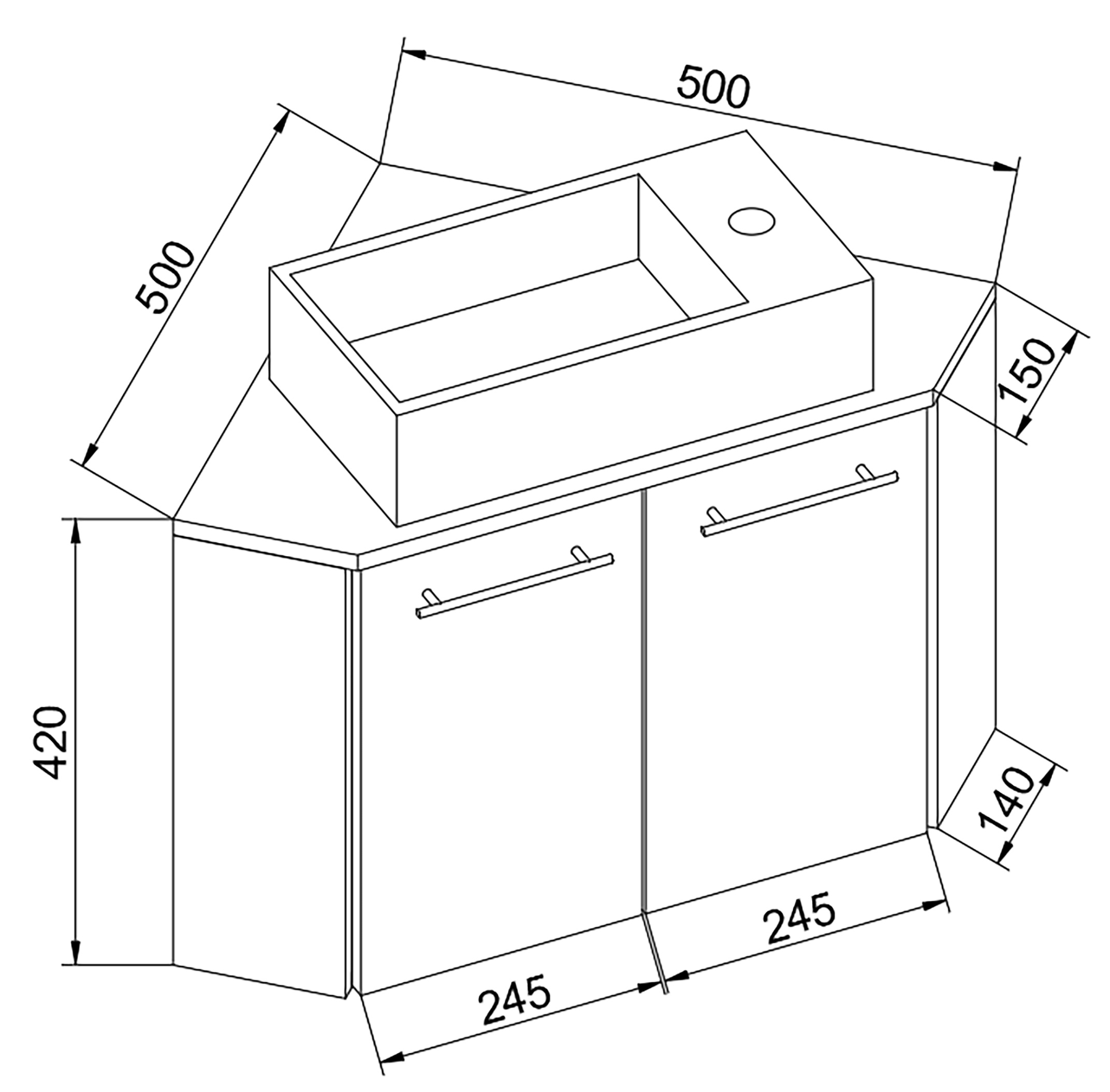 · Maße Unterschrank ca. H. 42 x B. 50 x T. 50 cm