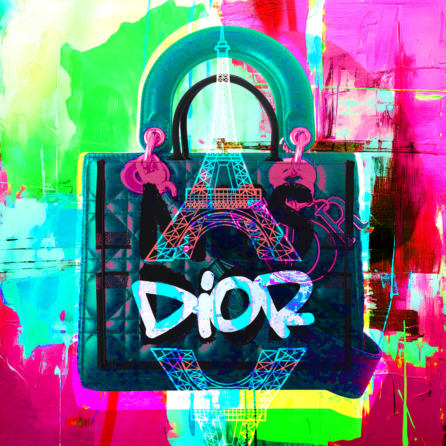 · Diese quadratischen Kunstwerke aus der Fashion Icon Collection verbinden abstrakten Graffiti-Stil mit ikonischer Mode und luxuriösen Elementen. Ausdrucksstarke Farben und urbane Details verleihen den Motiven eine moderne, exklusive Wirkung und machen jedes Bild zu einem stilvollen Statement für zeitgemäße Wohn- und Arbeitsräume.