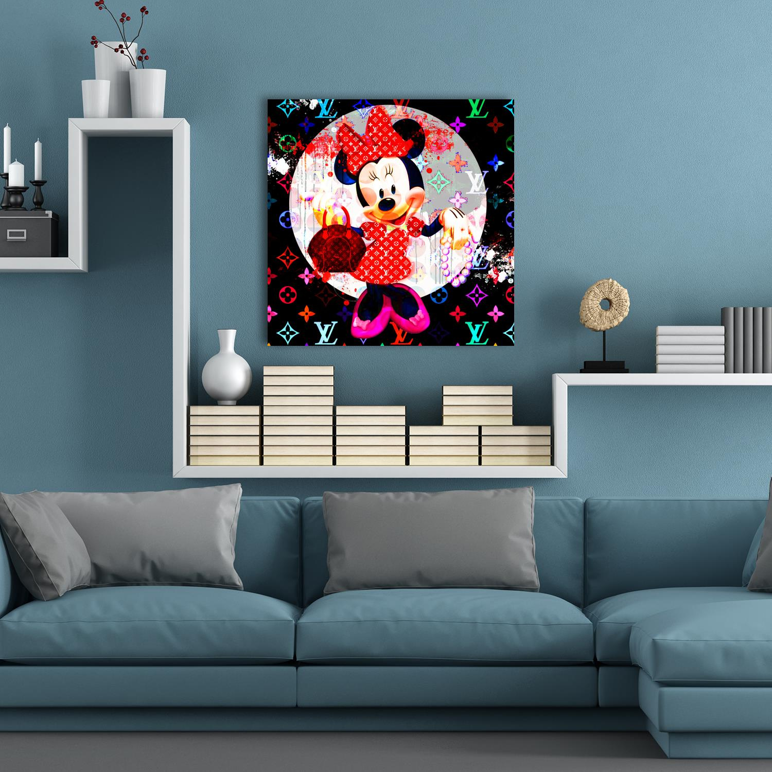 · Diese quadratischen Kunstwerke aus der Fashion Icon Collection verbinden abstrakten Graffiti-Stil mit ikonischer Mode und luxuriösen Elementen. Ausdrucksstarke Farben und urbane Details verleihen den Motiven eine moderne, exklusive Wirkung und machen jedes Bild zu einem stilvollen Statement für zeitgemäße Wohn- und Arbeitsräume.