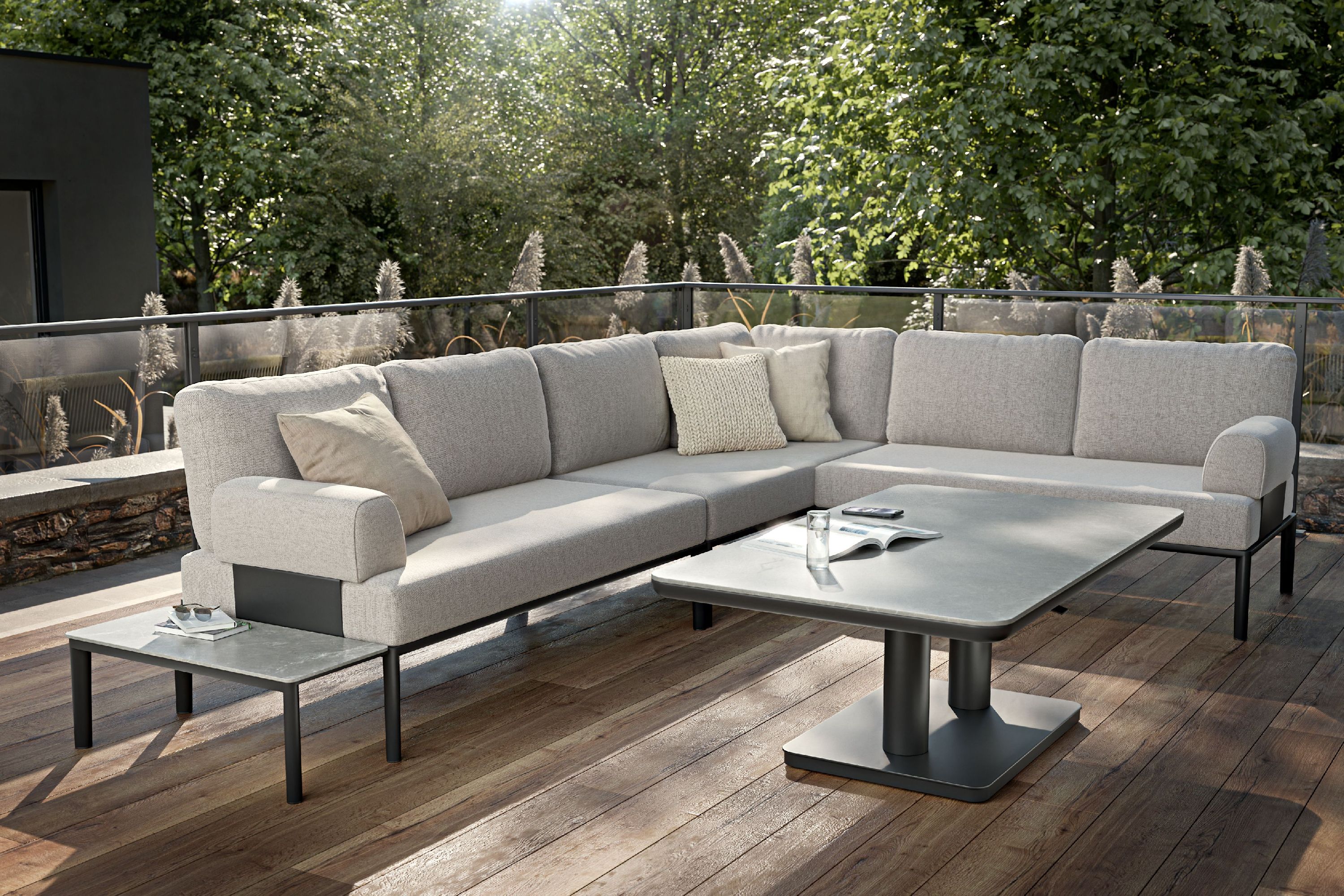 · Platte: gesinterter Stein in Beton hell · Gestell: Aluminium seidengrau matt, pulverbeschichtet mehr