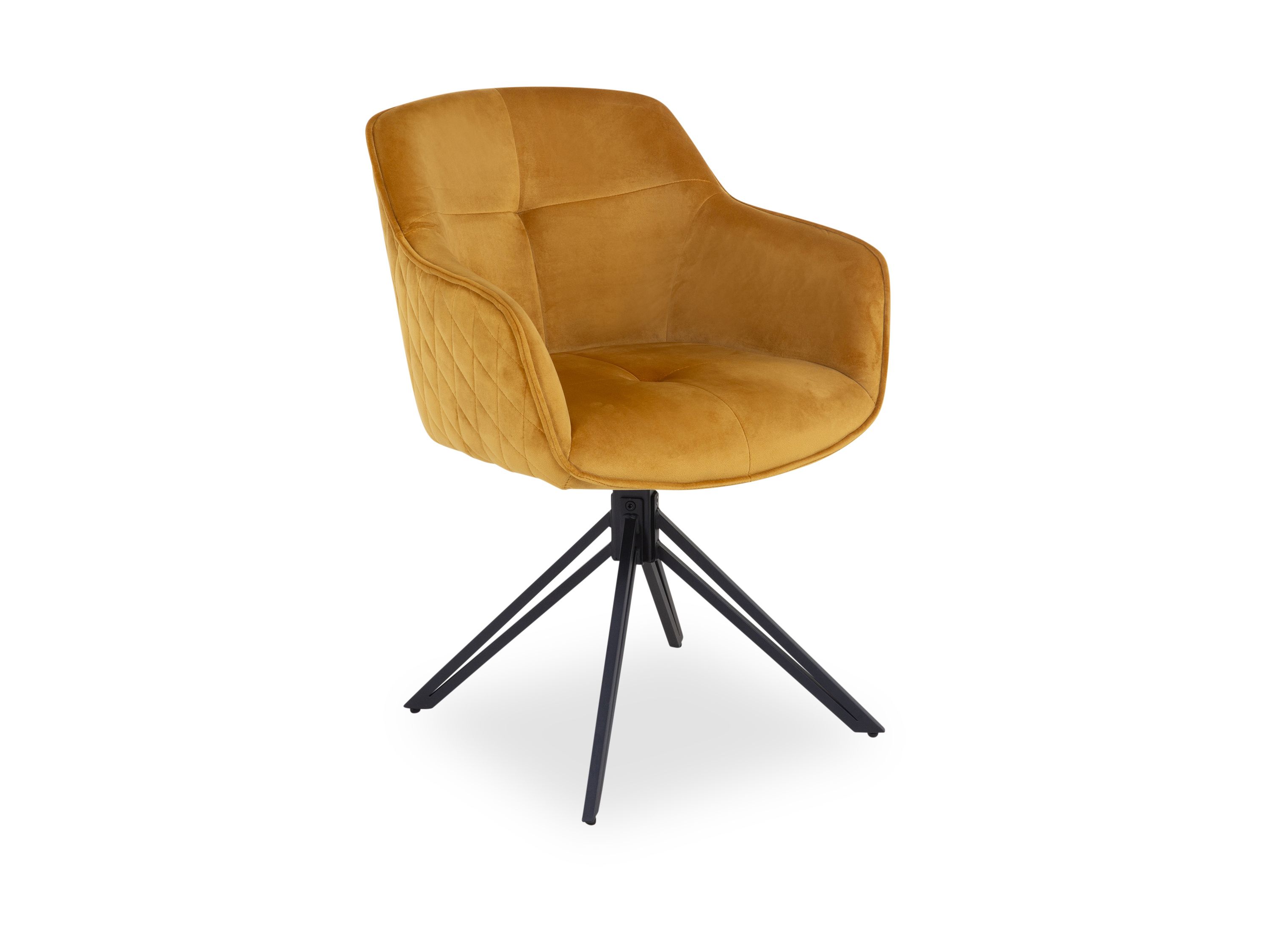 Der komfortable und stilvolle Armlehnenstuhl SARINA ist ein wahrer Blickfang für Ihr Zuhause. Das einzigartige Design kombiniert eine äußere Diamantensteppung mit einem goldenen Samtbezug im Inneren, der für ein luxuriöses Erscheinungsbild sorgt. Der hochwertige Bezug aus Polyester verleiht dem Stuhl eine angenehme Haptik und ist pflegeleicht. Ein Highlight ist seine Drehfunktion von 180 Grad mit Auto-Return. Mit einer komfortablen Sitzhöhe von ca. 50 cm ist dieser Stuhl ideal für lange Gespräche am Esstisch oder entspannte Stunden beim Lesen geeignet. Das Untergestell aus matt-schwarzem Metall verleiht dem Stuhl Stabilität und einen modernen Touch, der perfekt zu verschiedenen Einrichtungsstilen passt. Ob im Esszimmer, im Wohnzimmer oder im Arbeitsbereich, der Armlehnen Stuhl SARINA wird garantiert zum Mittelpunkt des Raumes und zieht bewundernde Blicke auf sich.