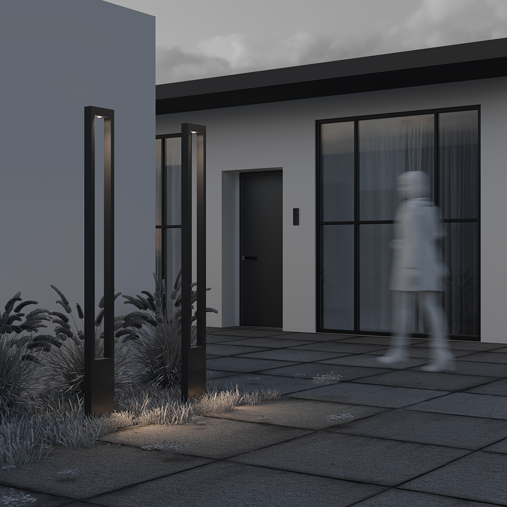 · Rahmenmaterial: Metall, Farbton: Graphit. Schutz vor Korrosion und Temperaturschwankungen. Hoher Schutzgrad IP65. Lichtquelle: LED-Modul mit einer neutralen Farbtemperatur von 3000K. Trendige Form eines rechteckigen Bogens. Die Serie umfasst Außenleuchten unterschiedlicher Höhe und Leistung.