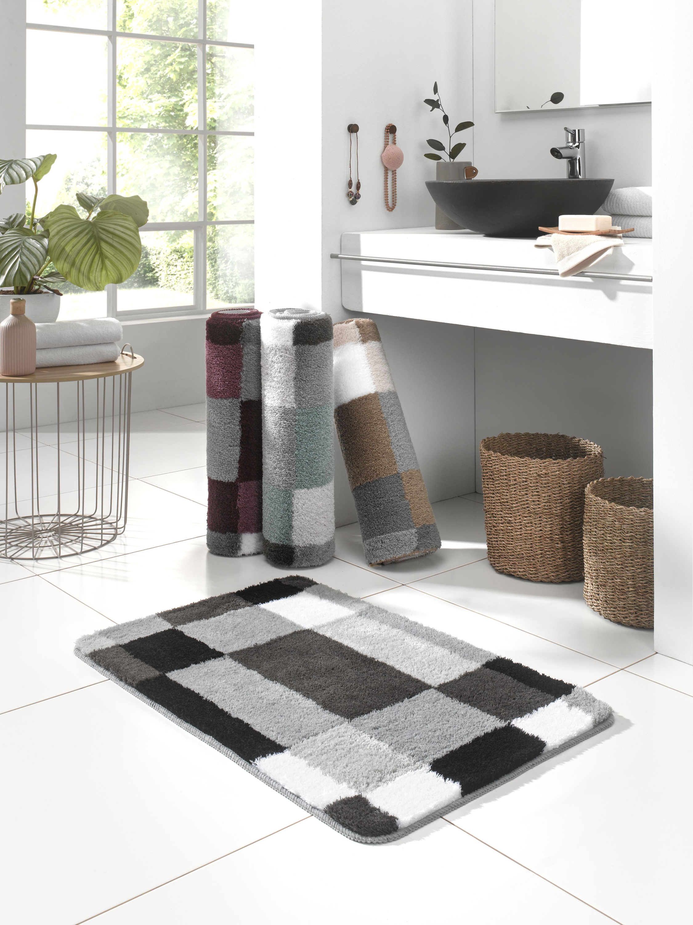 · Florhöhe: 20mm Mit einem schicken Kästchen-Muster in dezenten Farben überzeugt der Badteppich... mehr
