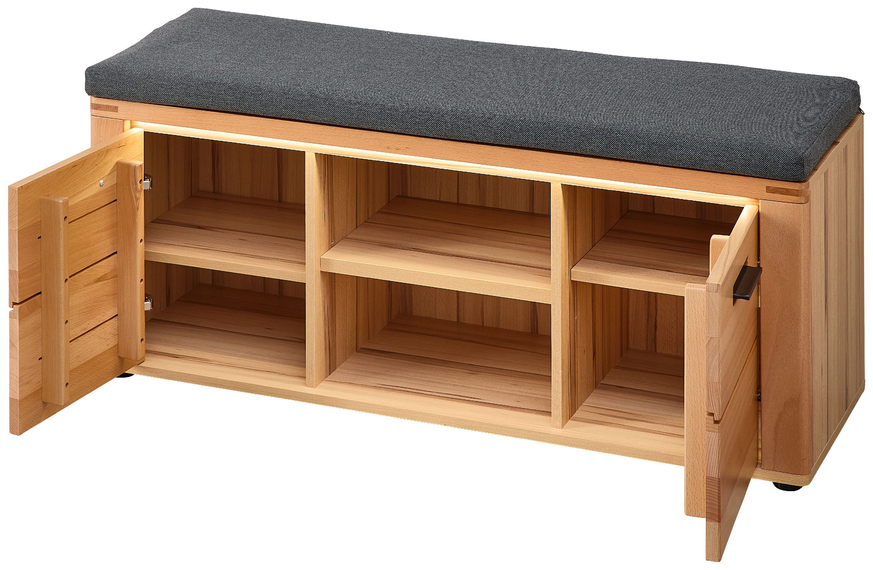 · Front: Kernbuche massiv lackiert · Korpus: Kernbuche Nachbildung · Sitzkissen: Stoff... mehr