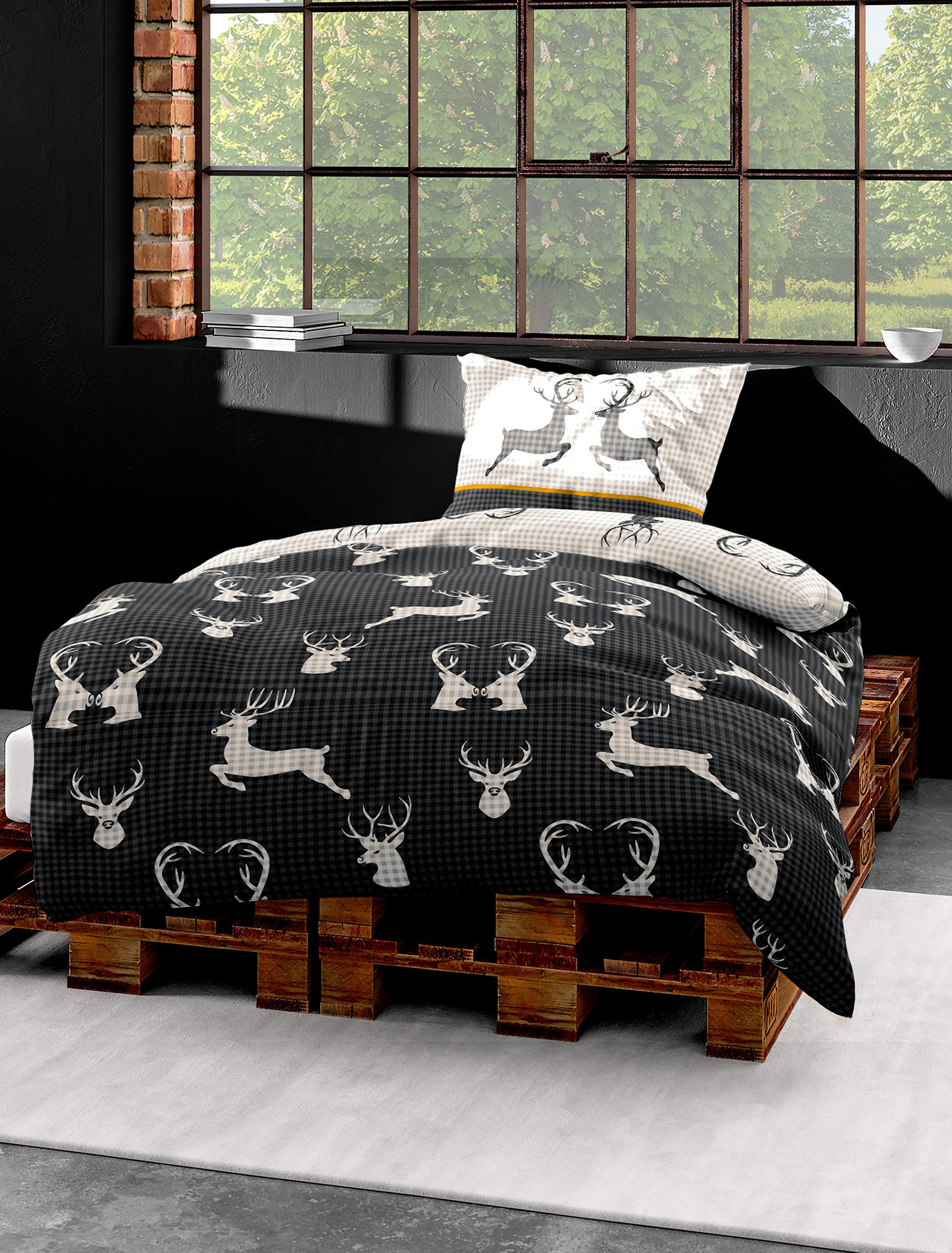 Bettwäsche Biber grafit aus Baumwolle