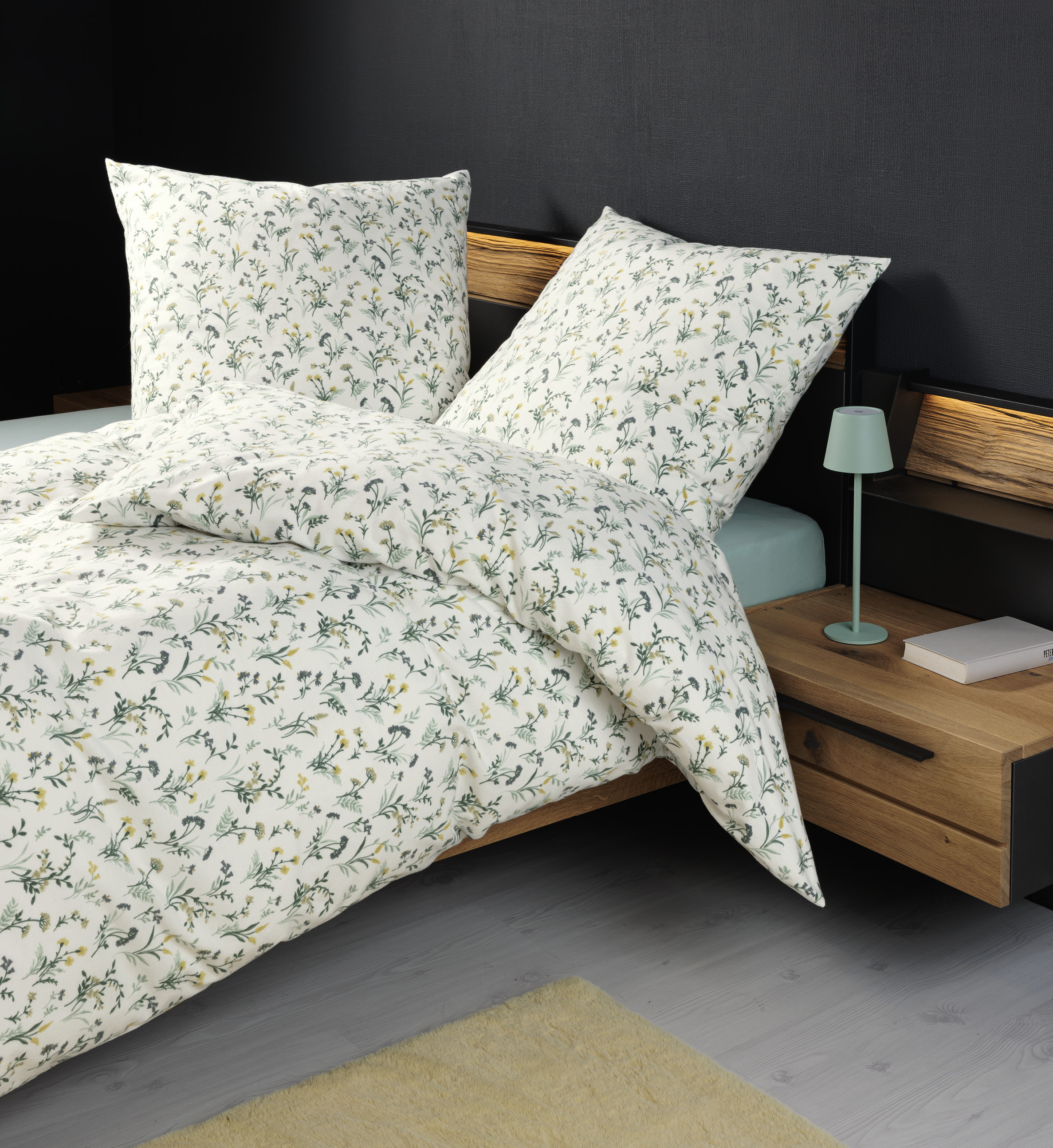 · salbeigrün gelb · 100% Baumwolle · Größe Kopfkissen: 80x80cm · mit Reißverschluss Mit... mehr