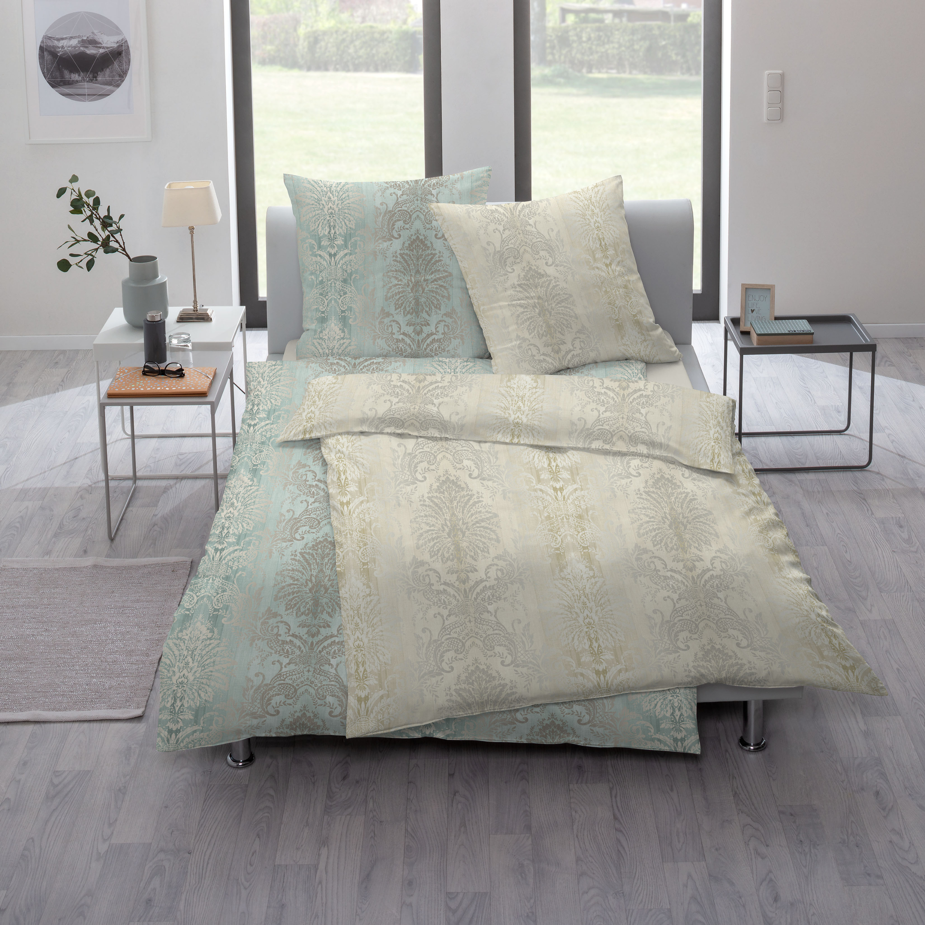 Mit dieser Bettwäsche-Garnitur können Sie erholsame Nächte genießen. Alle Qualitäten und Highlights, die die Marke ESTELLA ausmachen, kombiniert der Bettbezug gekonnt. Er begeistert nicht nur mit einem Design, auch seine Beschaffenheit zu überzeugen, sodass es Ihnen jede Nacht gelingt, gut einzuschlafen. Der moderne Stil harmoniert hervorragend mit geradezu jedem Einrichtungskonzept. Wachen Sie in dieser Bettwäsche erholt auf und genießen Sie dank der angenehmen Haptik ganzjährig entspannende Nächte. Das Material des Bettbezuges ist Jersey aus Baumwolle. Die Bettwäsche begeistert durch ihre angenehm weiche Beschaffenheit und das gute Gefühl auf der Haut. Sie hat eine Länge von insgesamt 200 Zentimetern sowie ein Breitenmaß von 135 Zentimetern. So muss Bettwäsche-Garnitur sein.