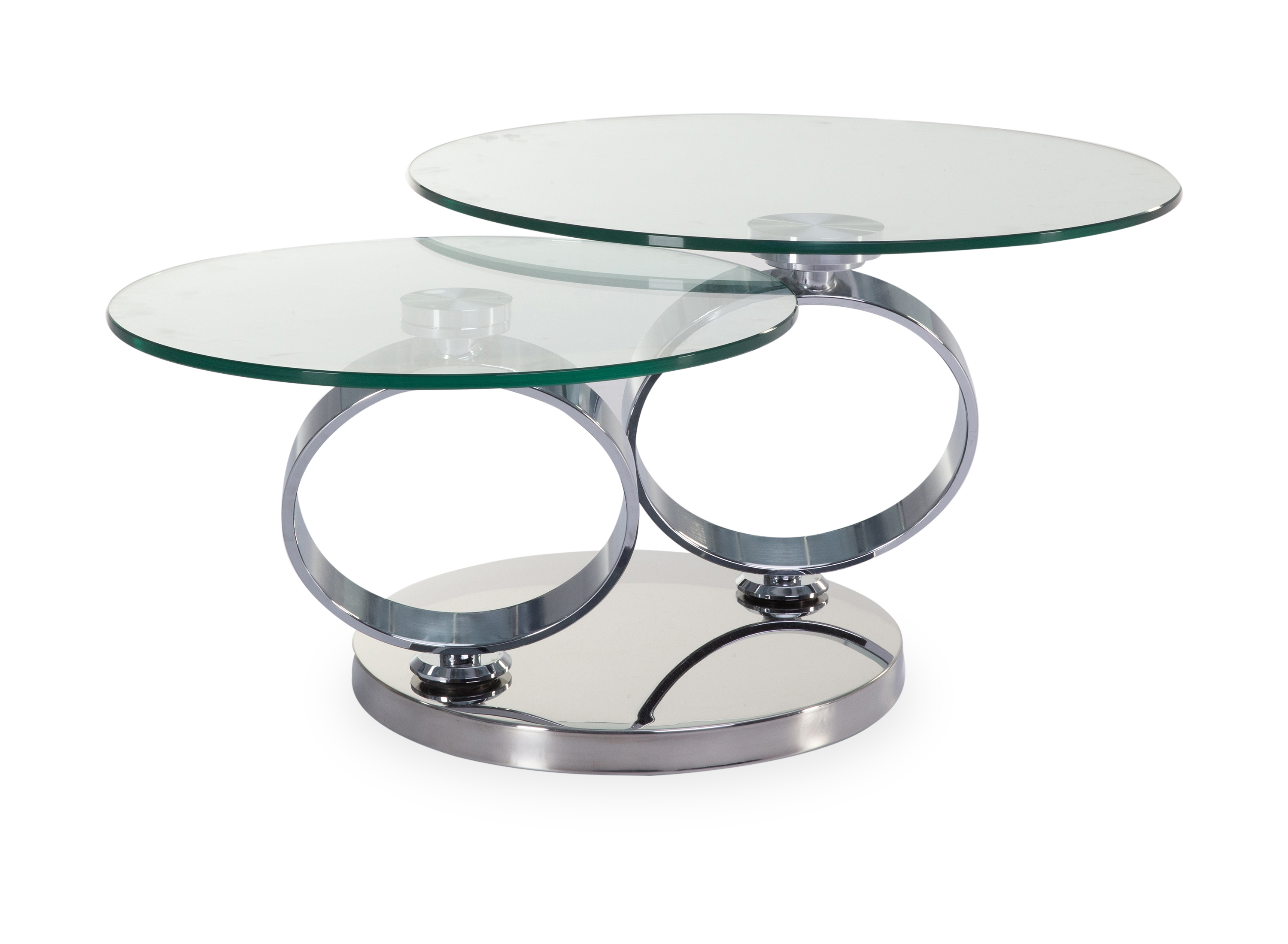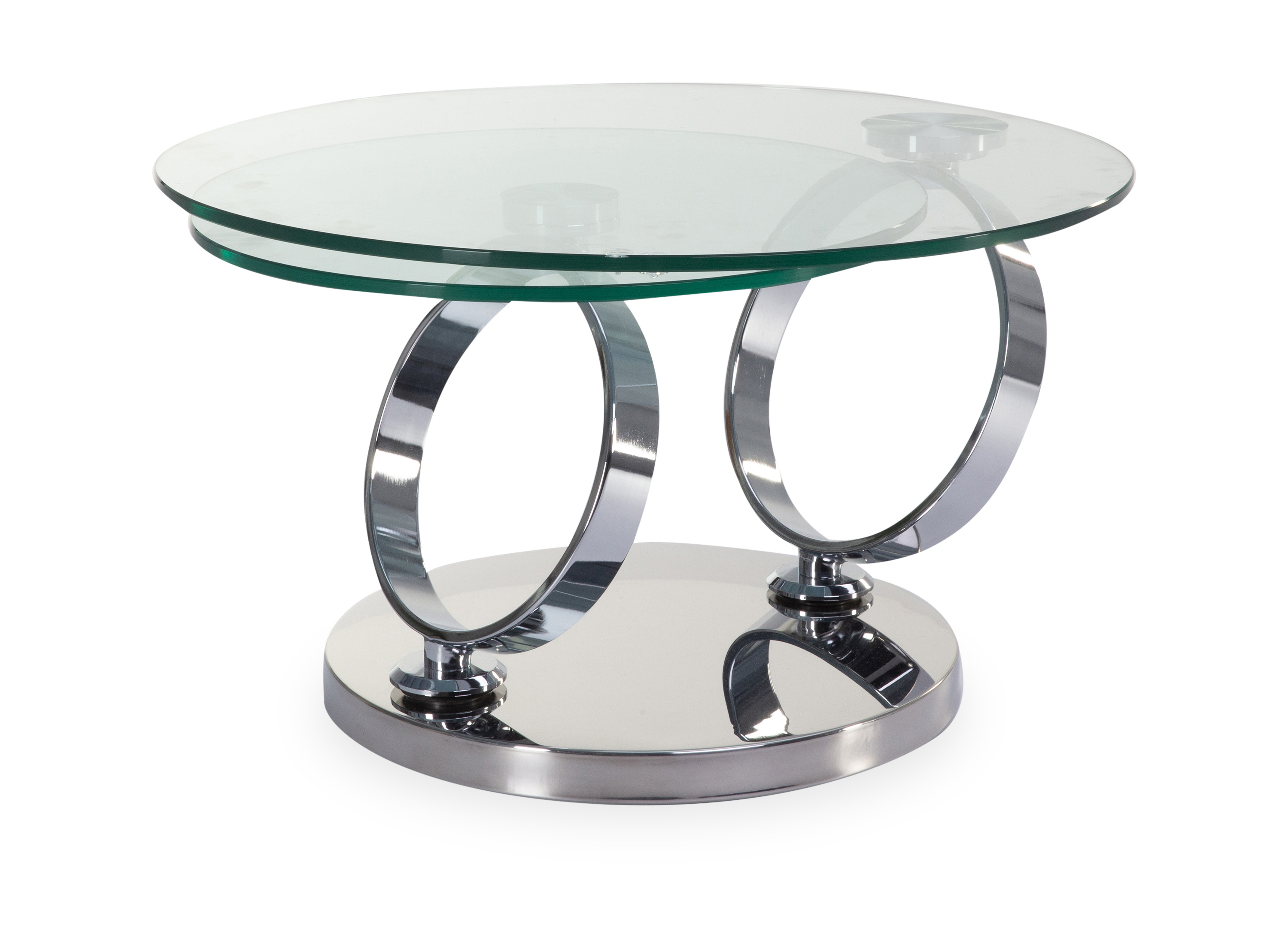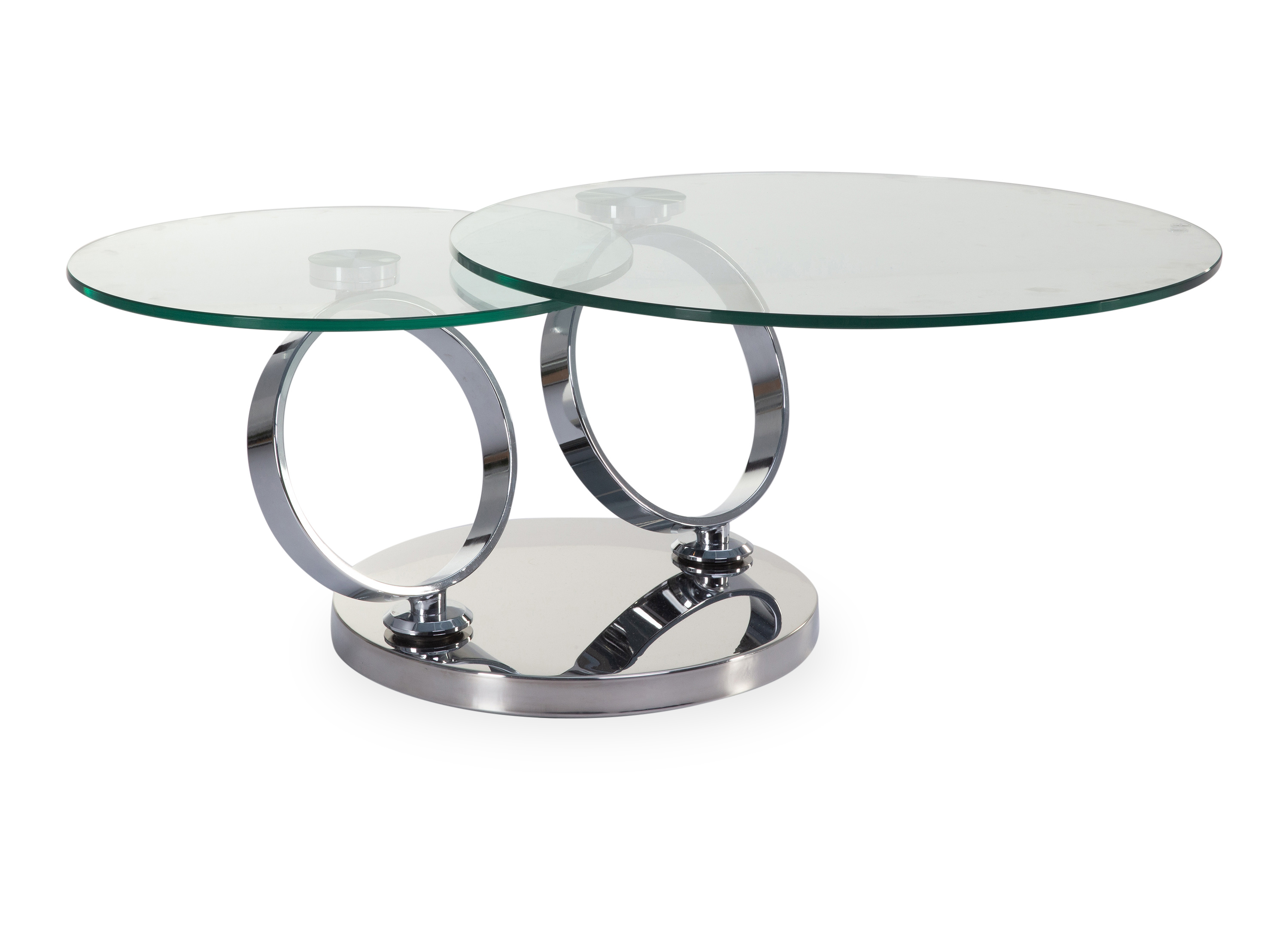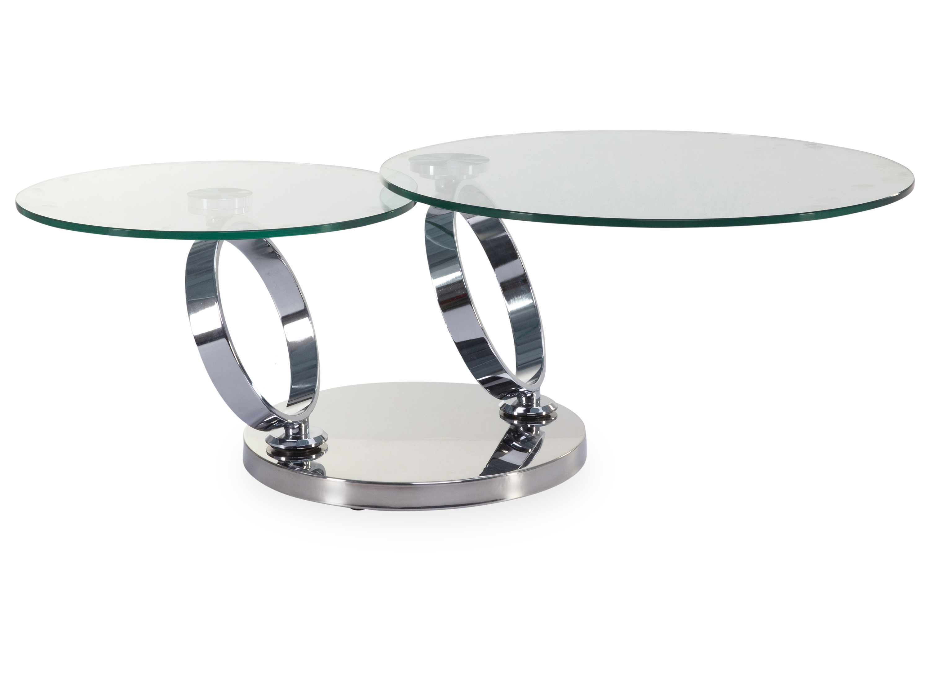 · Platten: Klarglas rund · Gestell: Stahl hochglanz verchromt · synchron drehbar Dieser... mehr