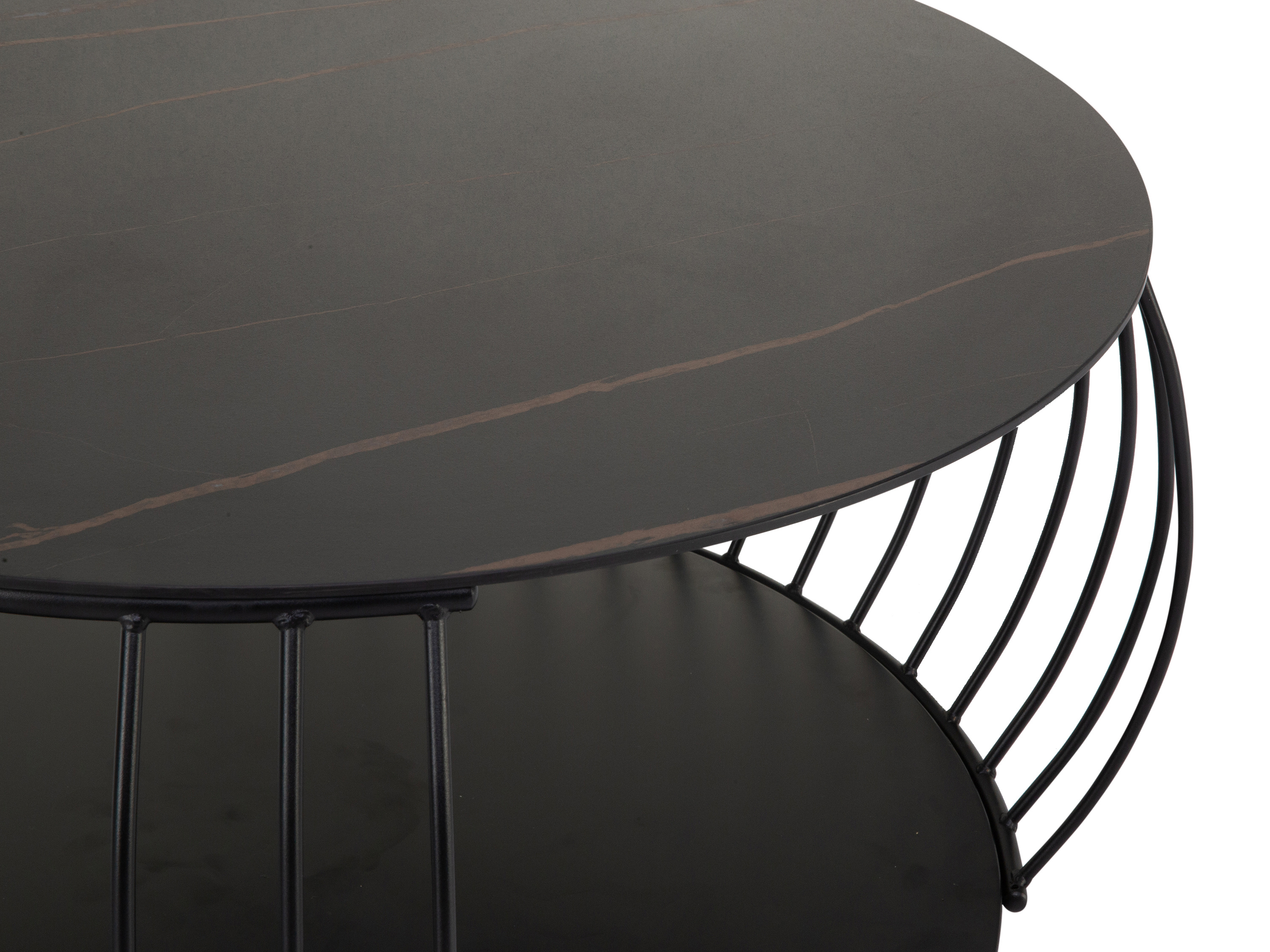 · Deckplatte: gesinterter Stein dunkel · Bodenplatte: MDF schwarz 15 mm · Gestell: Metall... mehr