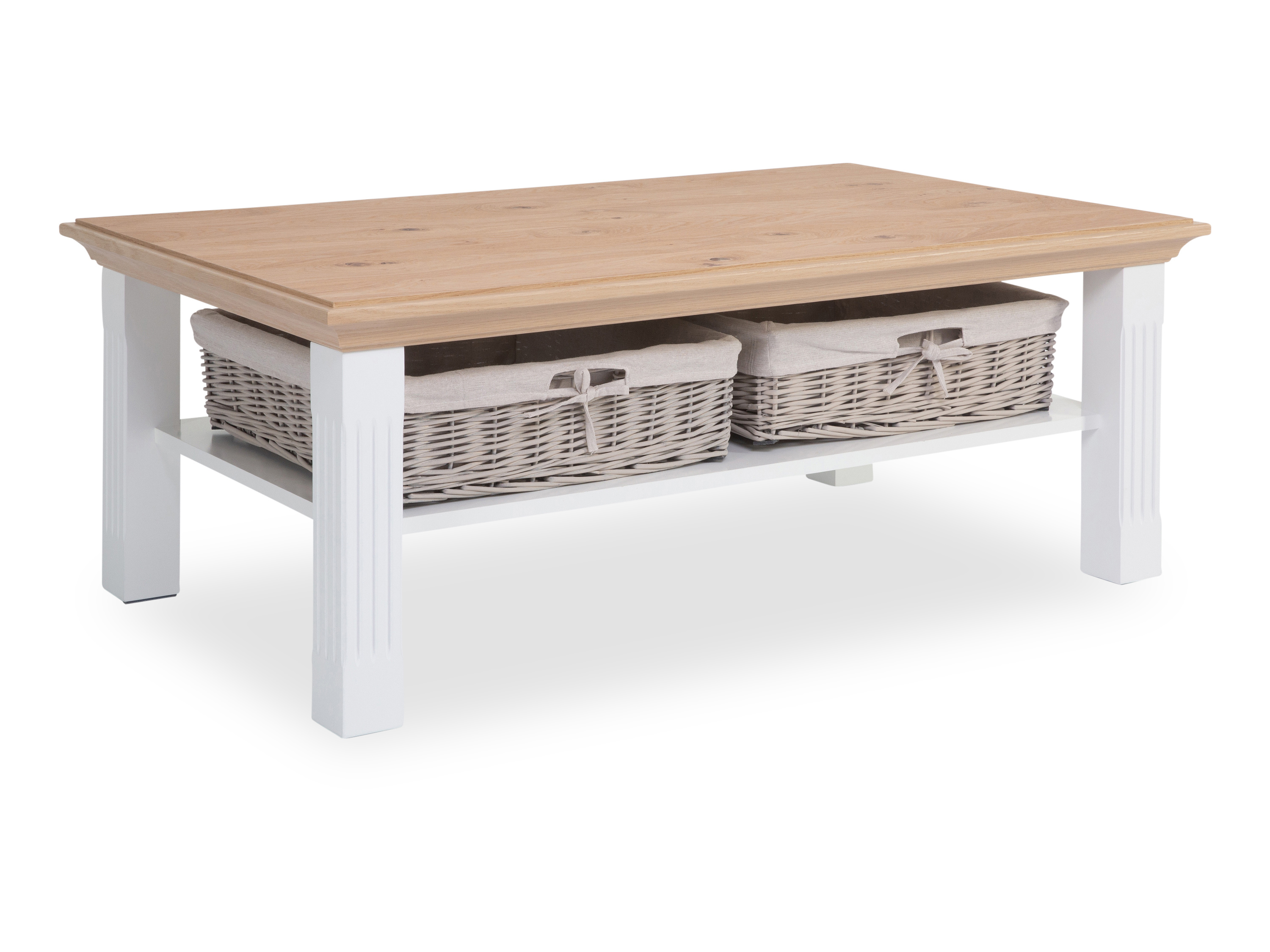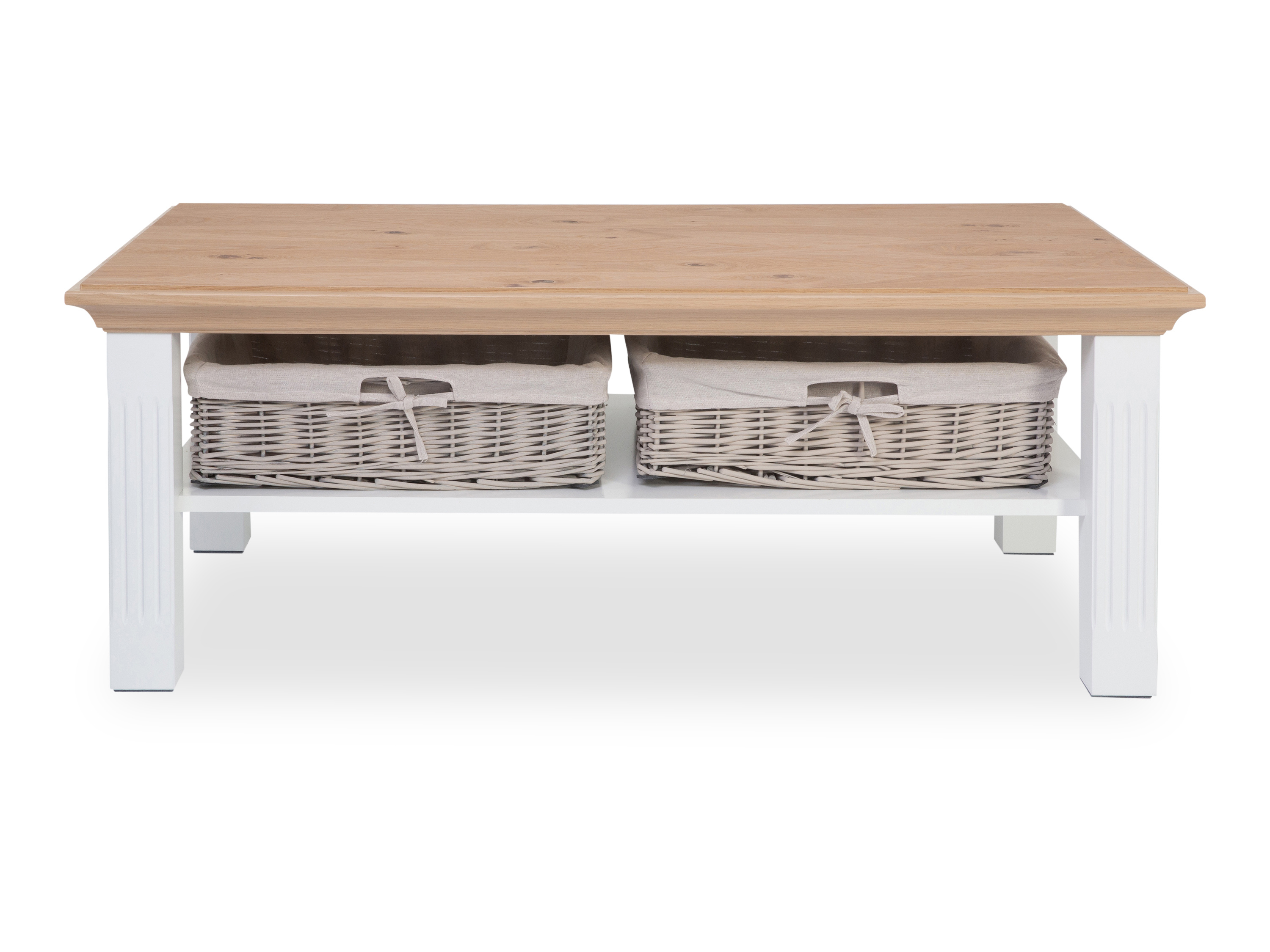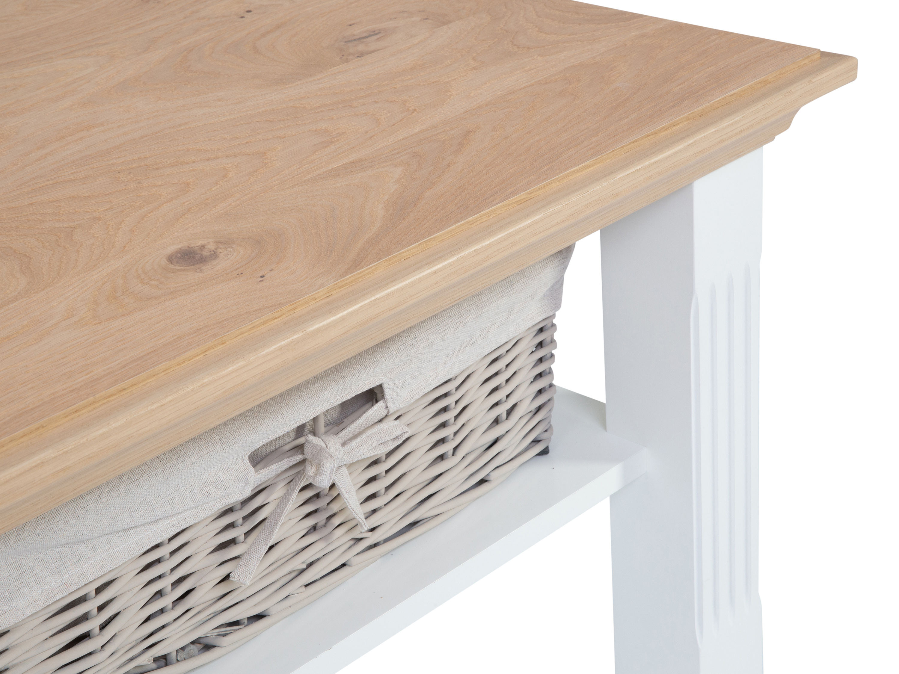 · Platte: Lack Asteiche · Gestell: Lack matt weiß · mit Ablageplatte und Flechtkörben Dieser... mehr