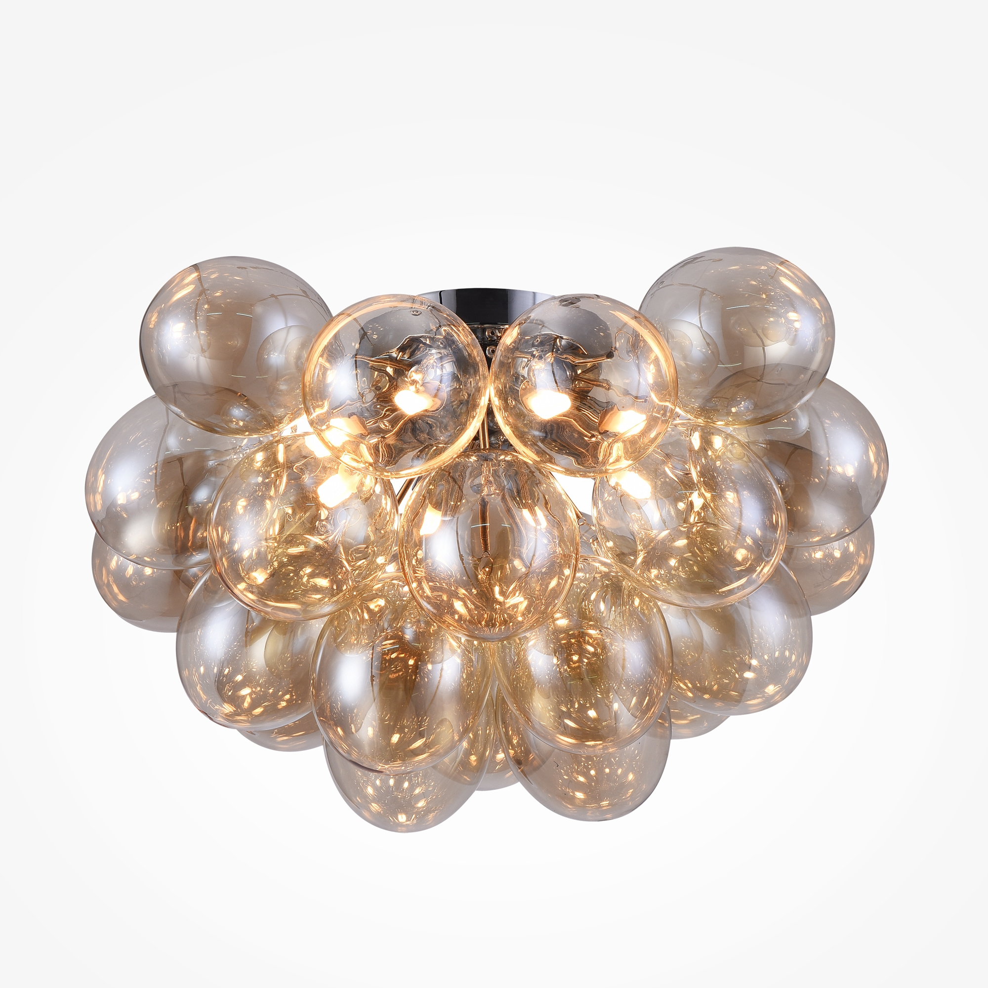 · Metallbeschläge in Nickel. Lampenschirme aus transparentem Glas in zwei Farbtönen: Rauch und Cognac. Lichtquelle: Leuchtmittel mit einer Fassung G9.