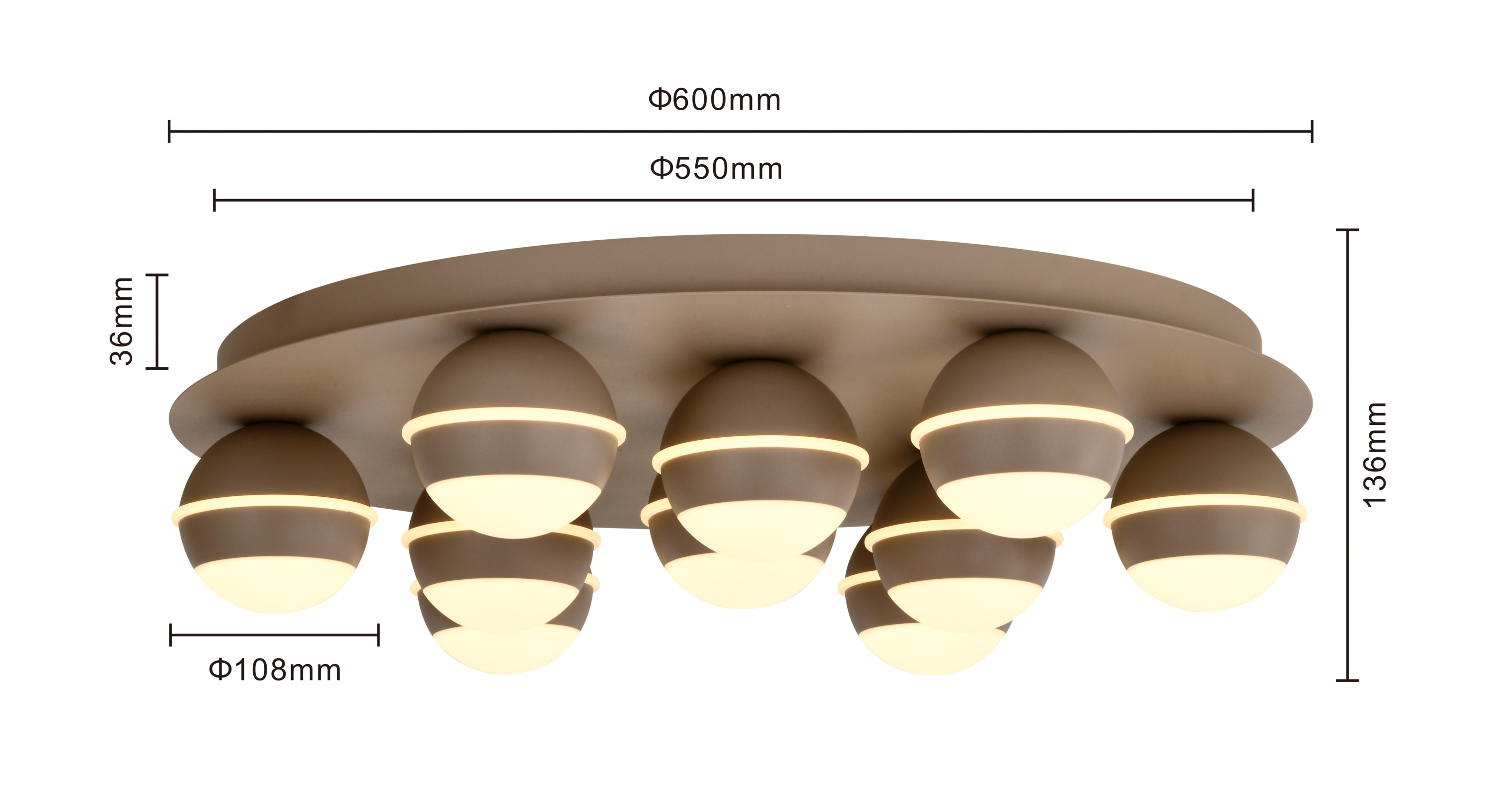 Für Ihre vier Wände ist diese Deckenleuchte eine großartige Wahl. Das Modell BIARRITZ harmoniert mit beinahe jeder Einrichtung und ist dank des hervorragenden Aussehens ein Highlight in jedem Zimmer. Die Deckenlampe wird sich perfekt in jeden Wohnraum integrieren und sorgt dort für eine behagliche Atmosphäre. Auch was die Materialqualität angeht, weiß die Leuchte aus Metall zu überzeugen. Das Modell BIARRITZ weist ein Längenmaß von insgesamt 14 cm auf, ist 60 cm hoch und misst in der Breite 60 cm. Es verfügt über eine LEDF-Fassung. Die Lampe ist eine dekorative Möglichkeit, Ihren Wohnraum zu beleuchten, und somit eine tolle Wahl für Ihre Einrichtung. Durch die ansprechende Lichtwirkung der Deckenlampe wird eine heimelige Atmosphäre zum Wohlfühlen erzeugt.