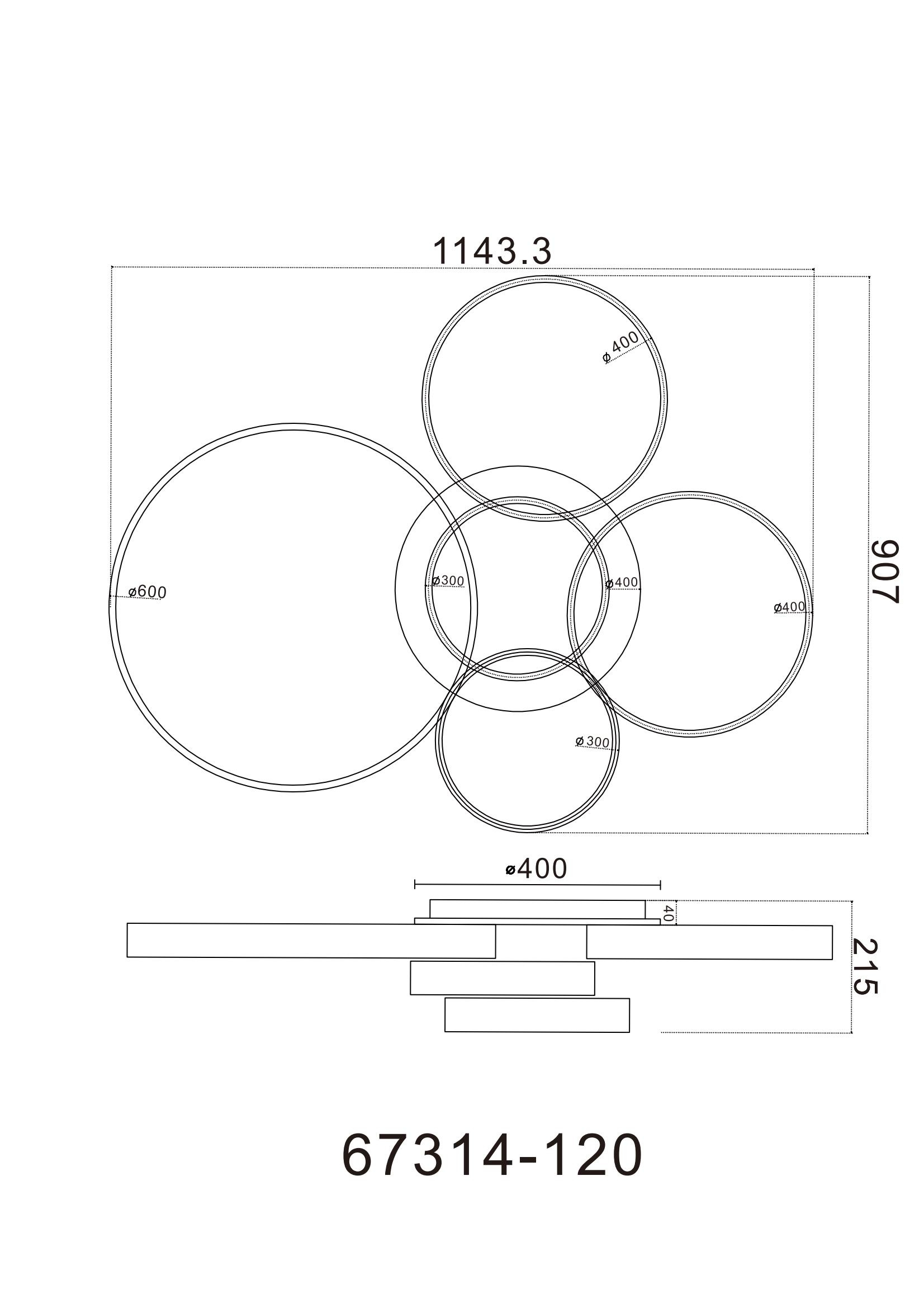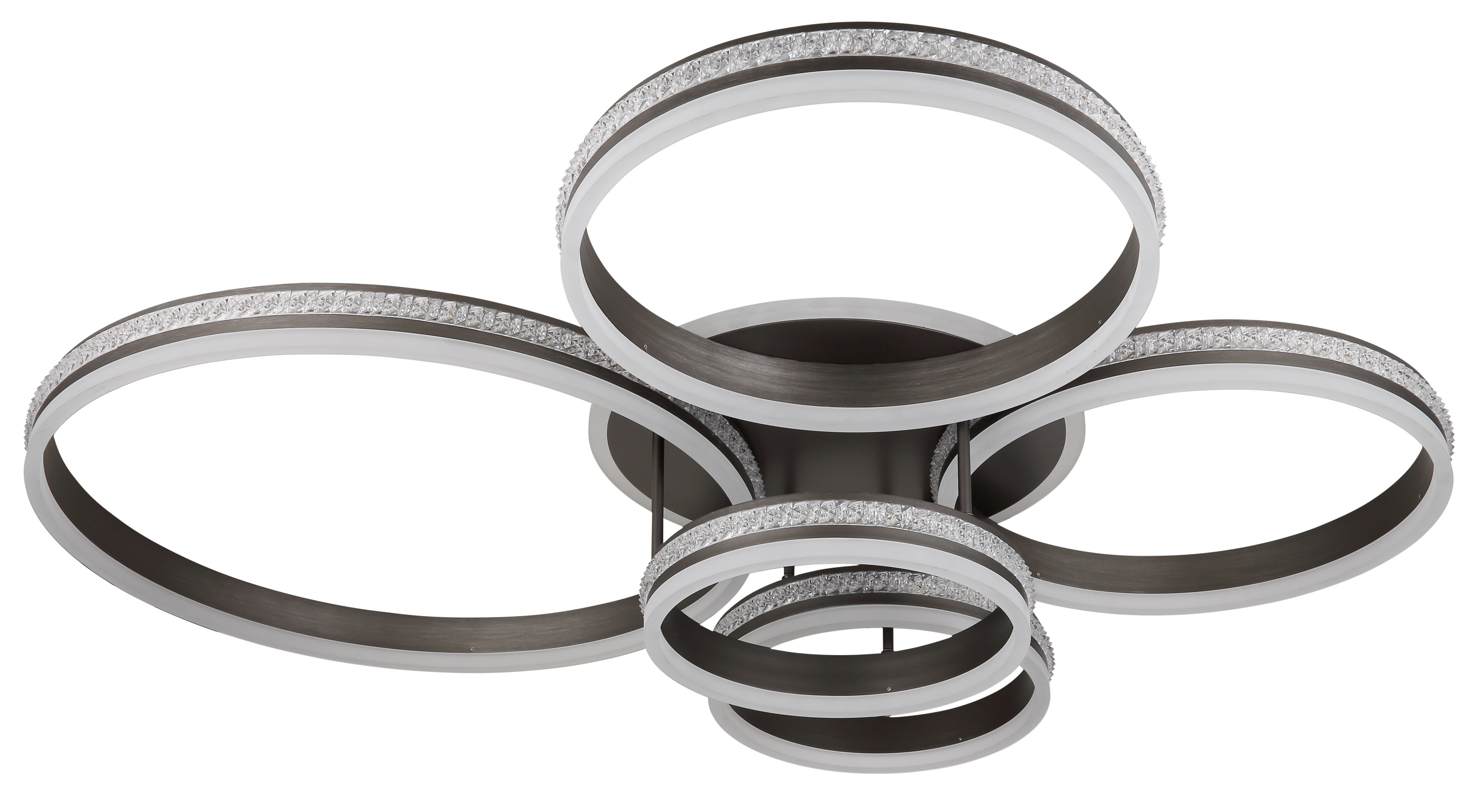 · Tauchen Sie ein in eine Welt des Luxus mit der GROUNI Deckenleuchte! Ihr titanfarben gebürstetes Metall und Aluminium verleihen Ihrem Raum eine edle Atmosphäre. Die klaren Kunststoffkristalle und das opale Acrylglas erzeugen ein beeindruckendes Lichtspiel. Mit der dimmbaren Funktion, die über mehrere Stufen über Ihren Wandschalter gesteuert werden kann, haben Sie die volle Kontrolle über die Lichtintensität. Die Farben können nach Ihren Wünschen fixiert werden und die integrierte Memoryfunktion ermöglicht es Ihnen, Ihre bevorzugten Einstellungen beizubehalten. Zusätzlich bietet die GROUNI Deckenleuchte ein Nachtlicht und wird mit einer Fernbedienung geliefert. Die Batterie (2x AAA) ist bereits inkludiert. Mit den Abmessungen von 1140x910x215mm (Länge x Breite x Höhe) und einem Ringdurchmesser von 2x 30 cm, 2x 40 cm und 1x 60 cm wird die GROUNI Deckenleuchte zum beeindruckenden Blickfang. Die Leuchte wird inklusive eines energieeffizienten LED-Leuchtmittels geliefert, das 120W Leistung, 230V Spannung, 1265-12580lm Lichtstrom (Source) und 545-4900lm Lichtausbeute (Output) sowie eine einstellbare Farbtemperatur von 2700-6000K (CCT) bietet.