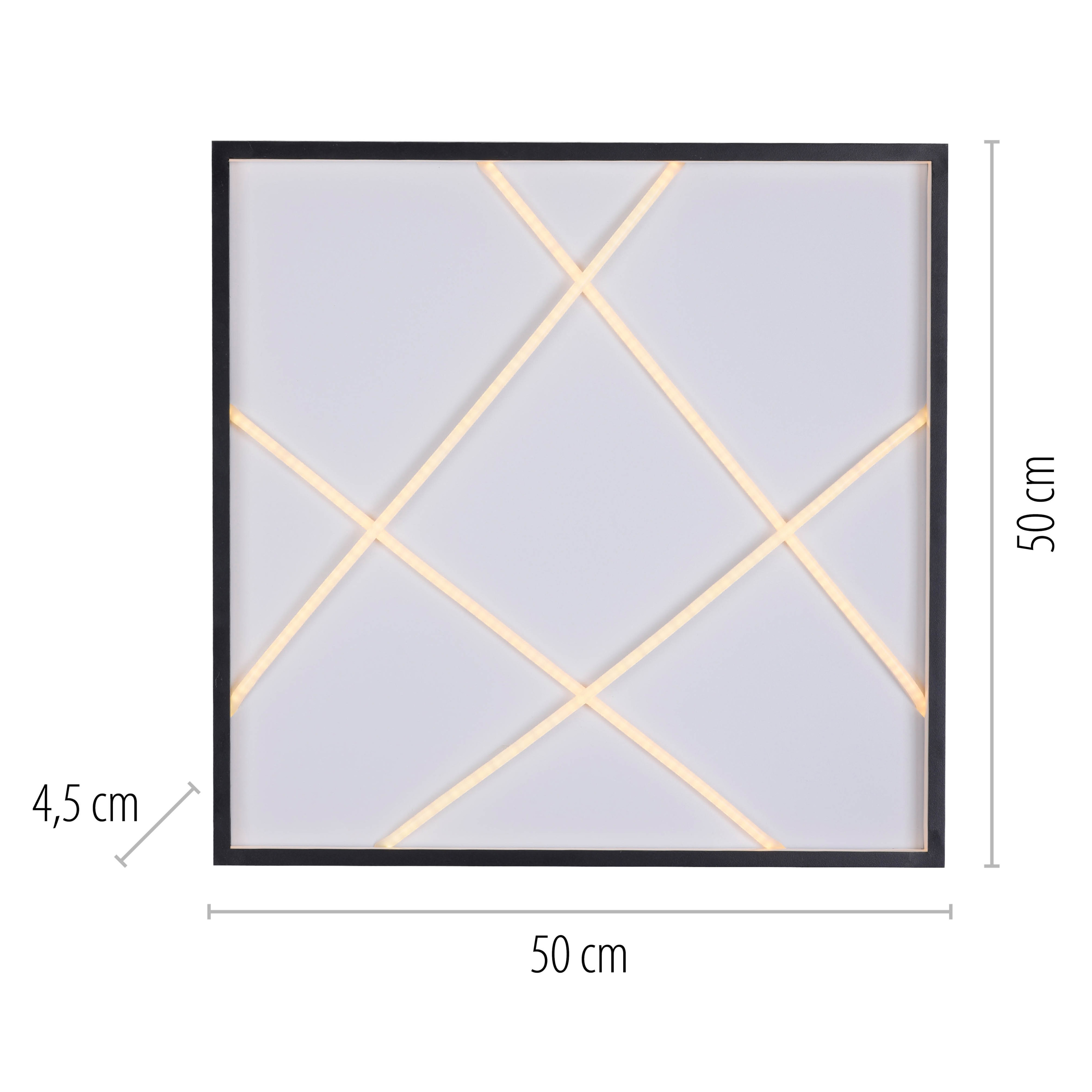 Lassen Sie sich von dieser Deckenlampe begeistern. Sie können bei der Lampe auf erstklassige JUST-LIGHT.-Markenqualität bauen. Das Modell MIKADO erweitert das Lichtkonzept jeden Wohnraums durch sein stilsicheres Aussehen auf wirkungsvolle Art und Weise. Es ist ein Must-Have, um in Ihren Räumen eine schöne Atmosphäre herzustellen. Die Lampe ist insgesamt 4,5 cm hoch, besitzt eine Länge von 50 cm und hat eine Breite von 50 cm. Das Modell MIKADO wurde für die Verwendung von Leuchtmitteln mit einem LEDF-Sockel hergestellt. Das moderne Design harmoniert ideal mit nahezu jedem Einrichtungskonzept. Um das Erscheinungsbild eines Bereichs perfekt zu ergänzen, eignet sich die Deckenleuchte hervorragend. Durch diese Deckenleuchte können Sie das Gesamtbild Ihres Wohnraums weiter verschönern.