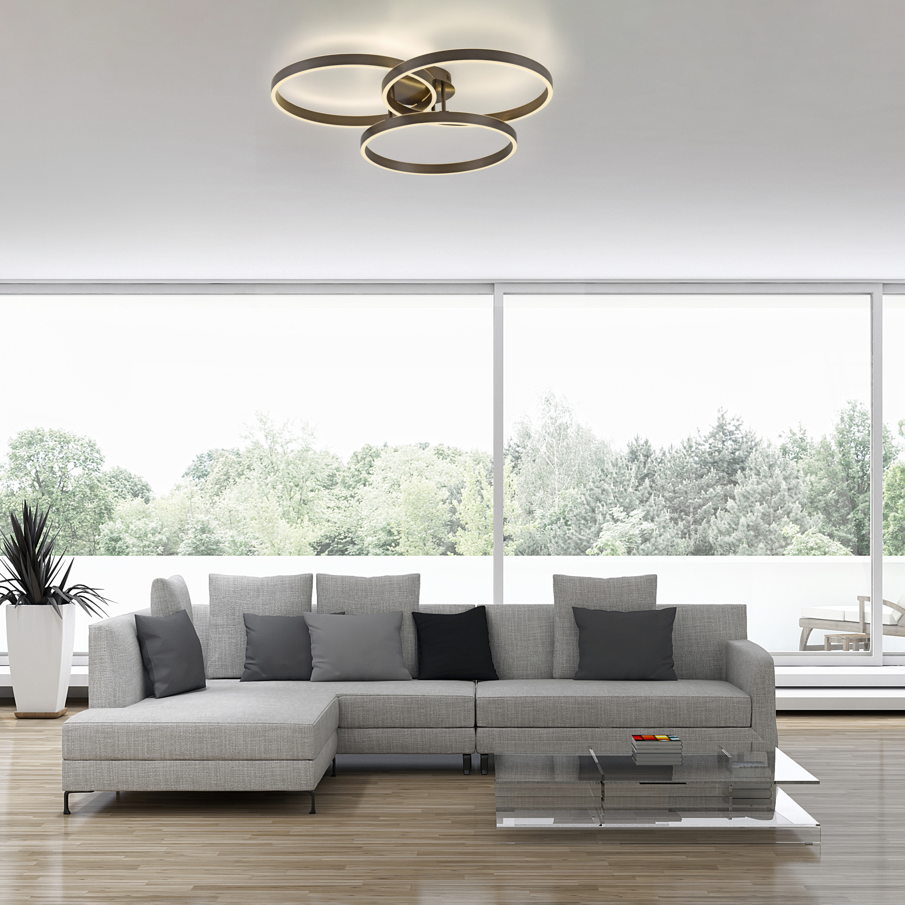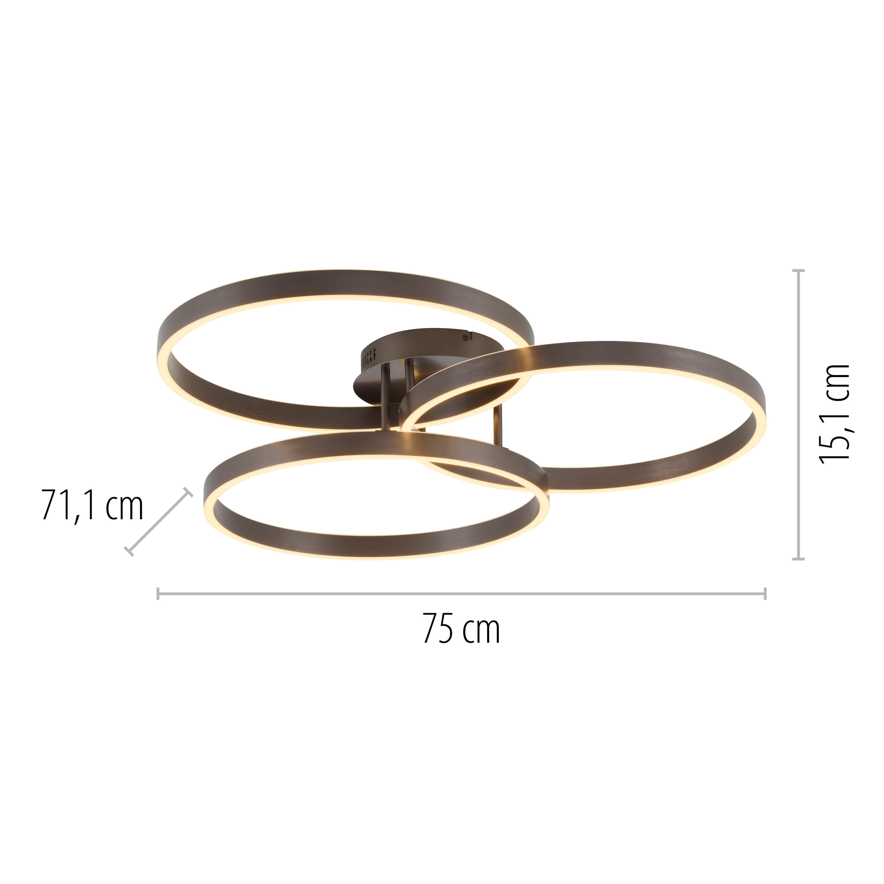 Diese Deckenlampe verleiht Ihren vier Wänden das gewisse Etwas. Für viele Zimmer ist die Deckenleuchte ein toller Lichtspender und kann aufgrund des hervorragenden Designs auch als Deko-Element angewendet werden. Sie treffen mit dieser Lampe eine Wahl für hohe Markenqualität von MONDO. Die Deckenlampe ergänzt Ihr persönliches Konzept durch das moderne Design. Sie misst in der Breite insgesamt 71,1 cm, weist eine Höhe von 15,1 cm auf und hat eine Länge von 75 cm. Egal, mit welchem Einrichtungsstil sie kombiniert wird, wird die Deckenleuchte Ihrem Wohnraum eine schöne Note verleihen. Bei der Herstellung kommt Metall zum Einsatz. Die Deckenleuchte wurde für die Verwendung von Leuchtmitteln mit LEDF-Sockel konstruiert. Der tolle Look der Deckenlampe schenkt allen Zimmern ein wohliges Flair, welches problemlos mit Ihrer vorhandenen Dekoration harmonieren kann. Die Deckenleuchte bietet nicht nur ein attraktives Lichtbild, sondern avanciert dank ihrer ansprechenden Optik auch zu einem stilvollen Dekoobjekt.