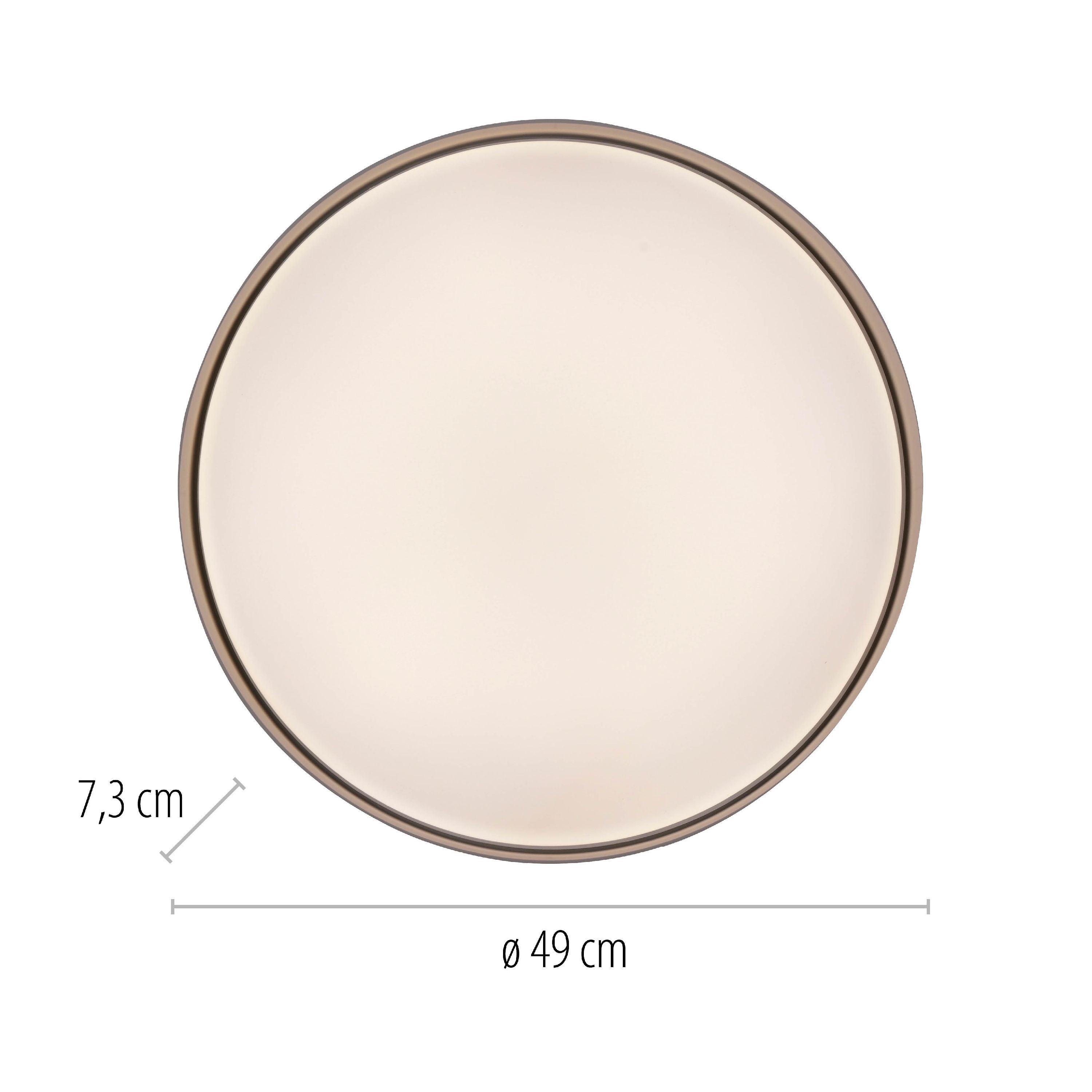 Lassen Sie sich von dieser Deckenleuchte begeistern. Die Leuchte vervollständigt das Einrichtungskonzept jeden Wohnraums durch ihr hervorragendes Aussehen auf stilvolle Weise. Alle Qualitäten und Besonderheiten der Marke SCHÖNER WOHNEN werden in dieser Deckenlampe zusammengeführt. Die Leuchte ist 7,3 cm hoch, weist ein Längenmaß von 49 cm auf und hat ein Breitenmaß von 49 cm. Sie integriert sich perfekt in Ihr Zimmer und kreiert ein wunderschönes Ambiente. Die Deckenleuchte kann mit Leuchtmitteln mit einem LEDF-Sockel bestückt werden. Die Deckenleuchte im skandinavischen Design harmoniert dank ihrer schönen Optik mit beinahe jedem Einrichtungsstil und kreiert ein tolles Wohngefühl. Runden Sie Ihre Einrichtung mit dieser Deckenleuchte ab und verleihen Sie ihr ein neues Ambiente.