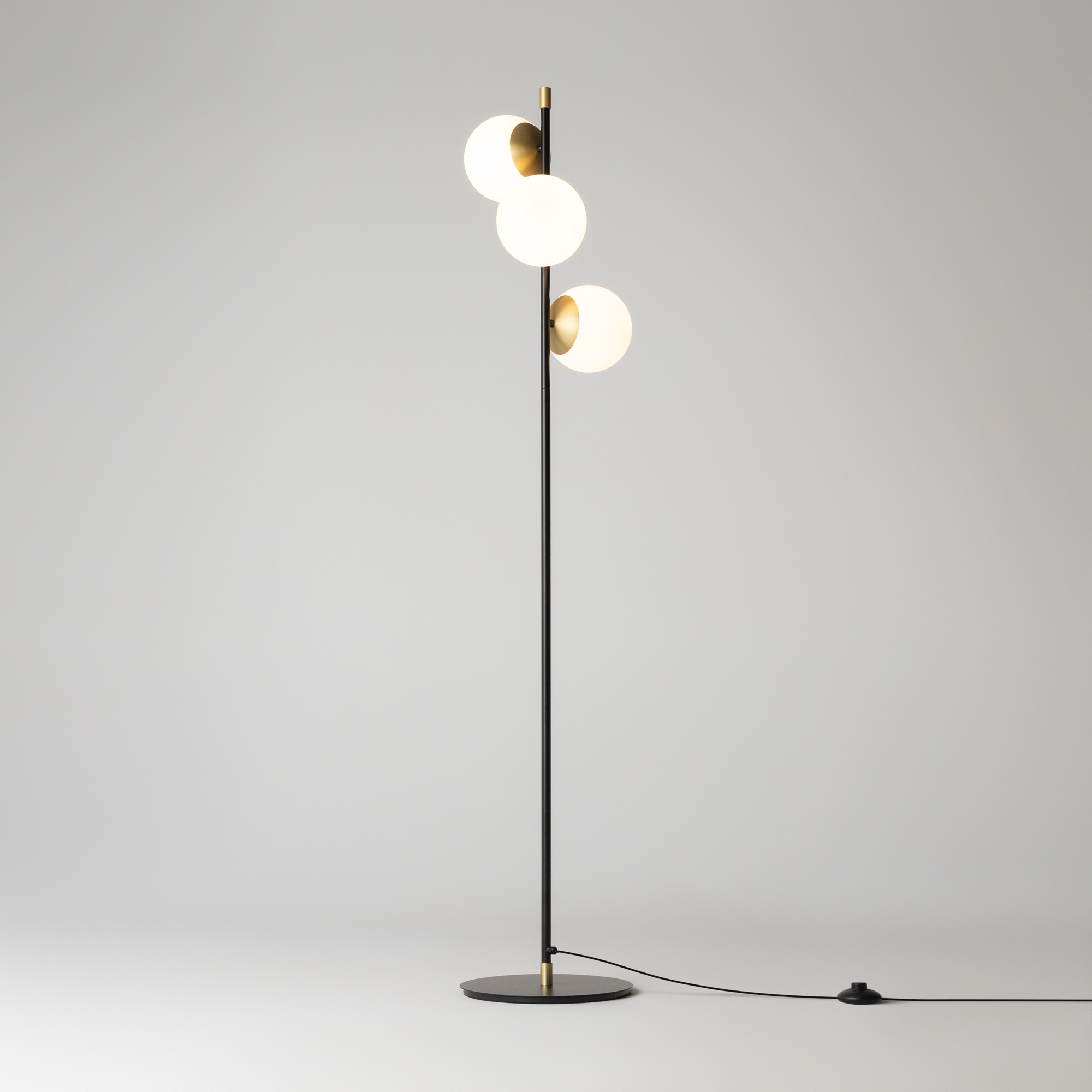 · schwarz und gold · Metall · Metallbeschläge in mattem Gold. Kugelförmige Lampenschirme aus... mehr