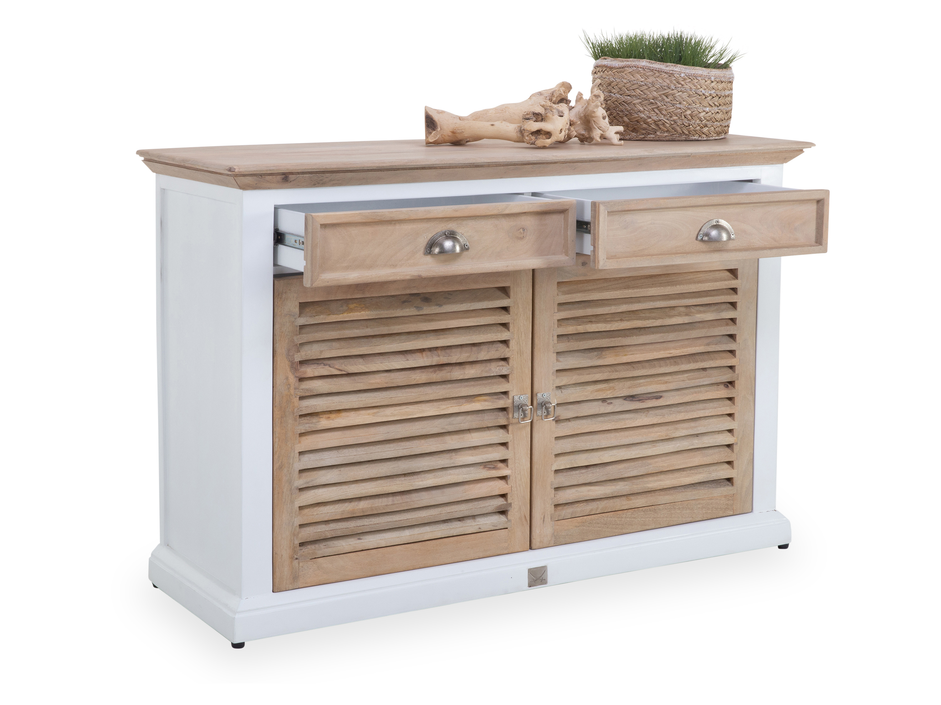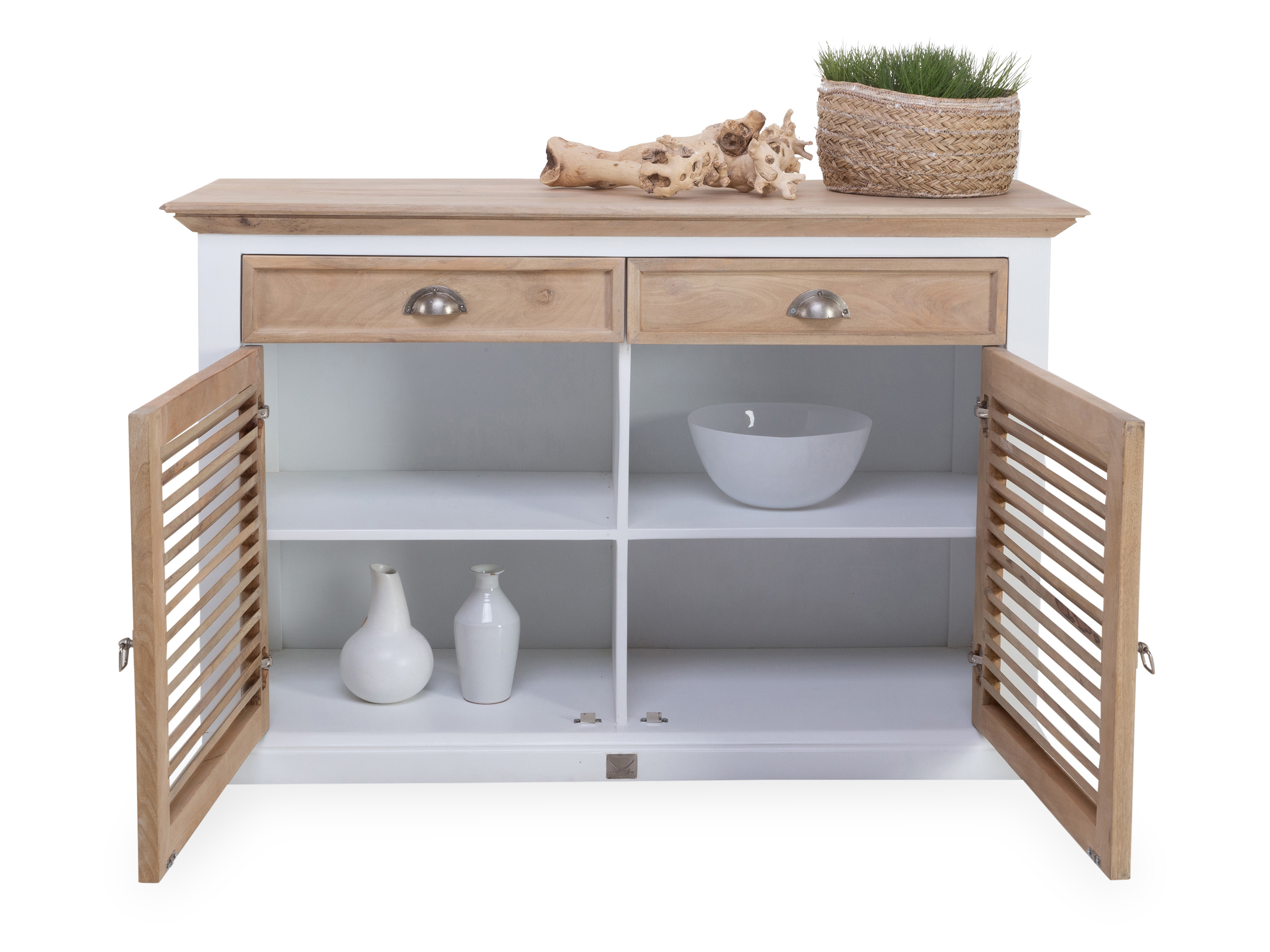 · mit zwei Türen, zwei Schubladen und zwei Einlegeböden