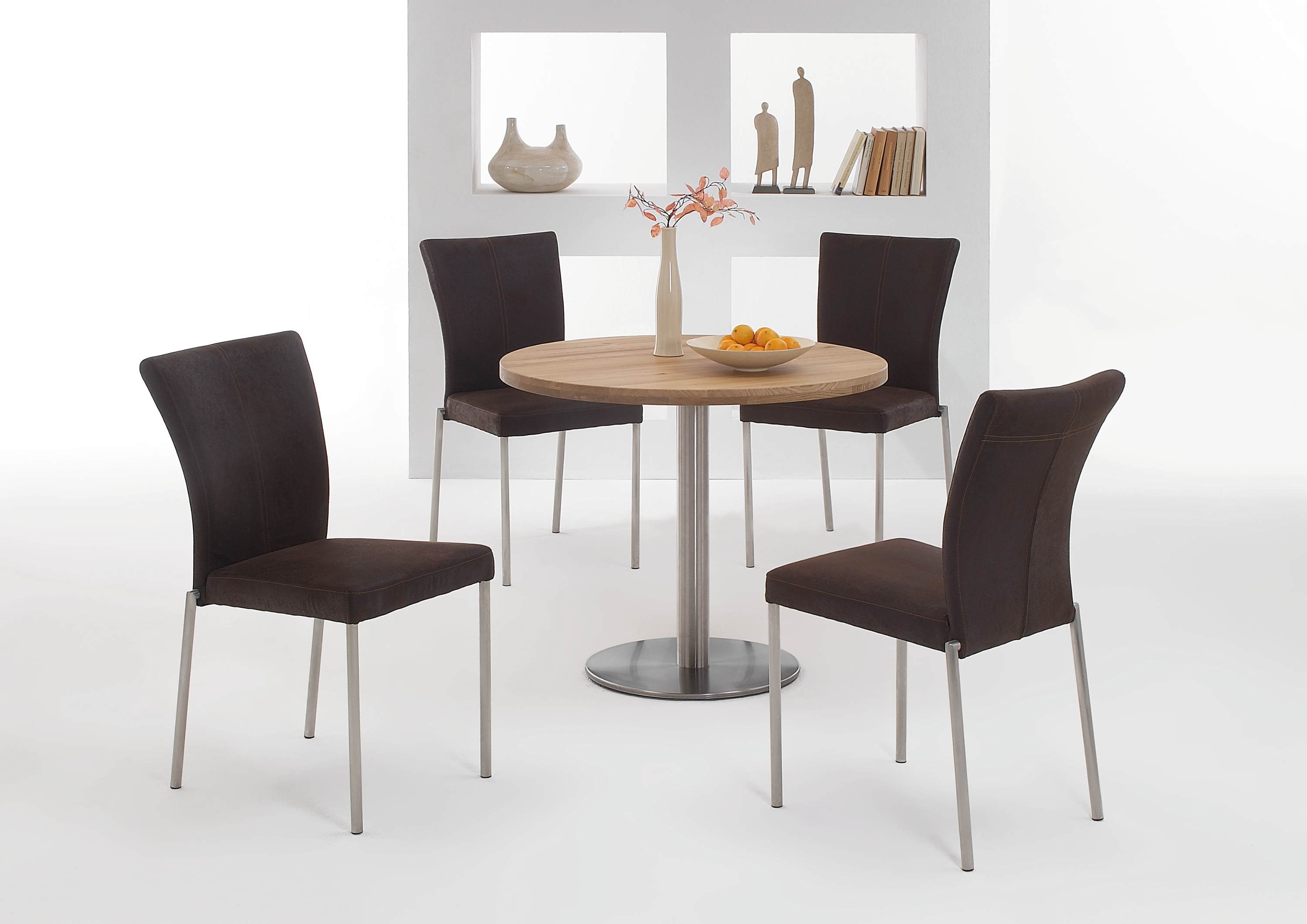 · Gestell: Edelstahl gebürstet · Tischplatte: Wildeiche massiv · Plattenprofil: Cubic ·... mehr