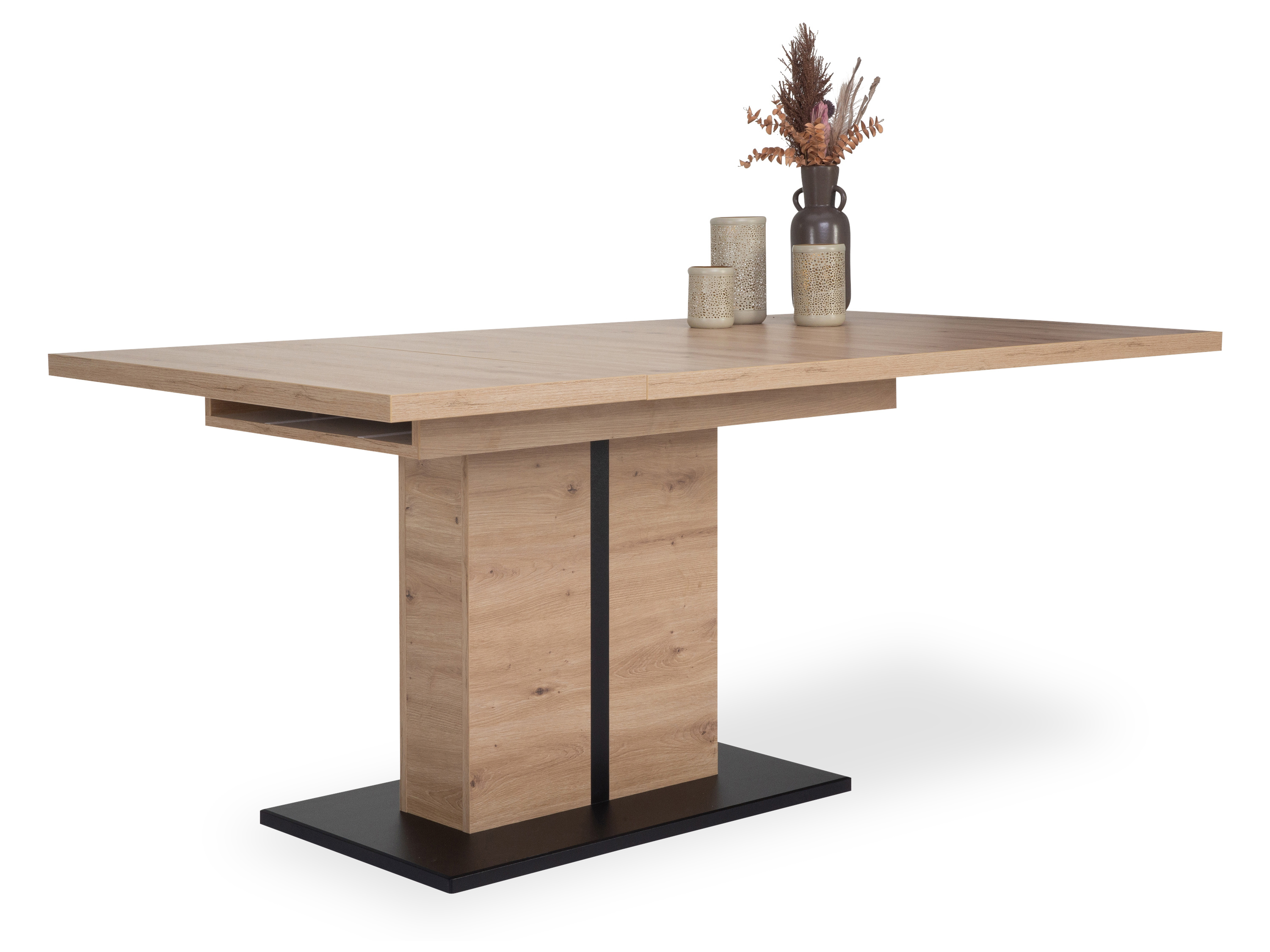· Platte: Artisan-Eiche Dekor · Gestell: Säule mit Metallapplikation in schwarz · mit... mehr