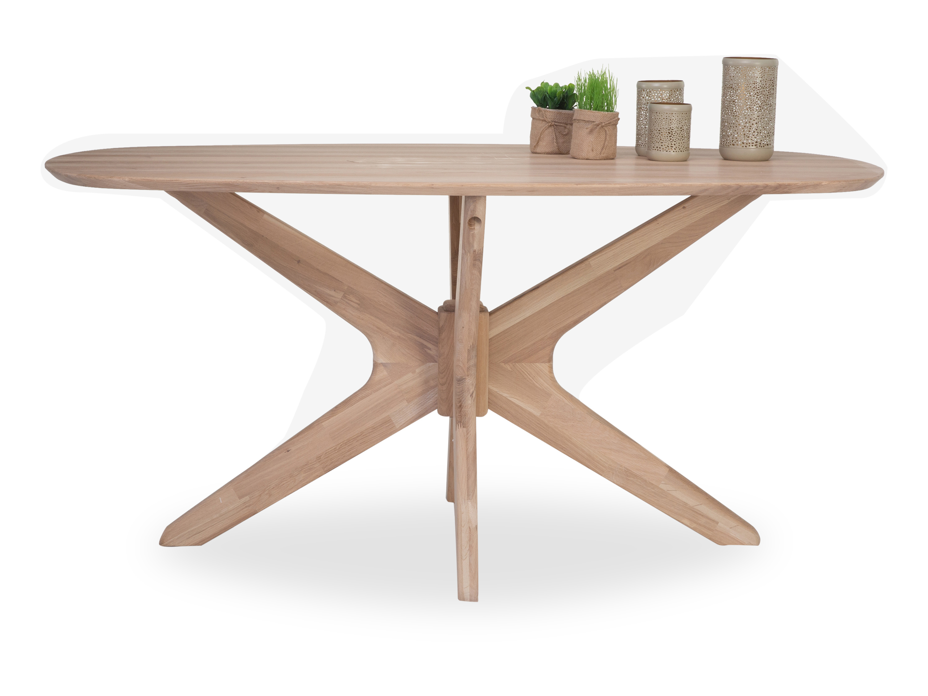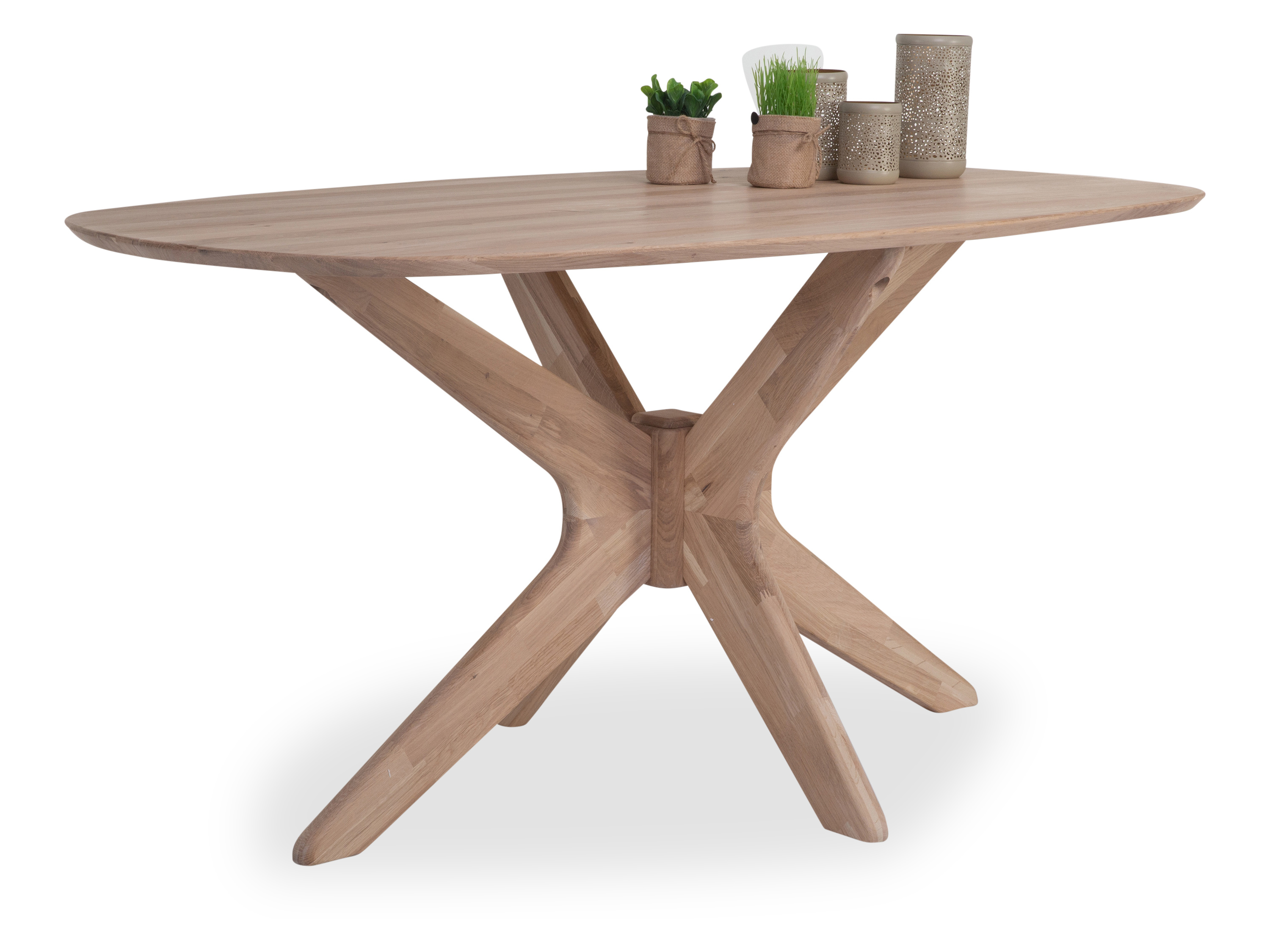 · Platte: Eiche Biancio massiv geölt, ovale Form mit schweizer Kante · Gestell: Holzgestell... mehr