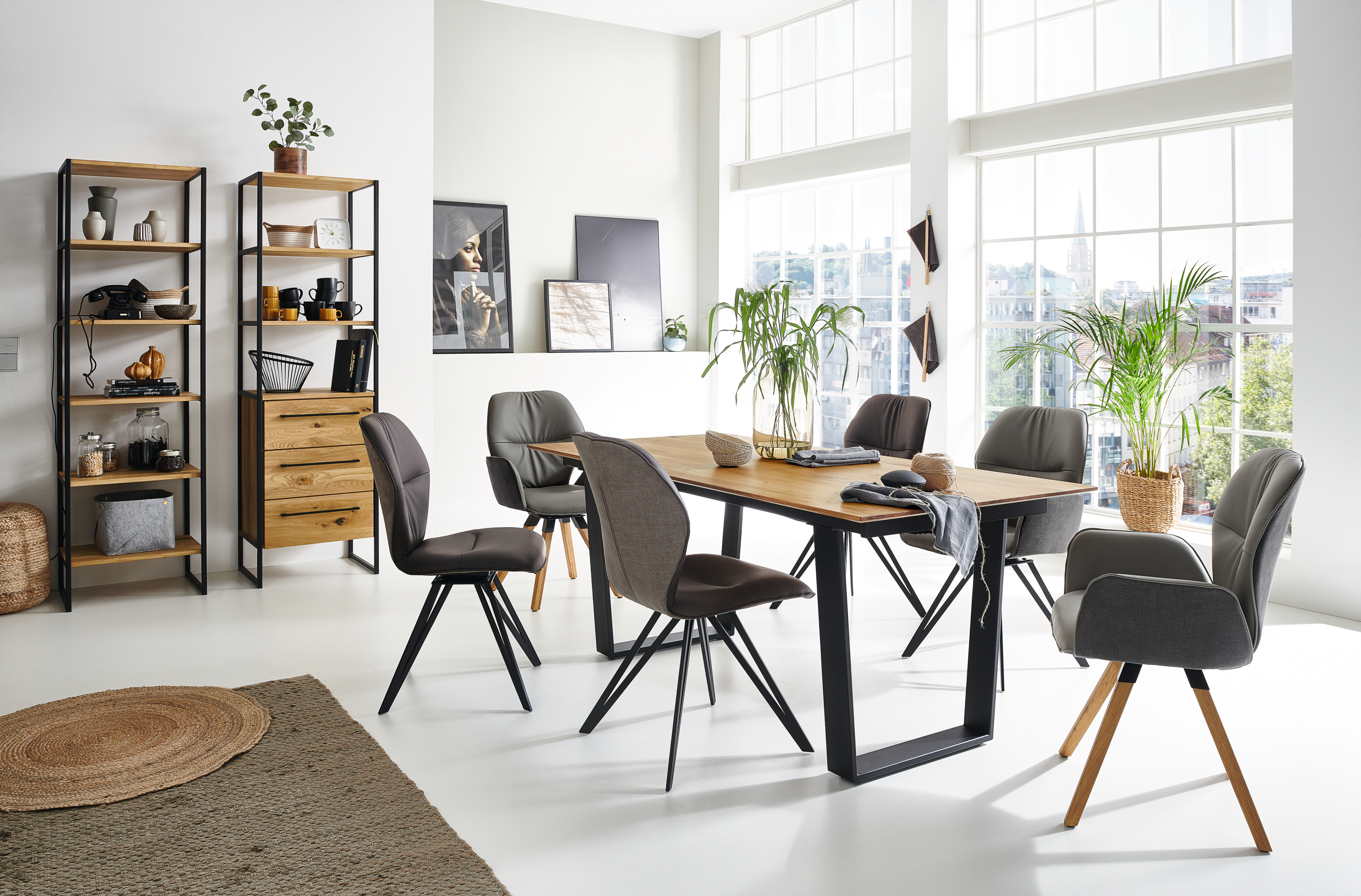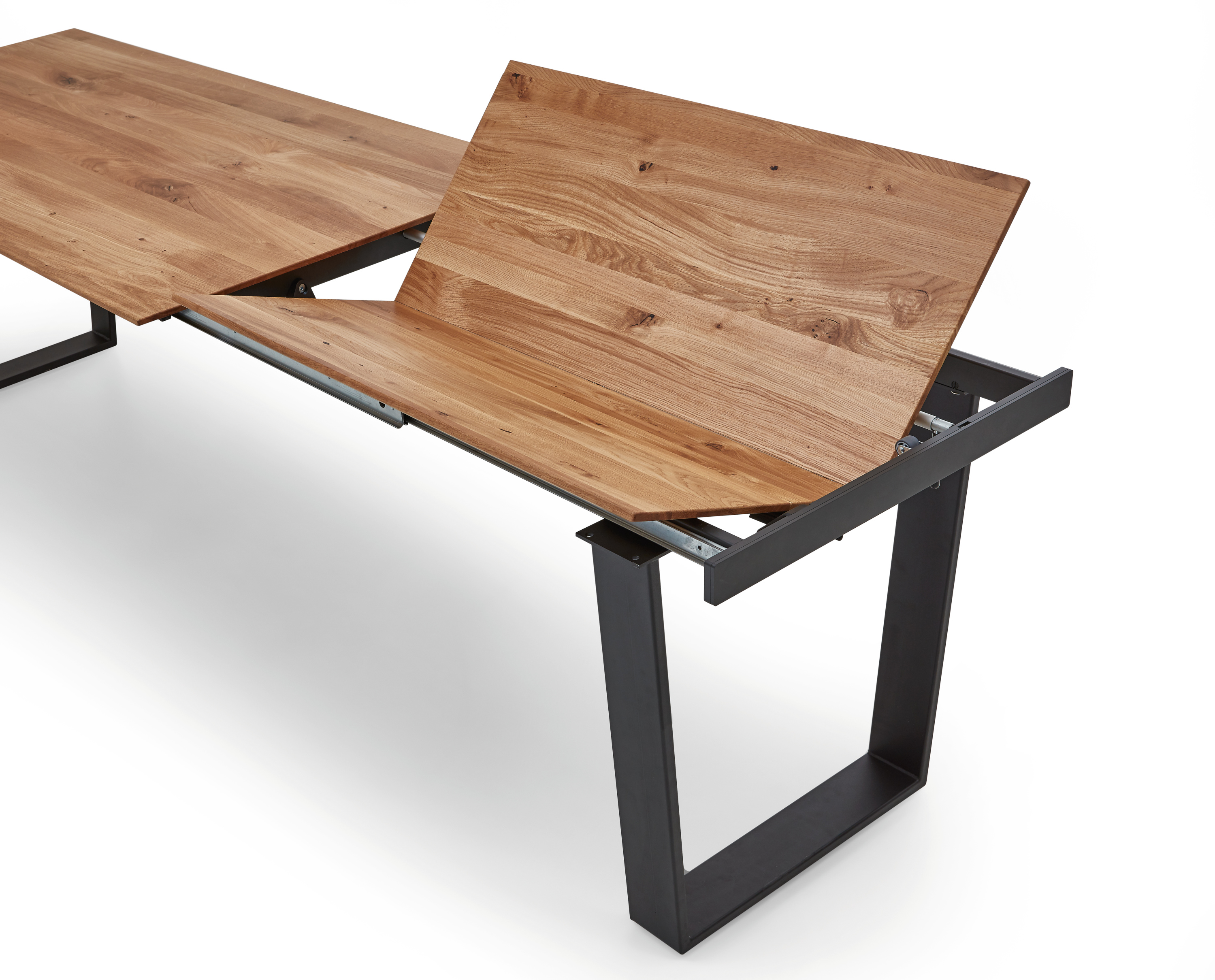 · Gestell: Eisen schwarz · Tischplatte: Charakter-Eiche massiv geölt · ausziehbar auf ca.... mehr