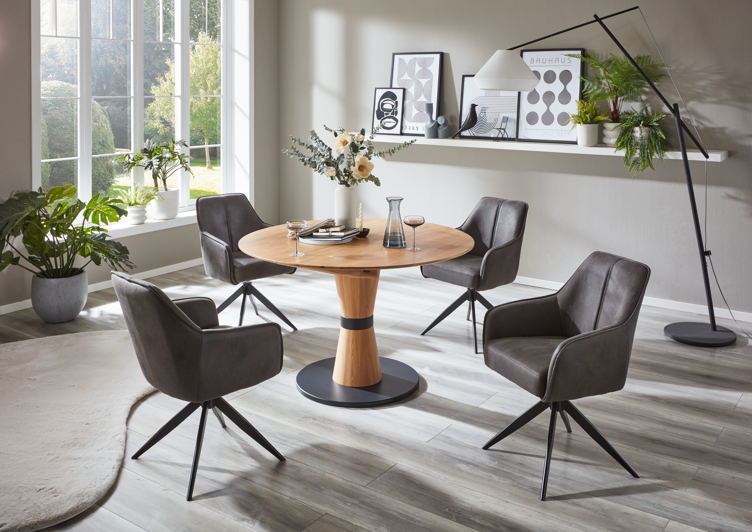 Am einladenden Esstisch RONDA nimmt man gerne Platz. Der Tisch ist aus Eiche angefertigt und wertet Ihr Interieur mit seiner gelungenen Gesamtoptik auf und wirkt ausgesprochen stilvoll. Er erweist sich als praktische wie auch ästhetische Bereicherung für Ihr Einrichtungskonzept. Dieser Tisch ist das optimale Möbelstück, um eine schöne gemeinsame Zeit mit Ihren Liebsten zu verbringen.