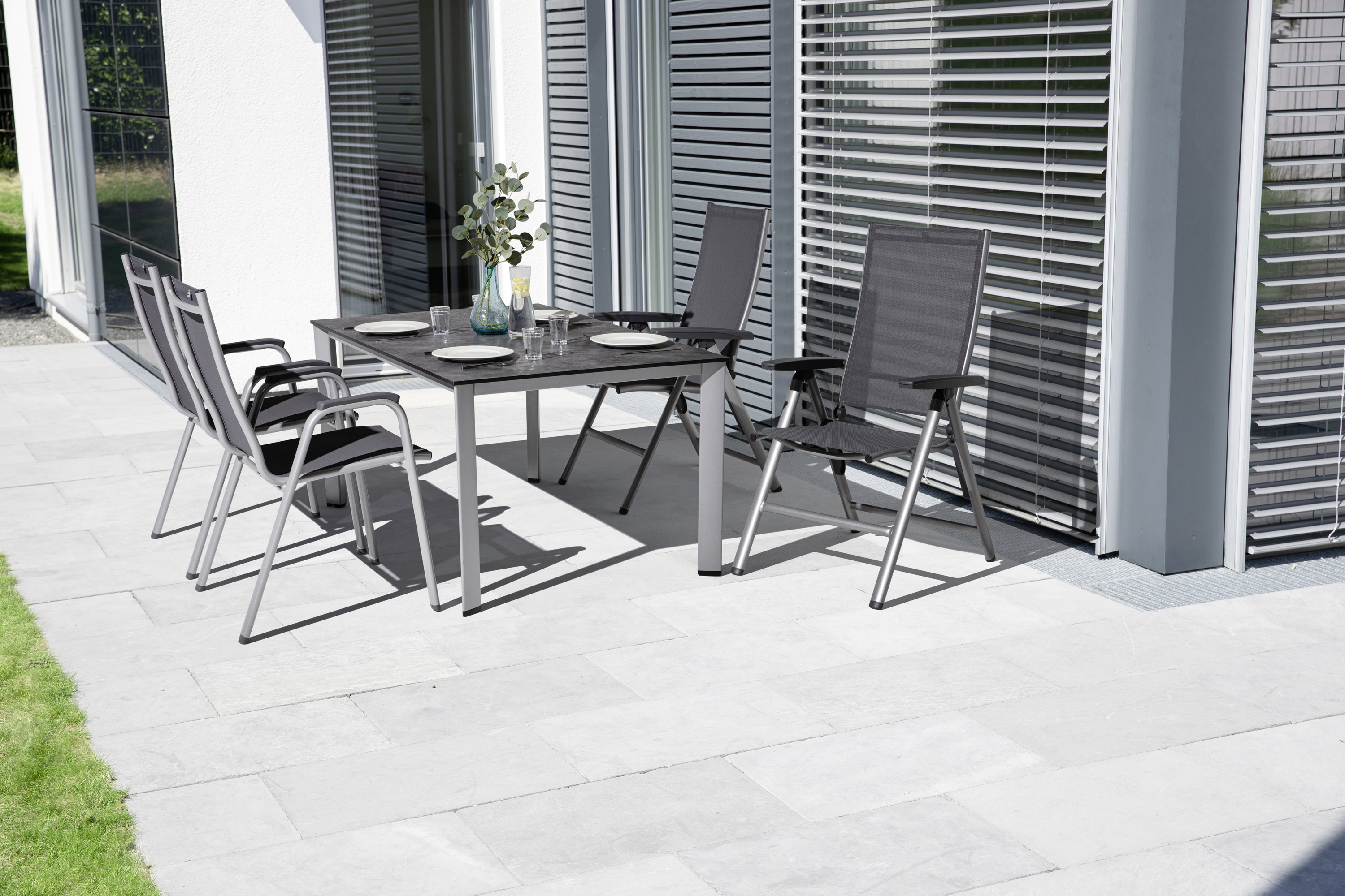 · Gestell Aluminium silber, Bezug Outdoorgewebe anthrazit meliert