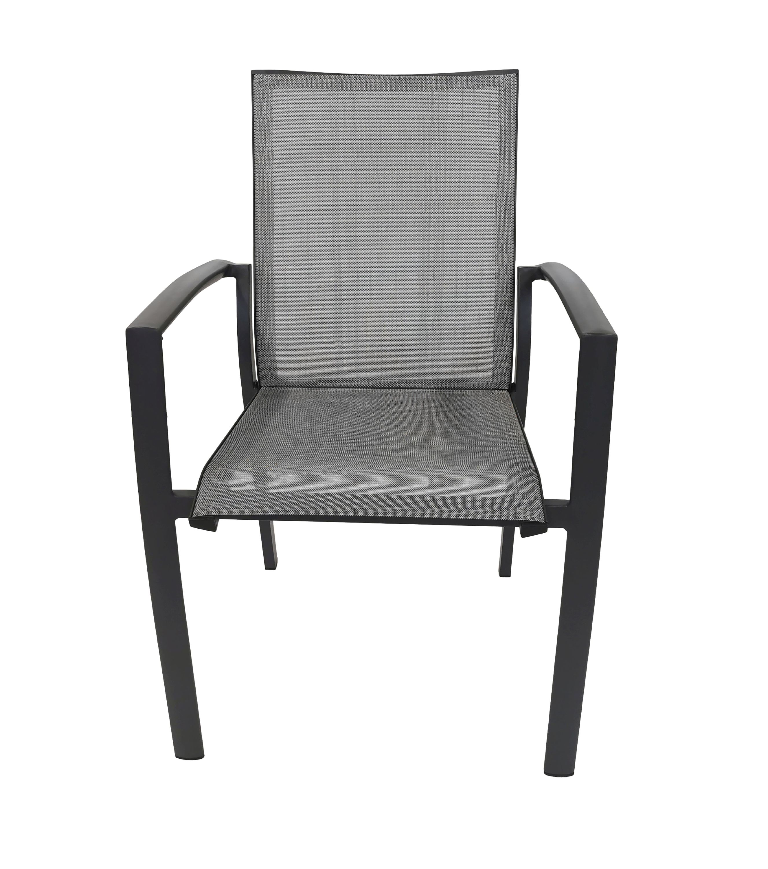 · Bezug: Sitz und Rückenlehne aus 1x1 vestärktem Sling in grau · Gestell: Aluminium dunkelgrau mehr