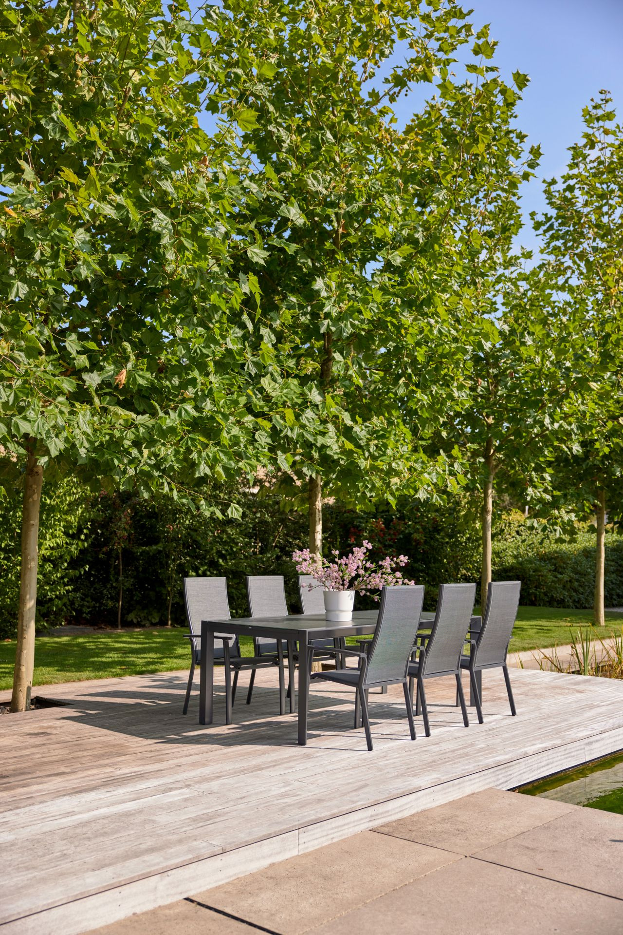 · Was den Stiges Dining Stuhl von anderen Textilene-Stühlen unterscheidet? Ganz klar: sein außergewöhnliches Design. Die Sitzfläche aus doppellagigem Textilene verleiht ihm nicht nur einen markanten Look, sondern sorgt zugleich für ein besonders angenehmes und komfortables Sitzgefühl. Dank seiner robusten Verarbeitung und der extra hohen Rückenlehne bietet der Stiges Dining Stuhl besten Halt und macht jedes Sitzen zu einem echten Genuss ? hier möchtest du gar nicht mehr aufstehen. In Kombination mit dem passenden Recliner der Serie entsteht ein harmonisches Gesamtbild, das deinen modernen Garten perfekt ergänzt.