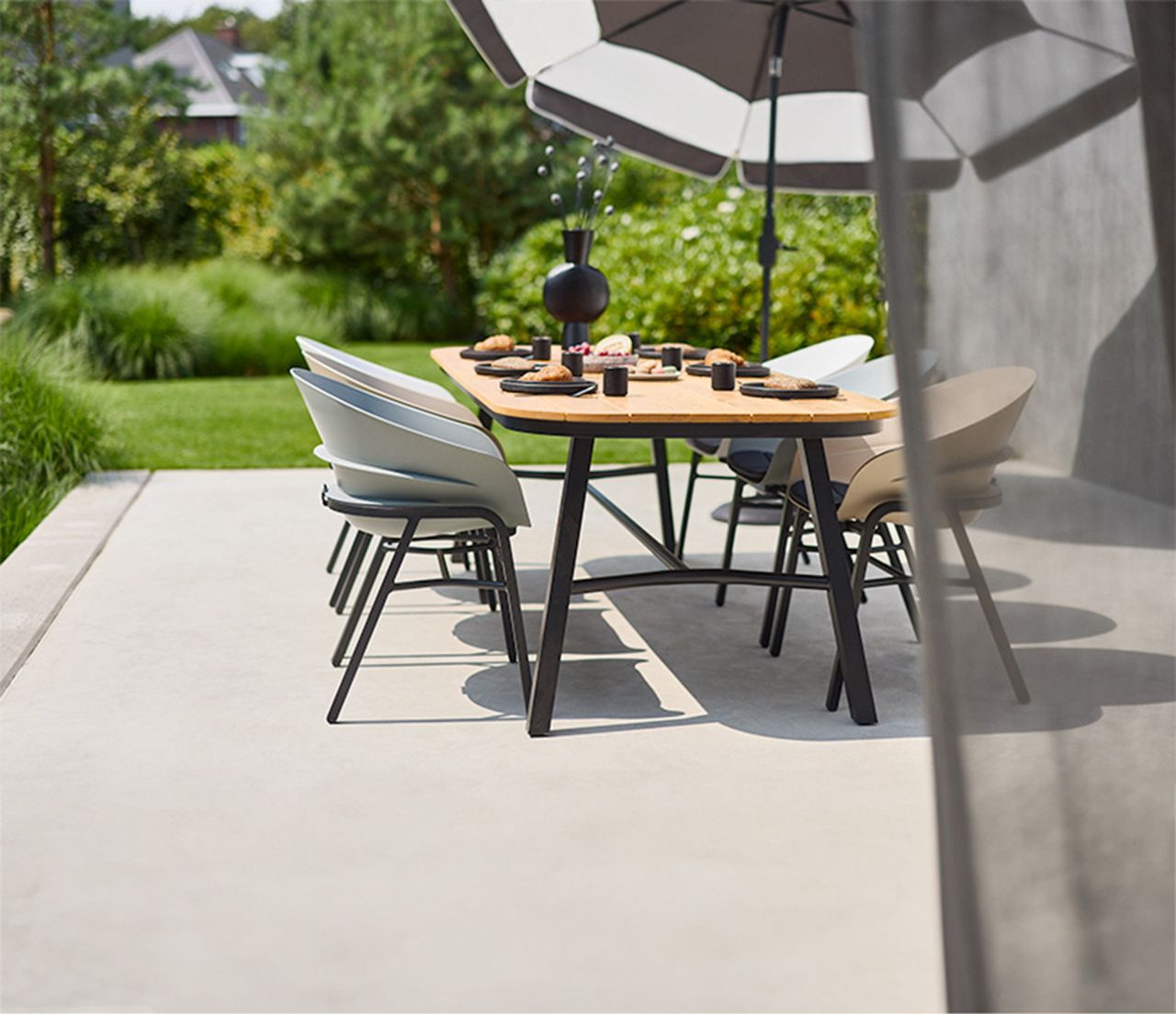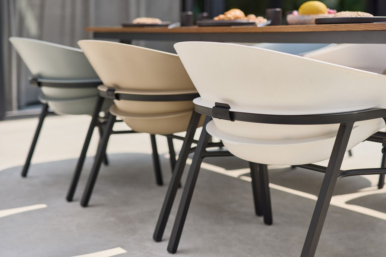 · Der Tubb Dining Sessel ist die perfekte Wahl für alle, die in ihrem Außenbereich flexibel bleiben möchten. Dank seiner multifunktionalen Eigenschaften lässt er sich mühelos an unterschiedliche Bedürfnisse anpassen: Mit einem einfachen Handgriff kannst du zwischen zwei Positionen wählen - einer aufrechten Essposition und einer entspannten Liegeposition. Damit ist er ideal für gemütliche Mahlzeiten oder entspannte Stunden im Freien. Das moderne Design mit schwarzem Untergestell und Sitzschale aus robustem Kunststoff verbindet Stil mit Funktionalität. Der Stuhl ist nicht nur besonders pflegeleicht, sondern auch nachhaltig, da er auf Langlebigkeit und Umweltfreundlichkeit ausgelegt ist. Das mitgelieferte Sitzkissen Havana Dark Grey Tubb sorgt für zusätzlichen Komfort. Entdecke die gesamte Tubb-Serie, bestehend aus dem Tubb Dining Sessel, Tubb Dining Tischen mit Teak- oder Keramikplatte und farblich passenden Sonnenschirmen.