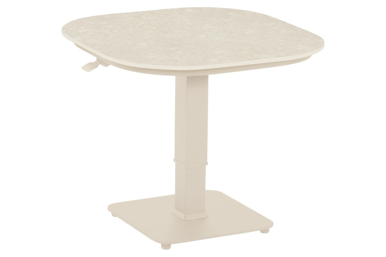 · Ein quadratischer Tisch mit vielen Funktionen und einem unverwechselbaren Design: unser neuer Tubb Bistro Lift Tisch. Perfekt für kleine Gärten oder Balkone, lässt er sich mit einem Handgriff vom gemütlichen Bistrotisch in einen praktischen Esstisch verwandeln. Die robuste Keramikplatte verleiht ihm nicht nur eine elegante Optik, sondern macht ihn auch wetterfest und pflegeleicht. Bei Verschmutzungen genügt ein einfaches Abwischen mit einem Reinigungstuch. Entdecke die gesamte Tubb-Serie, bestehend aus dem Tubb Dining Sessel, Tubb Dining Tischen mit Teak- oder Keramikplatte und farblich passenden Sonnenschirmen.