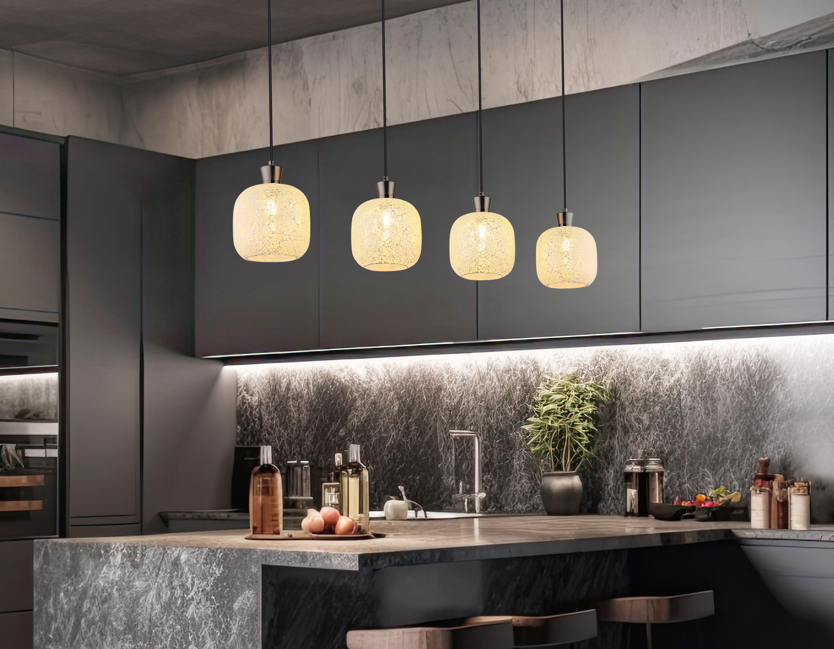 · schwarz-chrom matt · Metall · Mosaik klar · Kabel PVC schwarz · Höhe kürzbar Diese... mehr