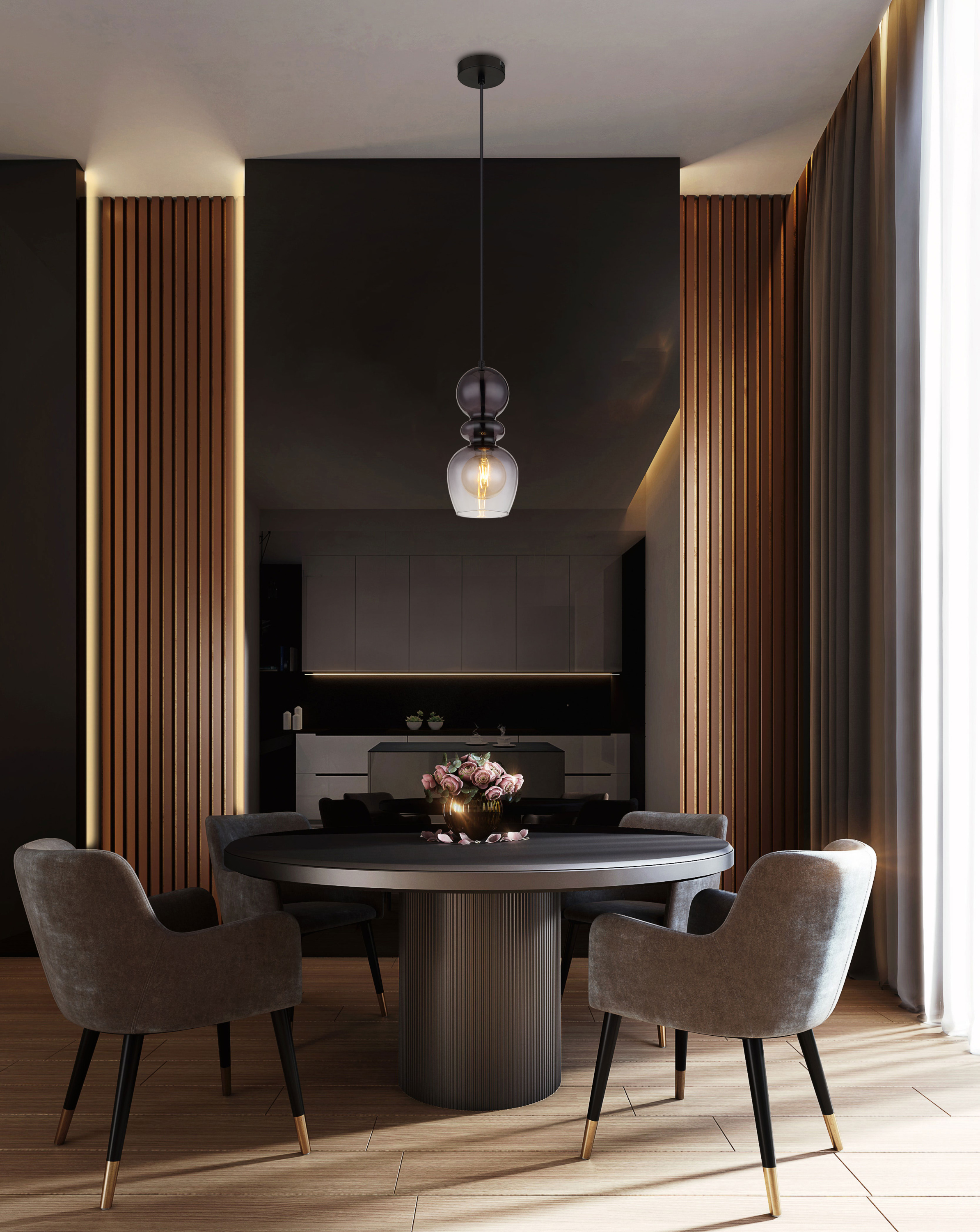 · schwarz matt · Metall · Glas rauchfarben · klar verlaufend · Kabel PVC schwarz · Höhe... mehr