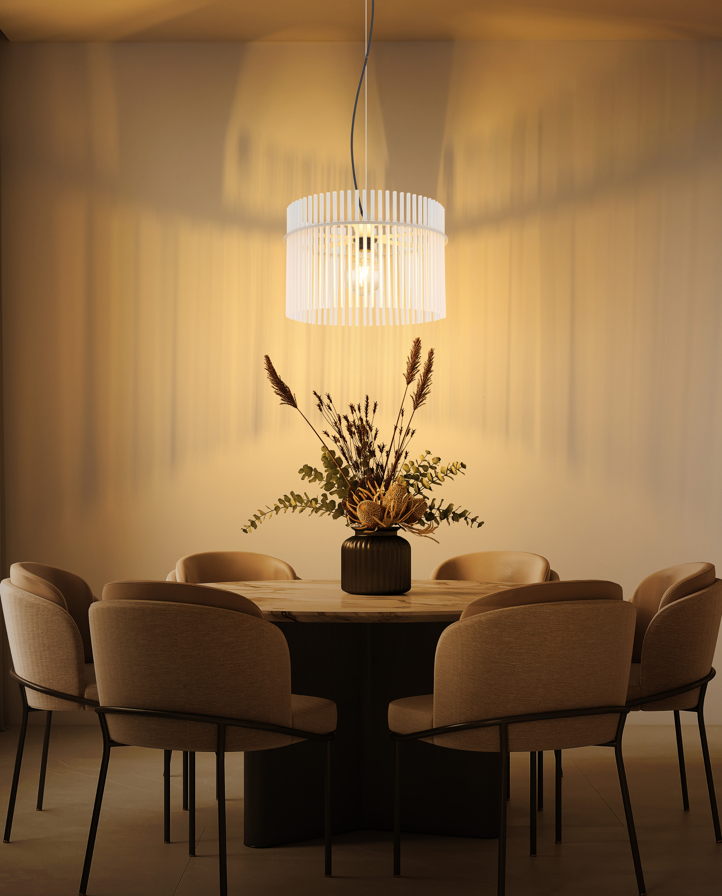 · sandfarben matt · Metall · Glasstäbe satiniert · Kabel PVC schwarz · Höhe kürzbar Diese... mehr