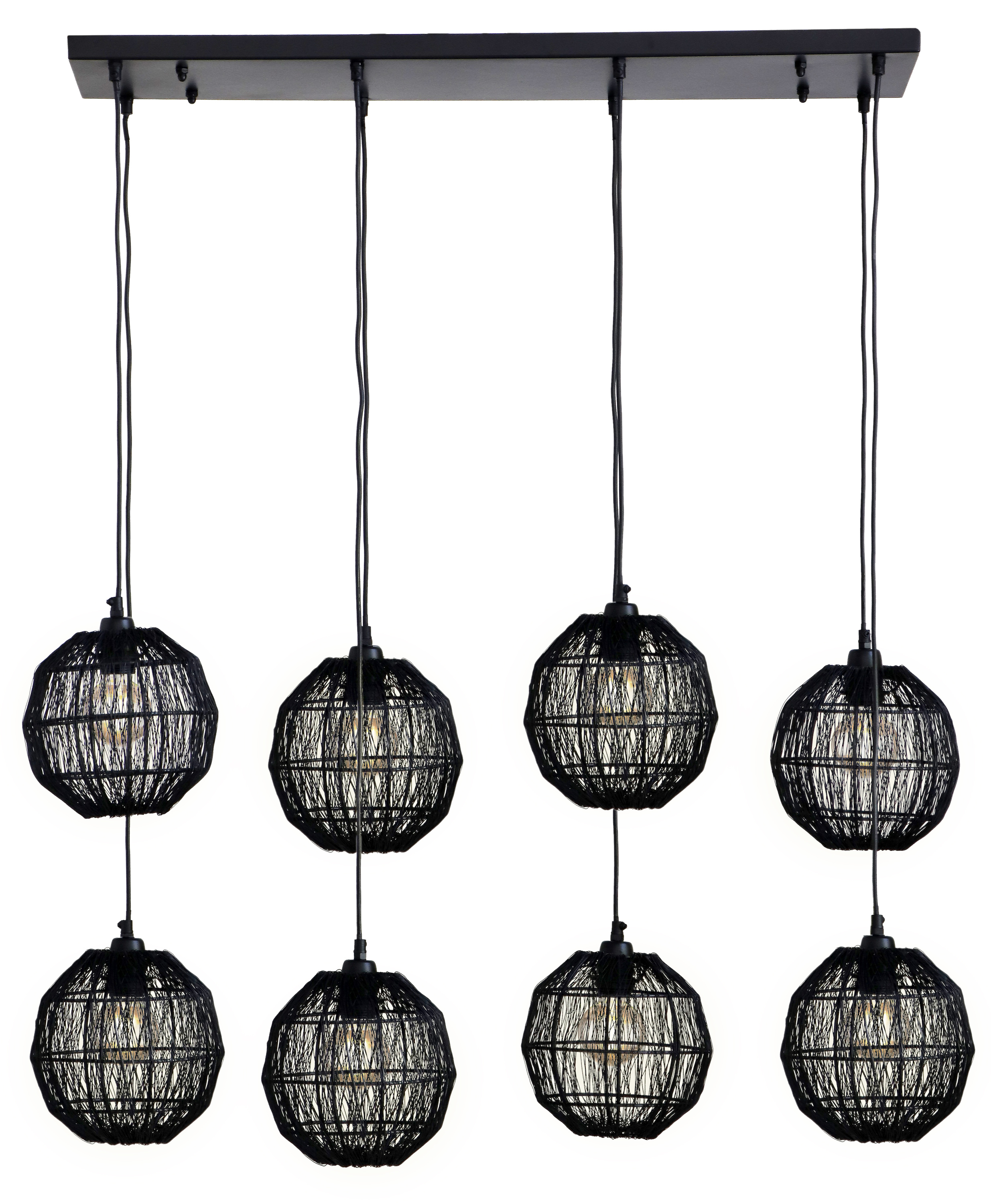 Setzen Sie mit dieser formschönen Hängeleuchte tolle Lichtakzente und verleihen Sie Ihrer Innenausstattung eine besondere Note. Holen Sie sich mit der Lampe die GLOBO-Lighting-Markenqualität nach Hause. Das hervorragende Design bietet zahlreiche Einsatz- und Kombinationsmöglichkeiten und lässt sich wirkungsvoll in Ihre Zimmer integrieren. Die tolle Lampe stellt eine schöne Beleuchtung sowie eine angenehme Atmosphäre her und ist eine Bereicherung für alle Wohnräume. Die Hängelampe verfügt über eine Höhe von 140 cm, misst in der Breite insgesamt 24 cm und weist eine Länge von 94 cm auf. Die Hängeleuchte aus Metall ist mit einer E27-Fassung ausgestattet. Durch ihre hervorragende Optik harmoniert sie mit jedem Einrichtungsstil und schafft dadurch ein angenehmes Wohngefühl. Auch ausgeschaltet kann die Hängeleuchte einen dekorativen Zweck erfüllen.