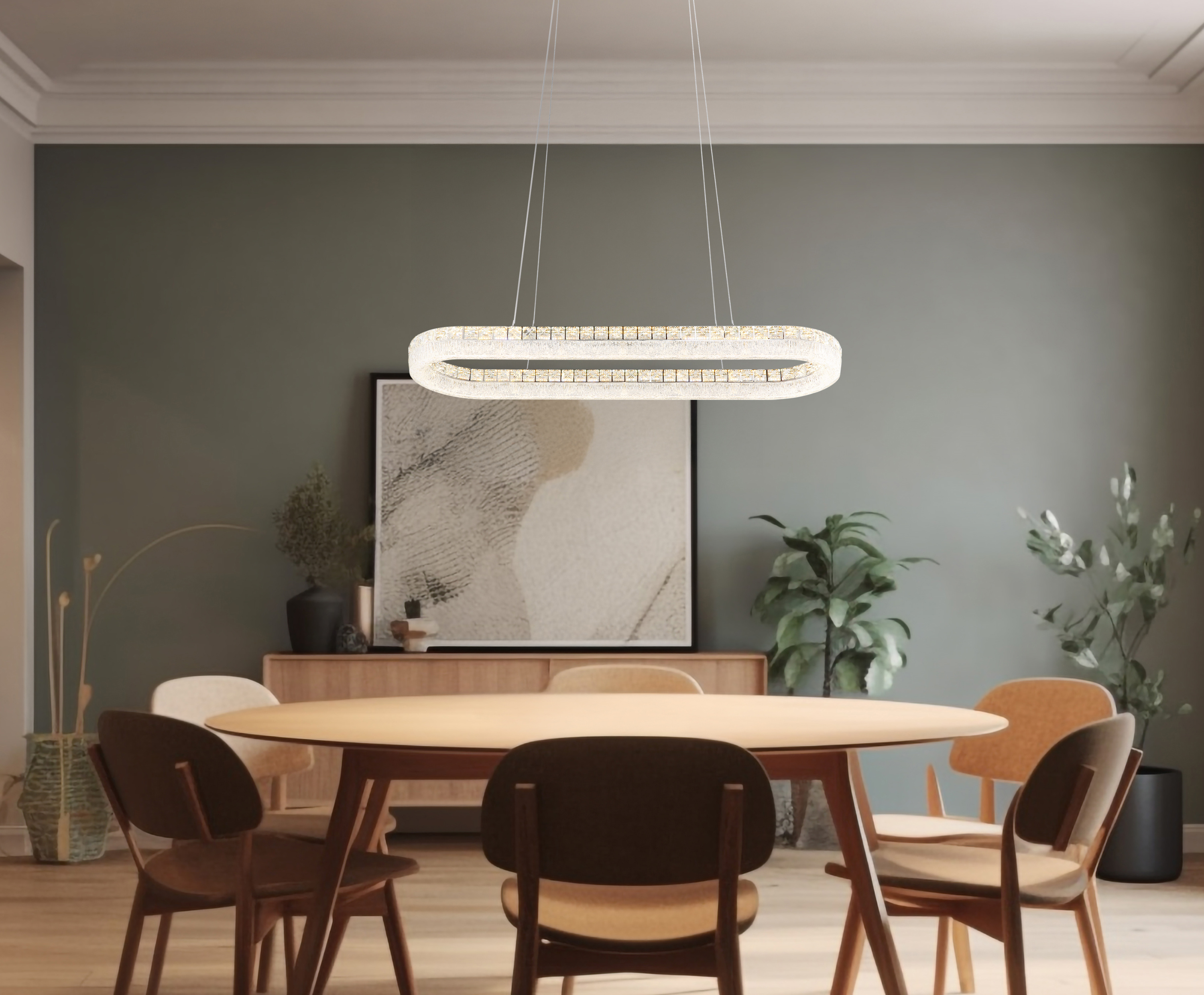 · verchromt · Metall · Acryl klar · Glaskristalle klar · Kabel PVC transparent · dimmbar ·... mehr