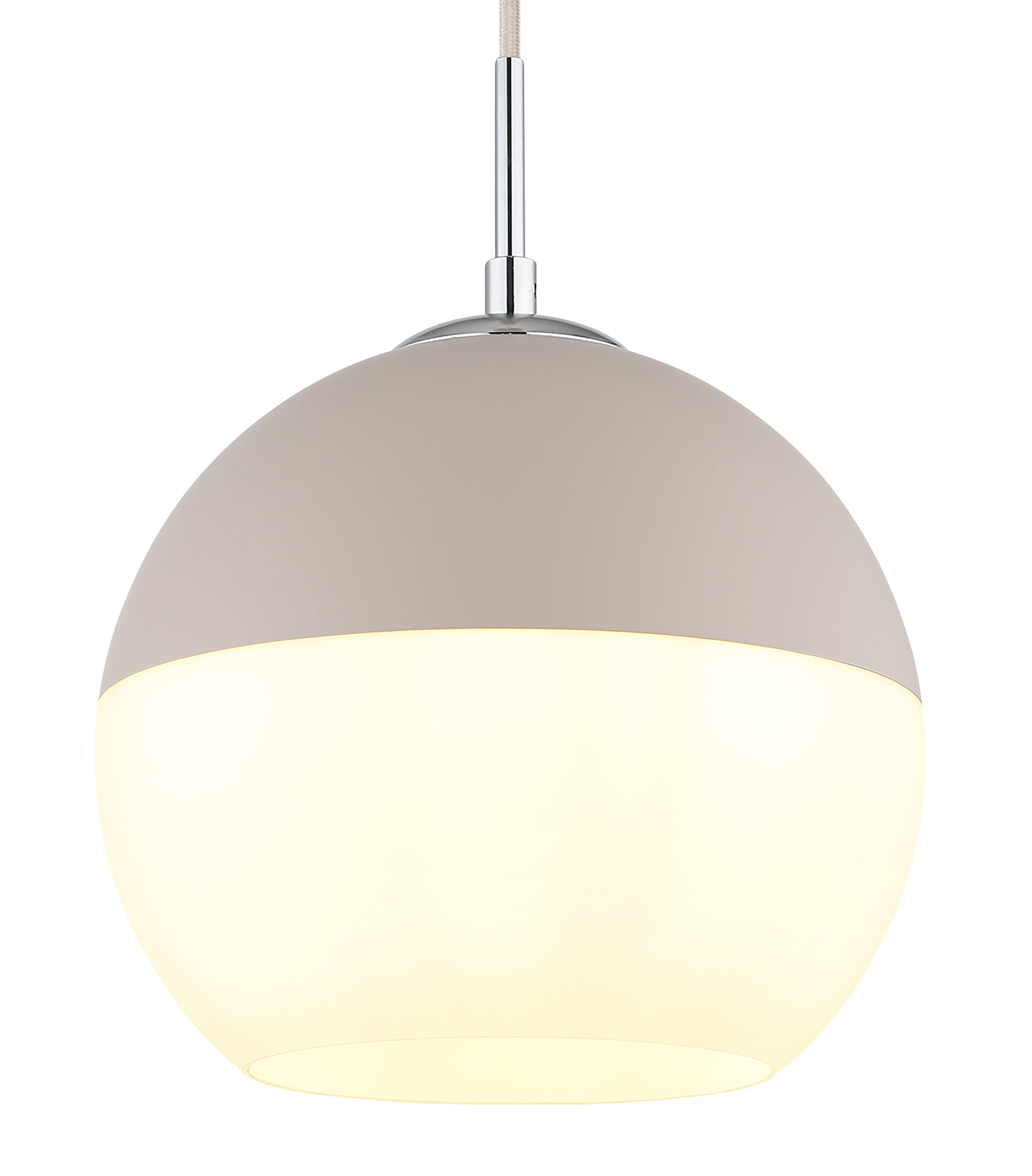 · weiß matt · Metall · Glaskugel sandfarben matt · opal · Kabel Textil beige · Höhe kürzbar... mehr