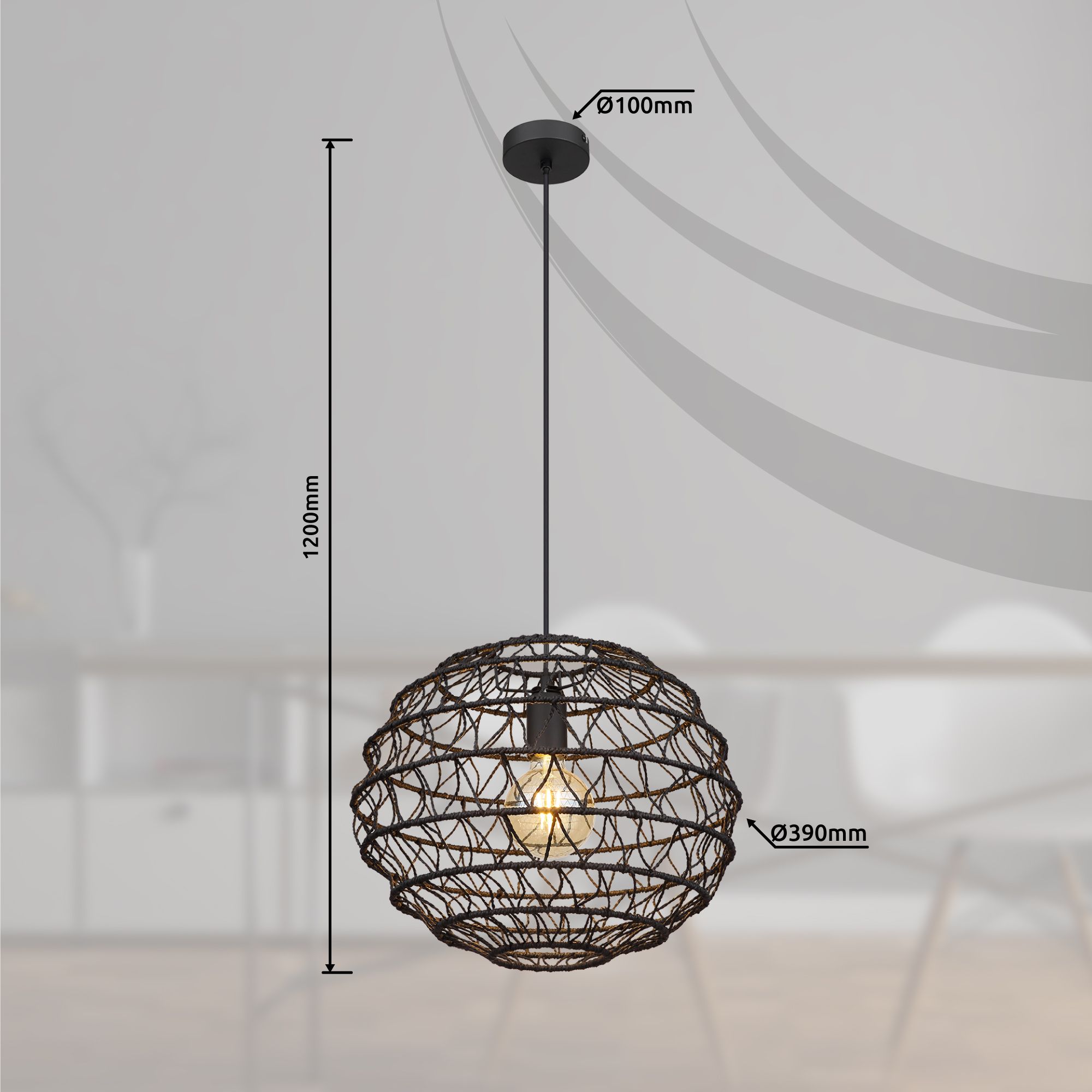 · Diese formschöne Hängeleuchte überzeugt durch tolles Design und wird zum Mittelpunkt jeder Ihrer Räume. Aus einer runden Deckenbefestigung verläuft ein 1,2 m langes schwarzes Kabel zu einer E27 Fassung welche von einem zusammenfaltbaren Schirm (Ø 39 cm) aus Papier ummantelt wird. Die E27 Fassung überlässt Ihnen die Möglichkeit, bis zu einer maximalen Leistung von 15 Watt, selbst über Lichtfarbe und Helligkeit zu bestimmen. Aufgrund von Langlebigkeit und Stromersparnis empfehlen wir LED Leuchtmittel.