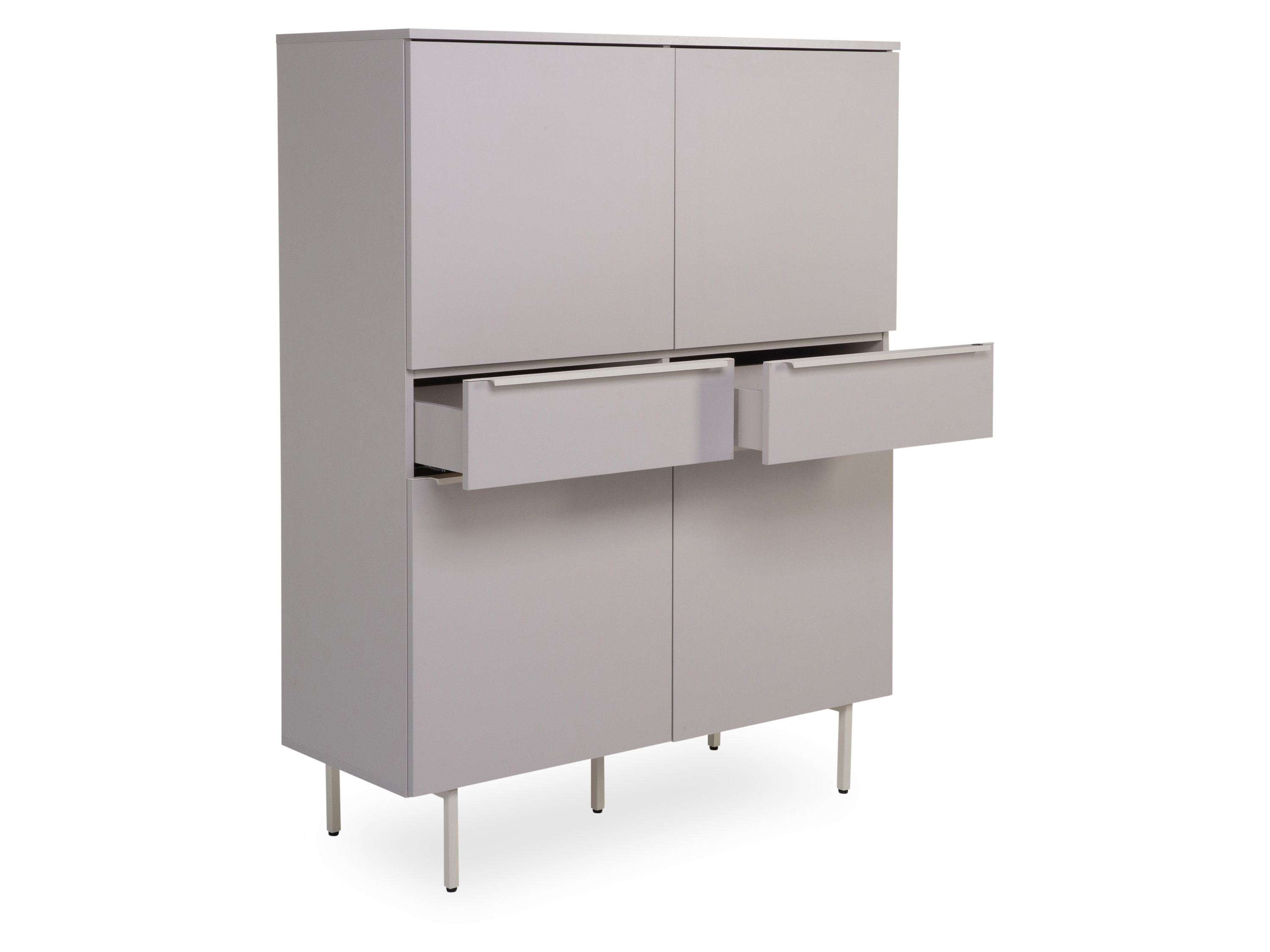 · mit vier Türen und zwei Schubladen