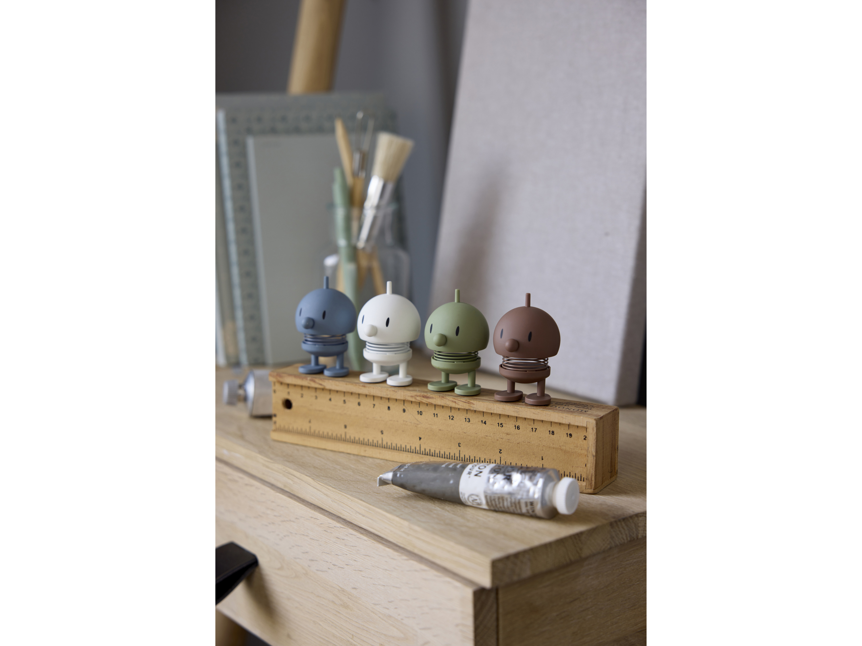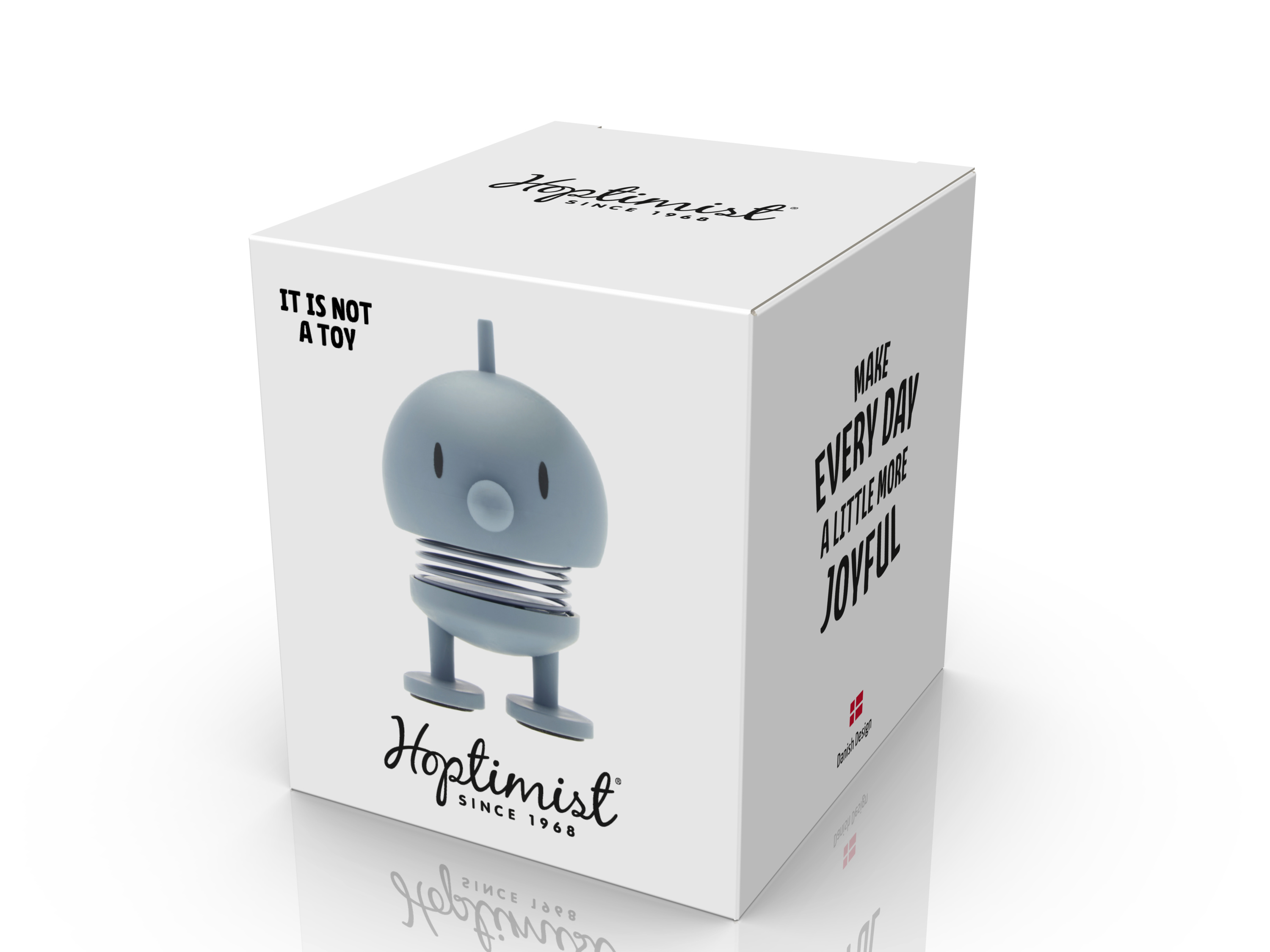 · Mit einem starken Glauben an die Kraft des Lächelns schuf Gustav Ehrenreich Ende der 1960er Jahre seine fröhliche Hoptimisten-Bewegung. Das Ziel war es, eine Figur zu schaffen, die eine ewige Erinnerung daran bilden sollte, positiv und optimistisch zu bleiben. Denn obwohl die 60er Jahre oft als The Happy 60ies bezeichnet werden, war das Jahrzehnt von Unruhen geprägt. Daher war Ehrenreichs Design ein gern gesehener Freudenspender in einer in einer ansonsten eher turbulenten Zeit. Bimble und Bumble repräsentieren die allerersten Hoptimisten aus der Hand des Designers: Ein für die Schule gekleidetes Mädchen mit lächelnden Augen und ein aufmerksamer Junge mit einem Splint auf dem Kopf. Die fröhlichen Hoptimisten sind heute ein Teil der dänischen Designgeschichte und sorgen weltweit für Freude. Die Figuren sind in vier verschiedenen Größen und in einer breiten Farbpalette erhältlich, die jede Menge Energie, gute Laune und Freud verbreiten.Es gibt garantiert einen Hoptimisten für jeden Anlass und für jede Person.