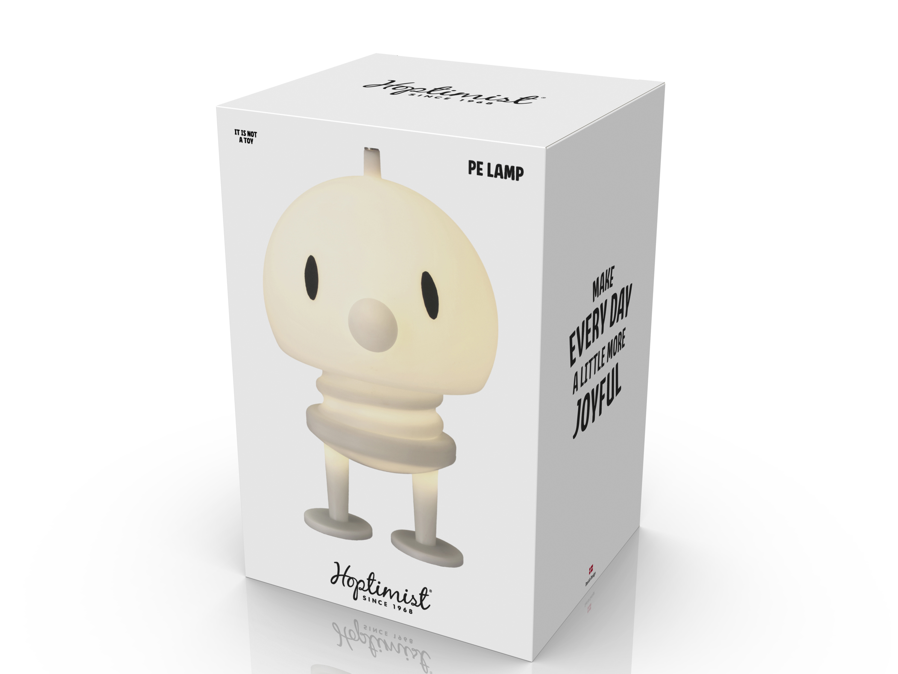 · Mit einem starken Glauben an die Kraft des Lächelns schuf Gustav Ehrenreich Ende der 1960er Jahre seine fröhliche Hoptimisten-Bewegung. Das Ziel war es, eine Figur zu schaffen, die eine ewige Erinnerung daran bilden sollte, positiv und optimistisch zu bleiben. Denn obwohl die 60er Jahre oft als The Happy 60ies bezeichnet werden, war das Jahrzehnt von Unruhen geprägt. Daher war Ehrenreichs Design ein gern gesehener Freudenspender in einer in einer ansonsten eher turbulenten Zeit. Bimble und Bumble repräsentieren die allerersten Hoptimisten aus der Hand des Designers: Ein für die Schule gekleidetes Mädchen mit lächelnden Augen und ein aufmerksamer Junge mit einem Splint auf dem Kopf. Die fröhlichen Hoptimisten sind heute ein Teil der dänischen Designgeschichte und sorgen weltweit für Freude. Die Figuren sind in vier verschiedenen Größen und in einer breiten Farbpalette erhältlich, die jede Menge Energie, gute Laune und Freud verbreiten.Es gibt garantiert einen Hoptimisten für jeden Anlass und für jede Person.