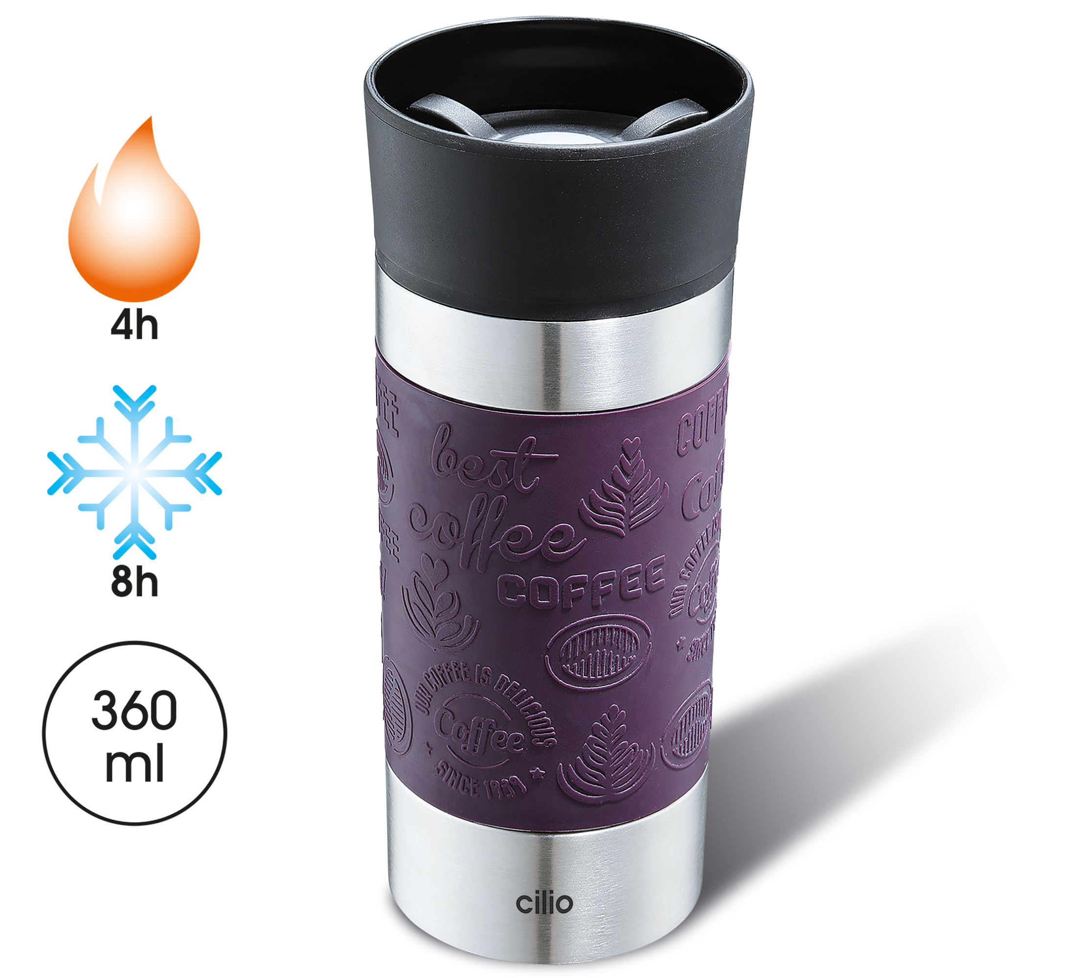 Isoliertrinkbecher cilio VIAGGIO in lila aus Edelstahl