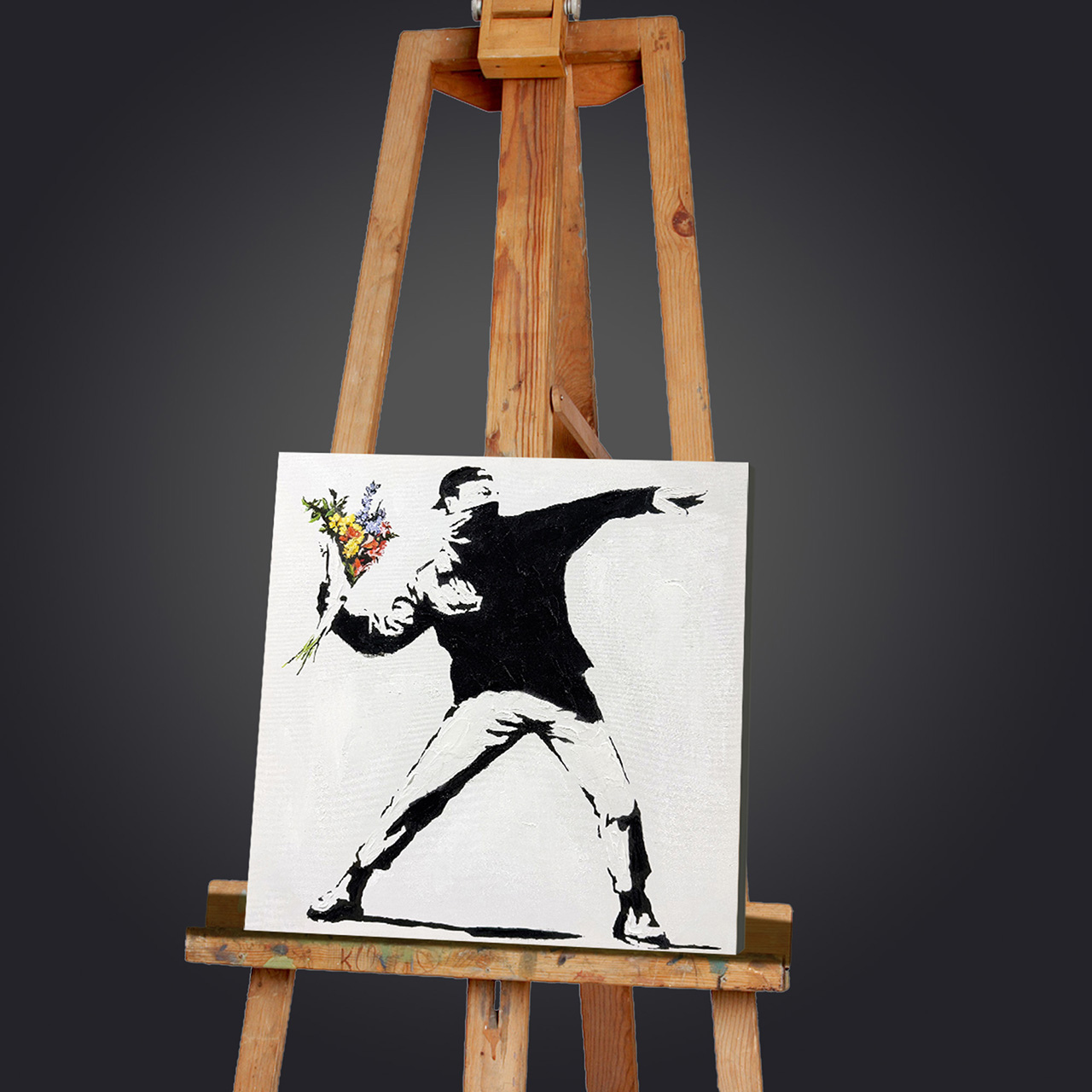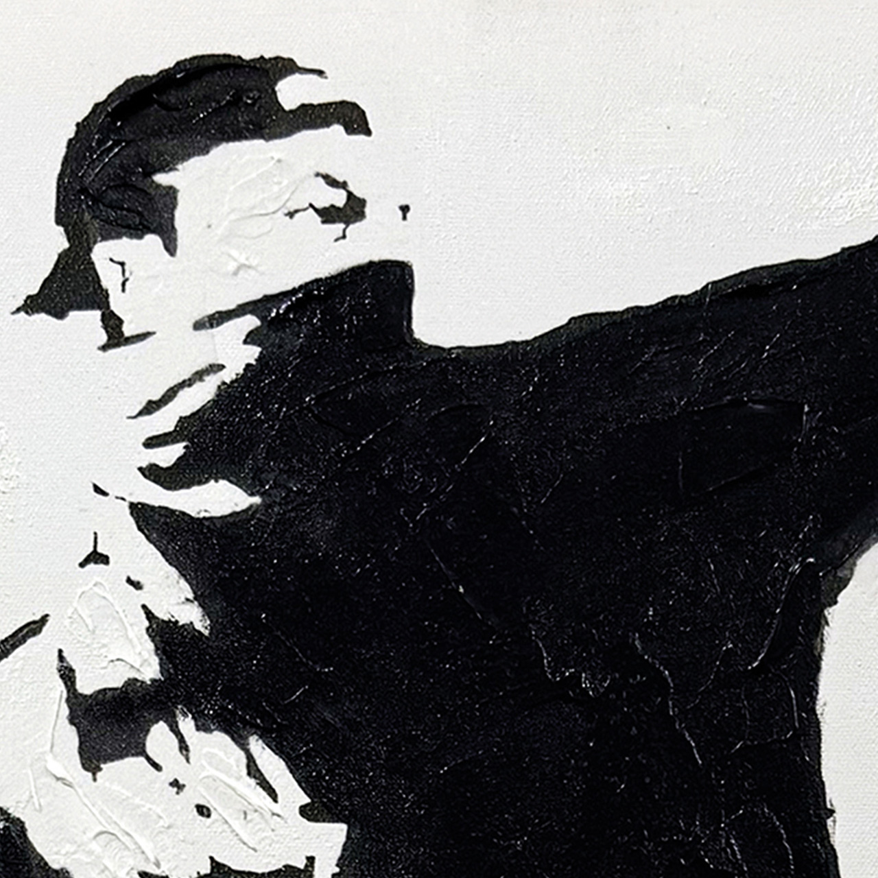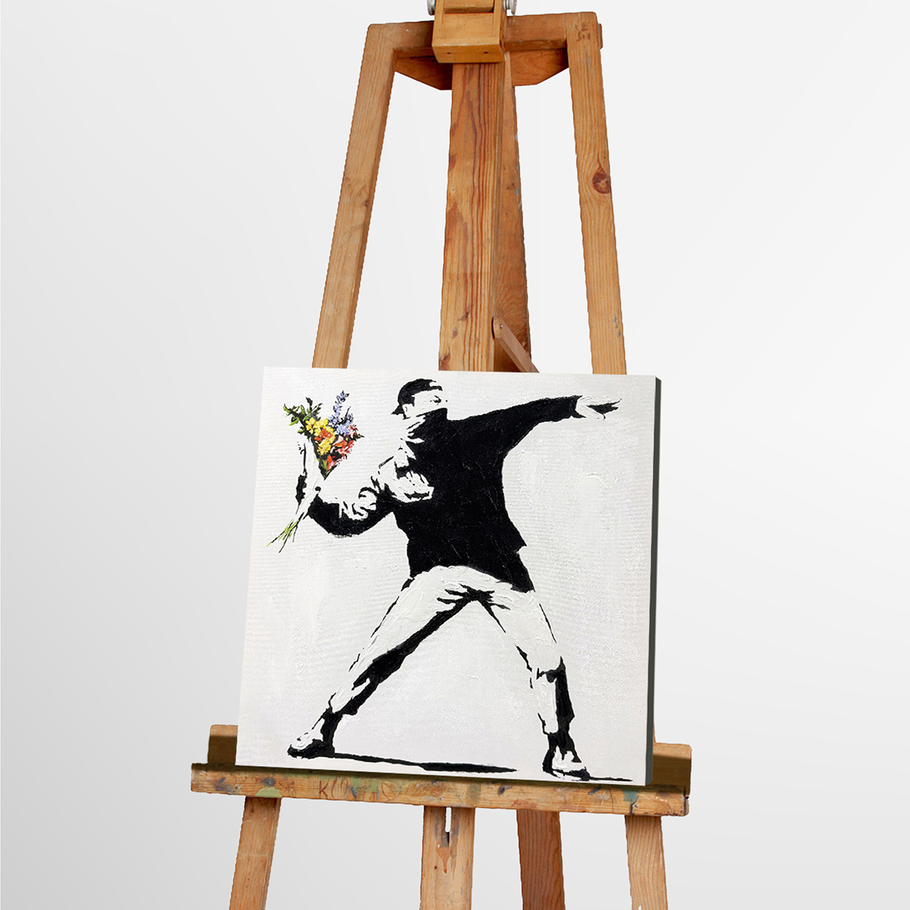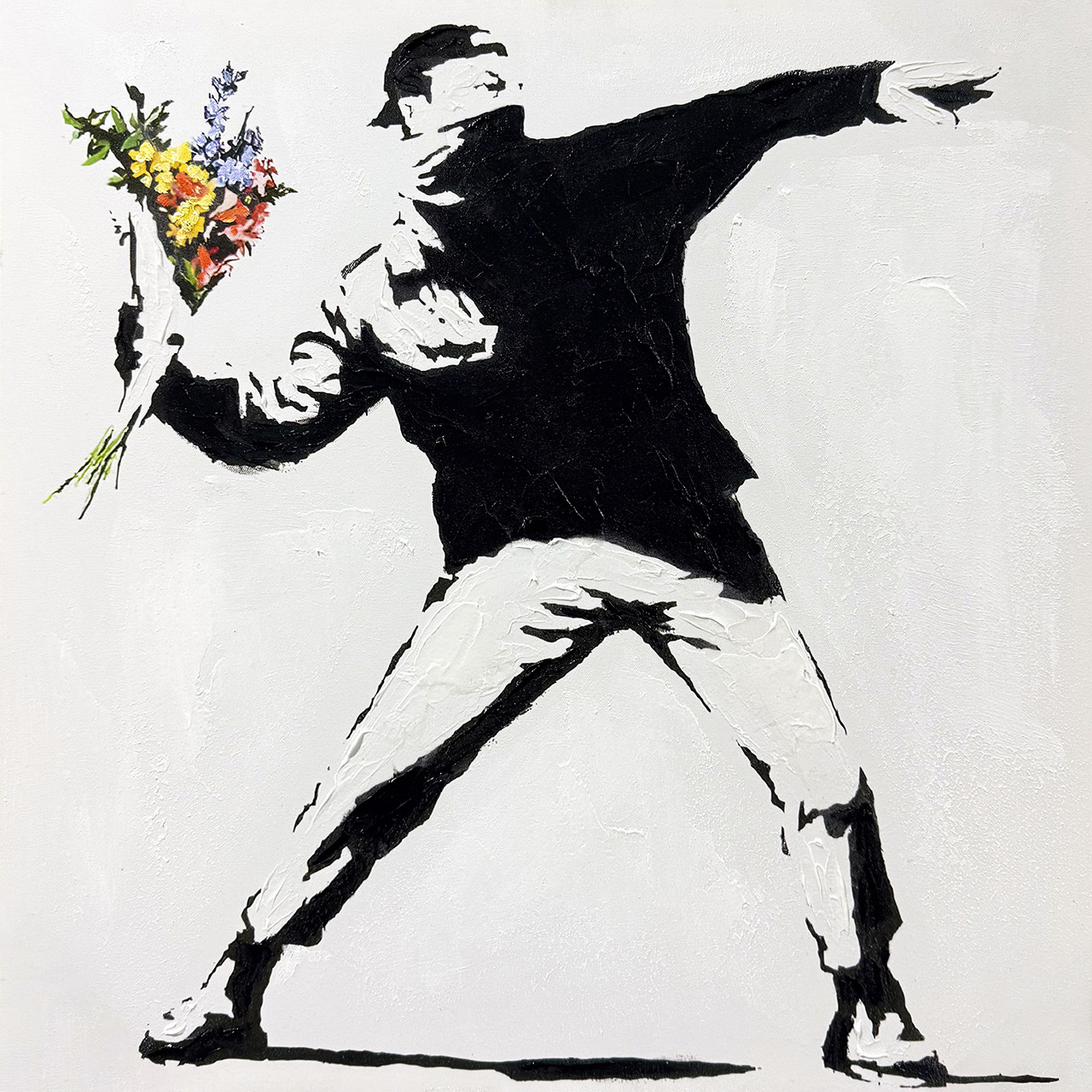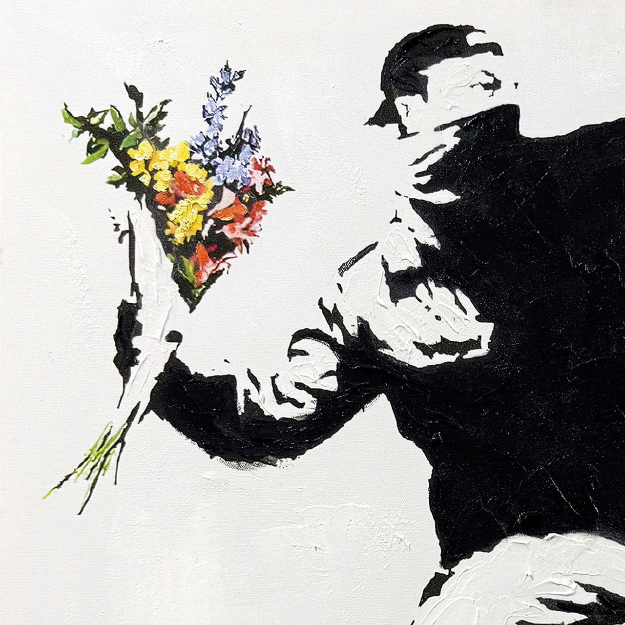 · Kunst mit Haltung. Die ikonische Bewegung, der gezielte Wurf - doch statt Gewalt fliegen Blumen. Ein Statement für Mut, Veränderung und Menschlichkeit.
