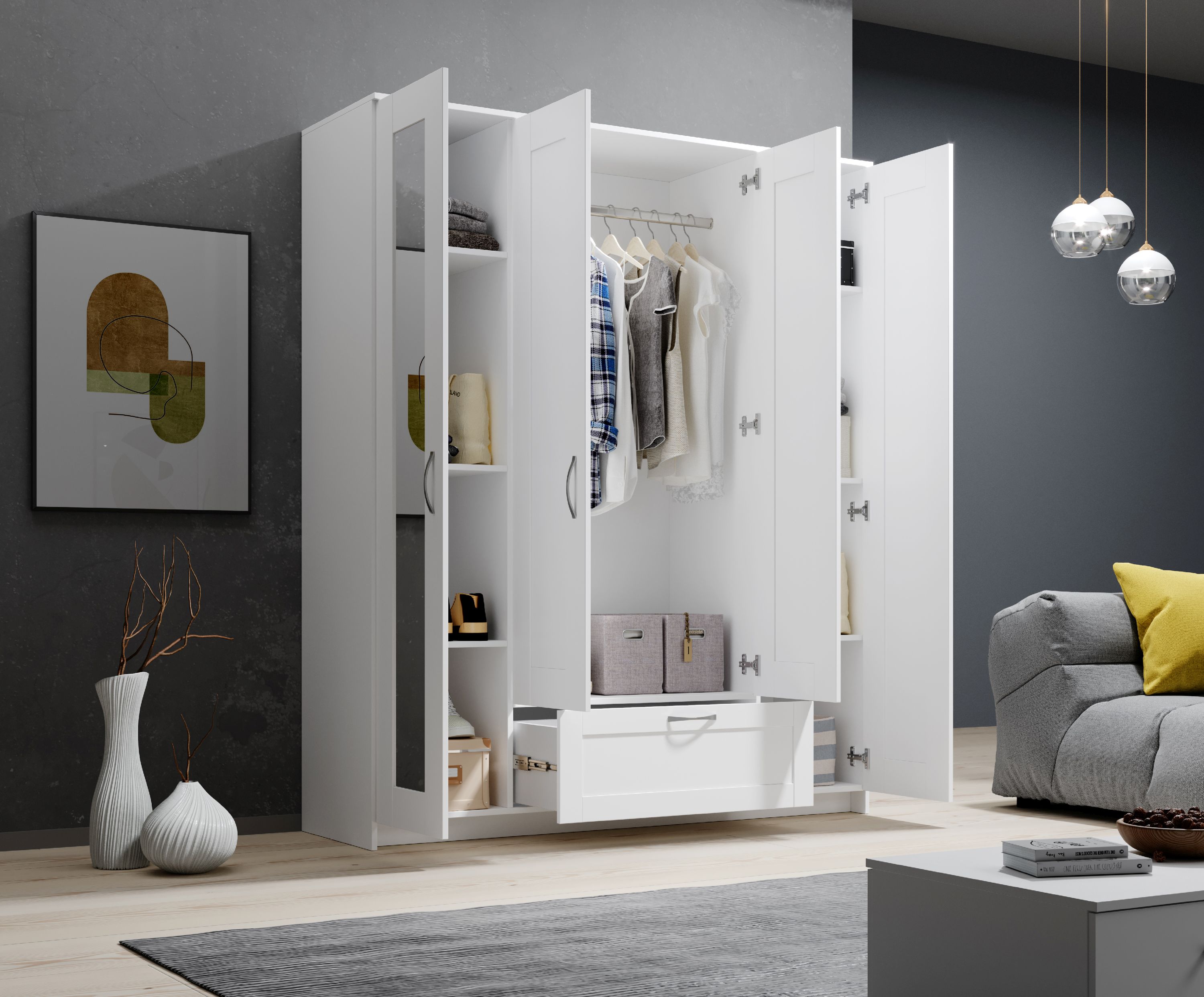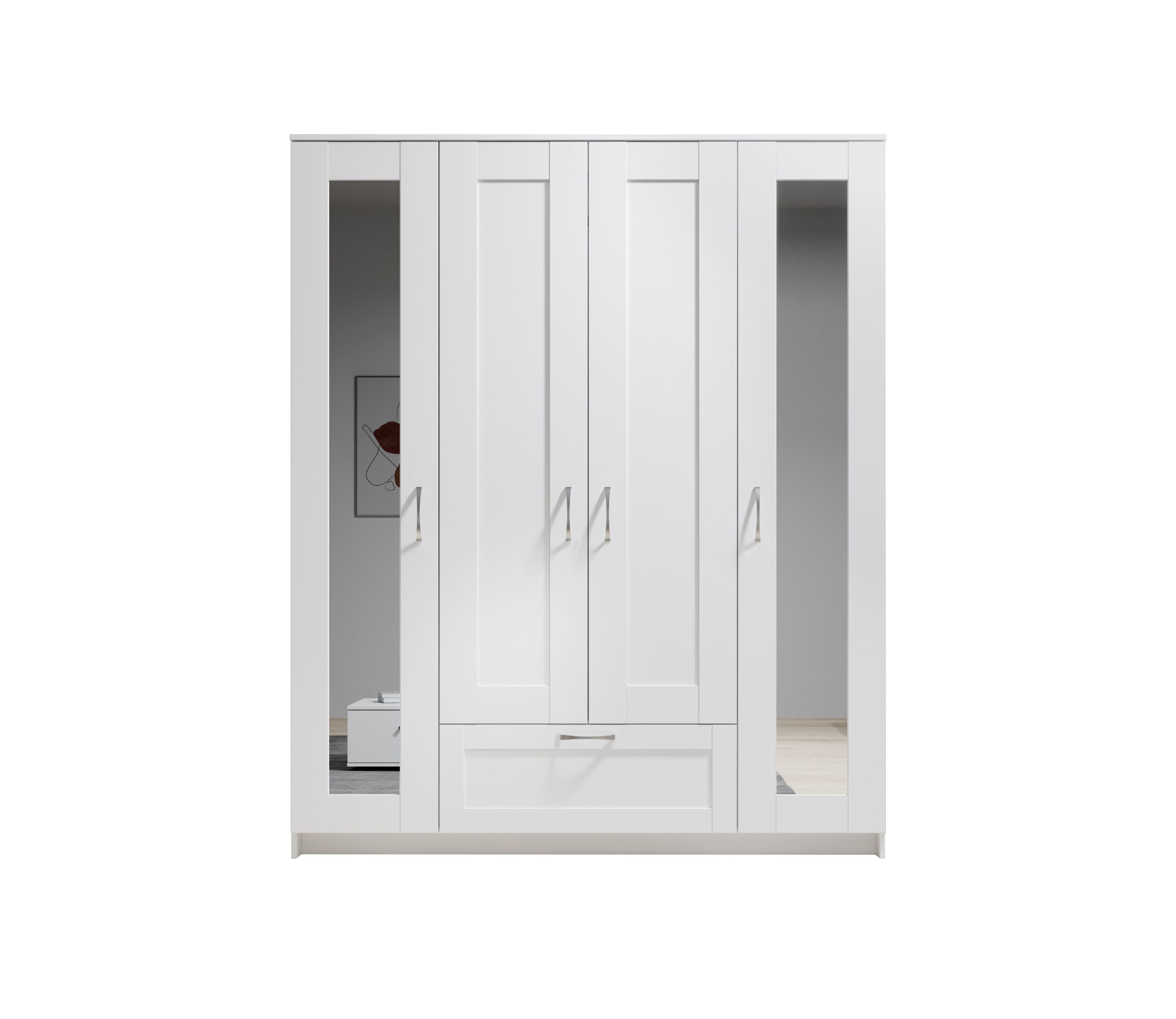 · 4-türig · Korpus: Dekor weiß · Front: Dekor weiß mit Spiegel · Griffe: Metall alu · mit... mehr