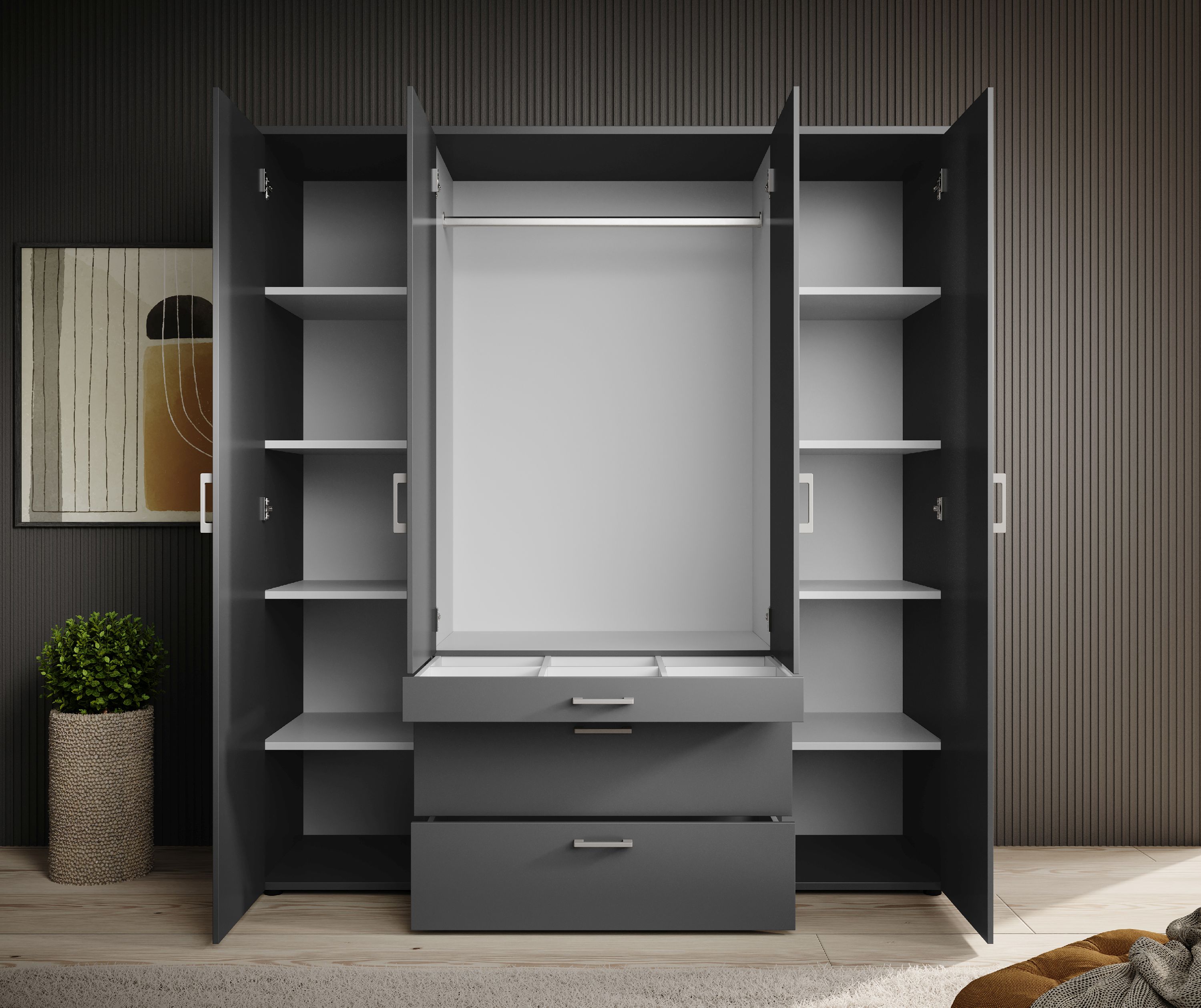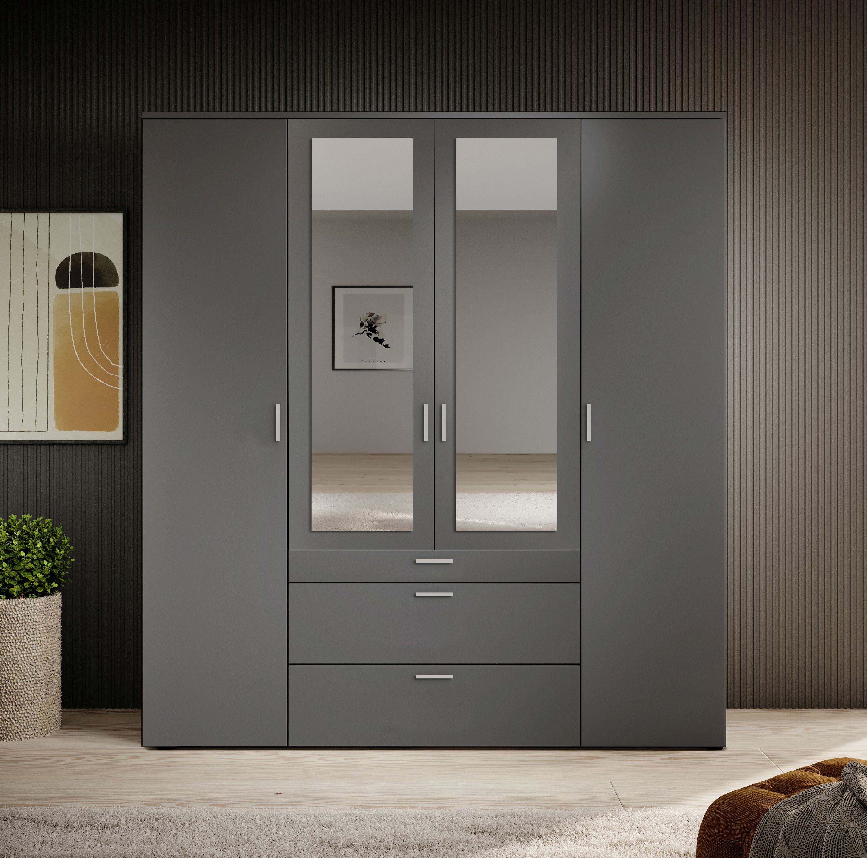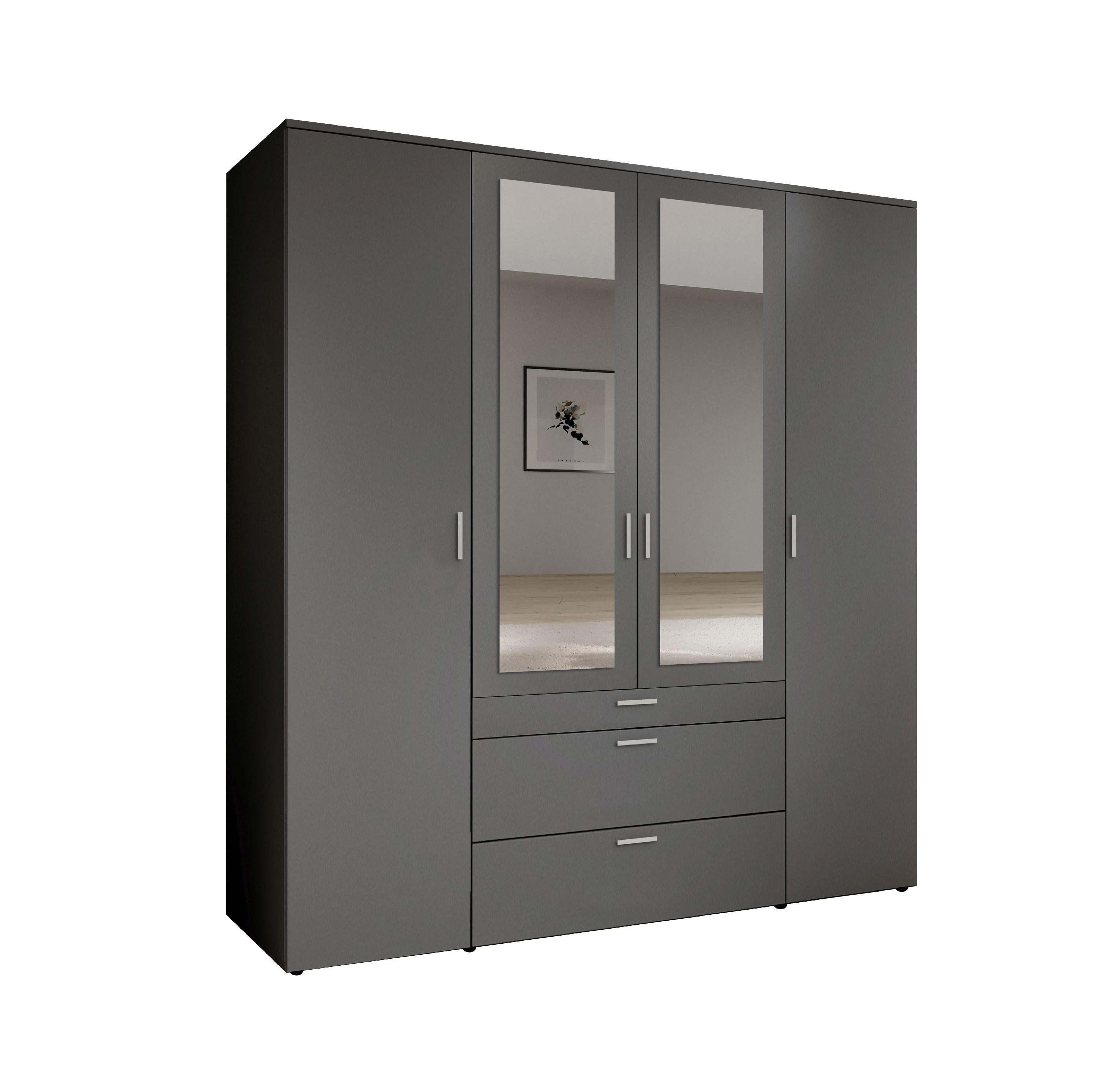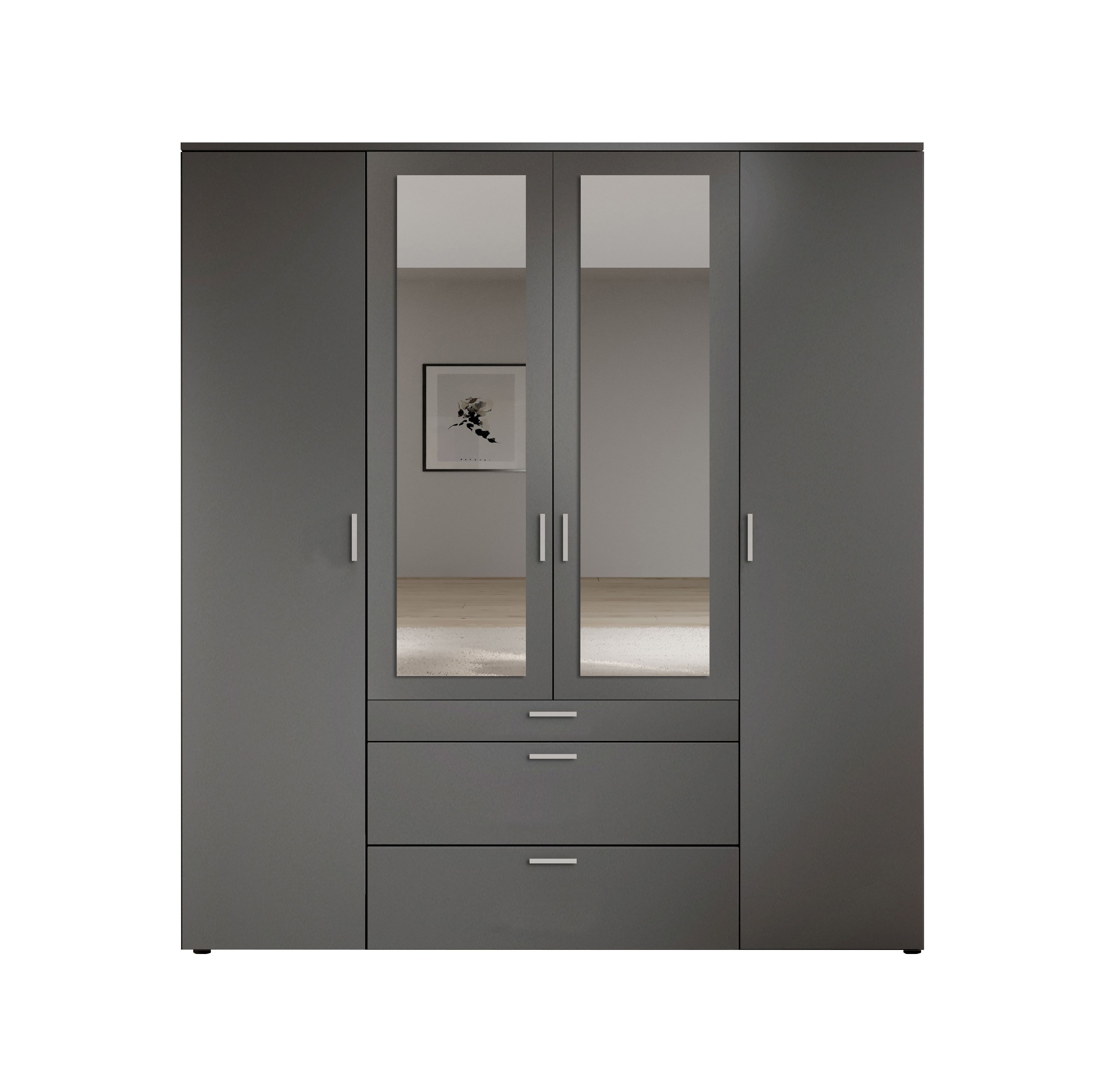 · 4-türig · Korpus: Dekor graphit · Front: Dekor graphit mit Spiegel · Griffe: Kunststoff alu... mehr