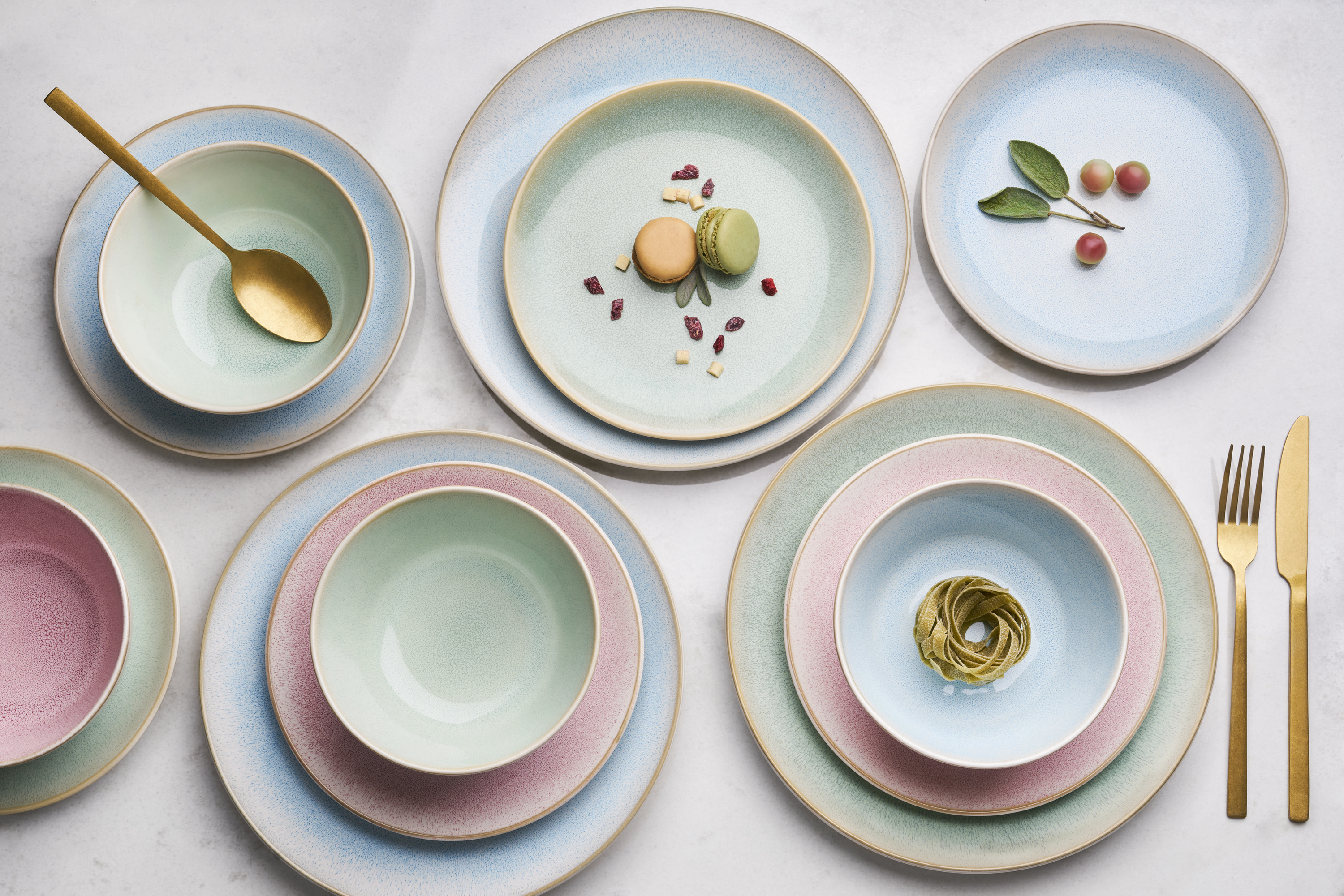 · blau/pink/grün · 18 teilig bestehend aus: 6 Suppenteller 21,3 cm 6 Speiseteller 27,4 cm 6... mehr