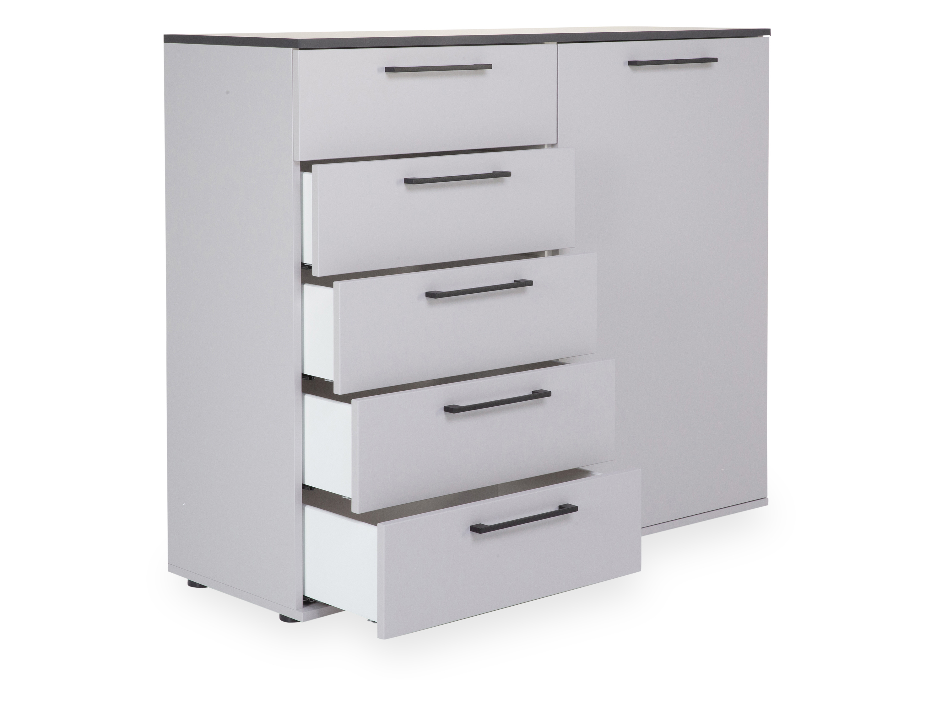 · mit fünf Schubkästen und einer Holztür inkl. zwei Böden