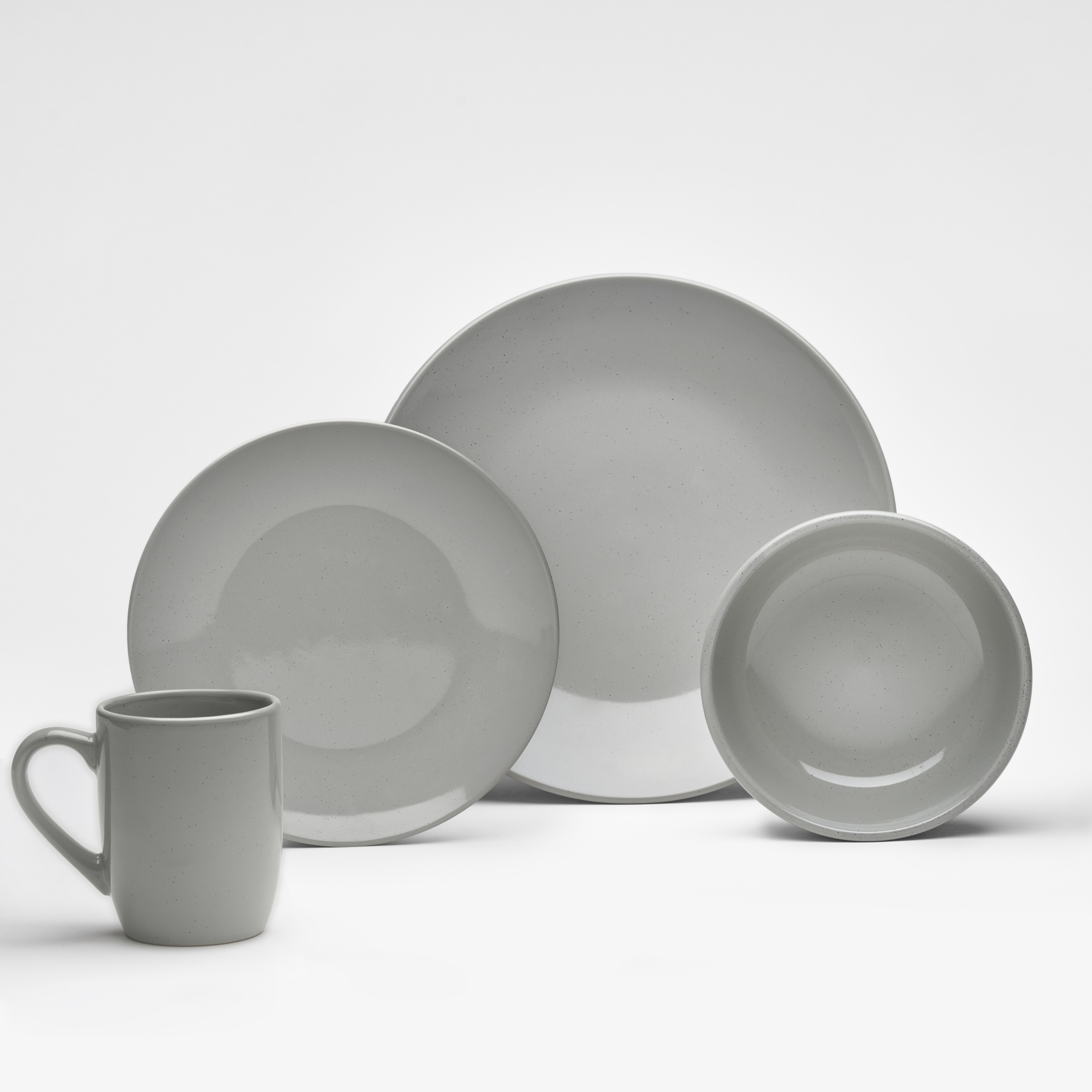· Steinzeug · runde Form · glänzend grau glasiert mit dunklen Sprenkeln · 24-teilig ·... mehr