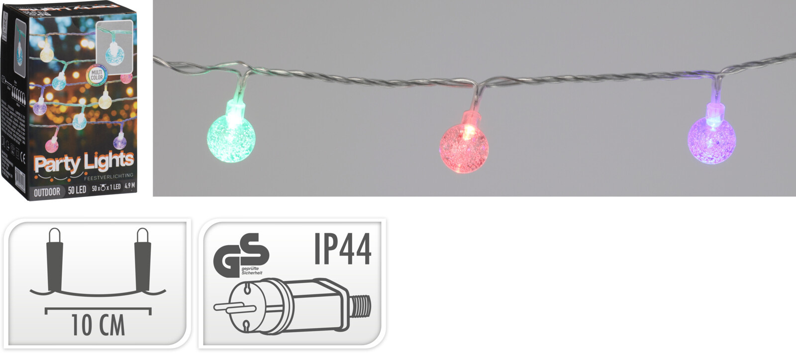 · mit 50 mehrfarbige LED · Anschlusskabel transparent 5m · Outdoor mehr